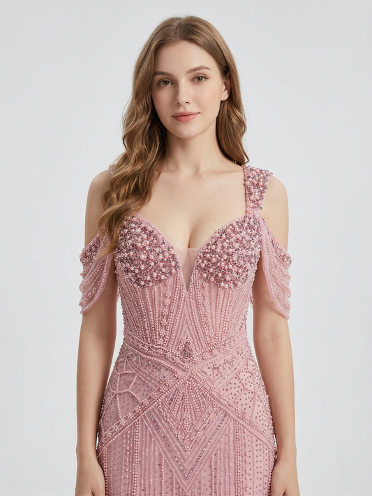 Pink Pearl & haute couture Beaded Mermaid Evening Gown MC20140