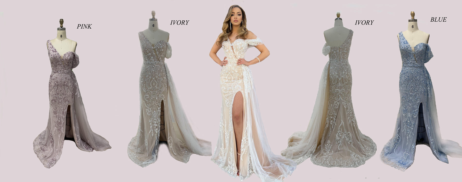Intricate Beaded Formal Gown with Off-Shoulder and Detachable Sleeves MY30164