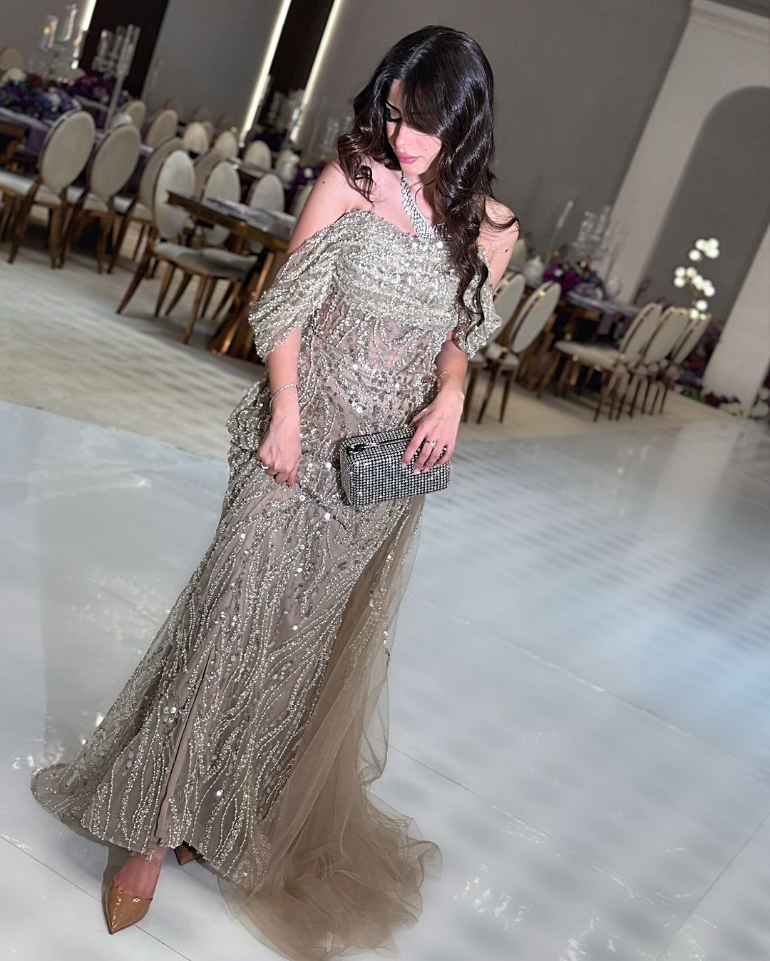 Elegant Couture Beading Off Shoulder Evening Gown Romantic Tulle Prom Dress YD22201B