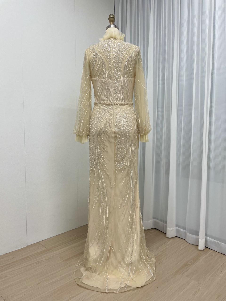 Beautiful Beading Lace Puffy Long Sleeve Wedding Party Guest Evening Dress MB40250