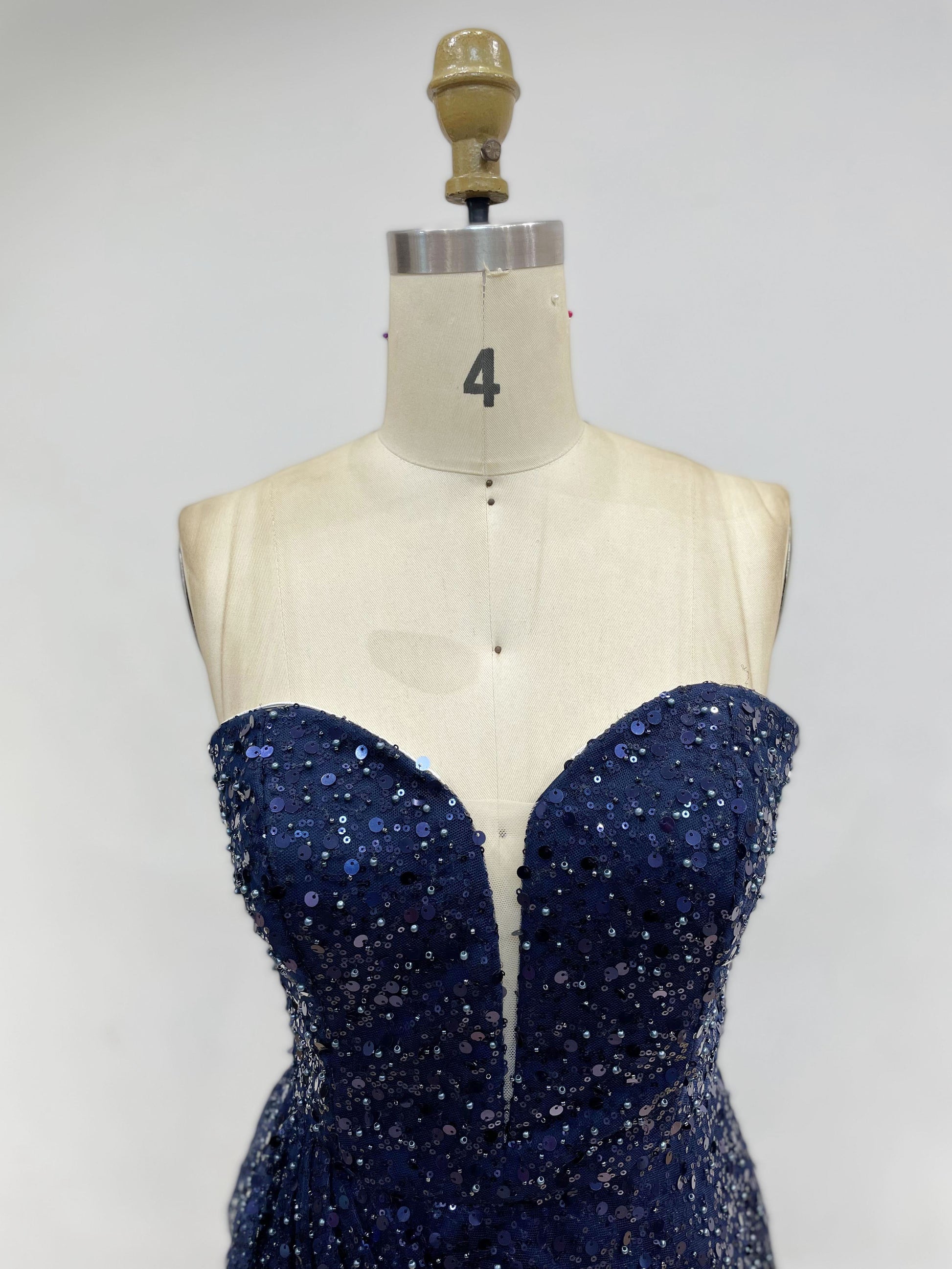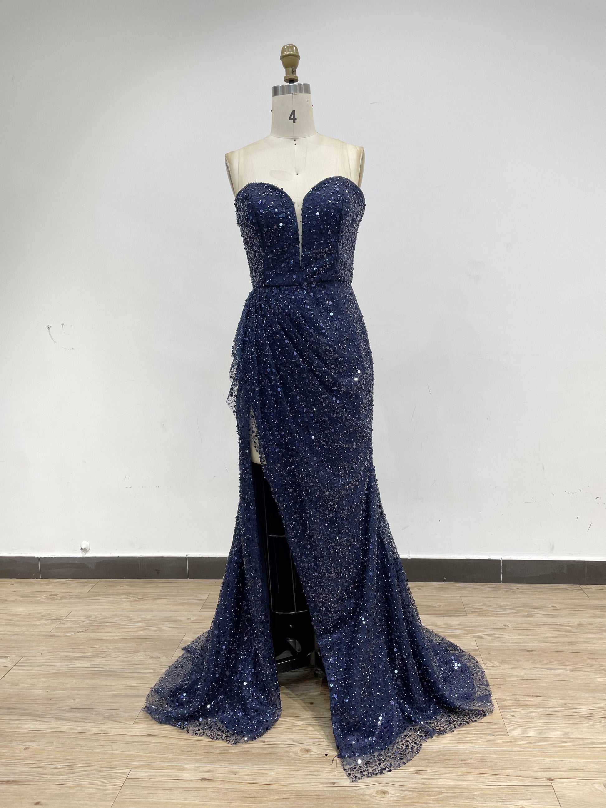 Beautiful Sweetheart High Split Navy Birthday Party Prom Dress BR22031