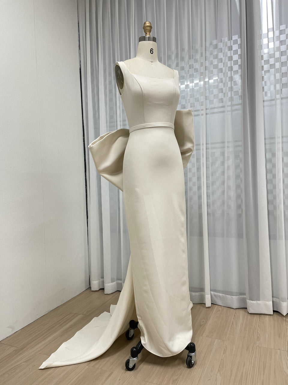 Bejge Spaghetti straps Mermaid Gown Large Bow Train Bridal Gala Wear MY30132-3