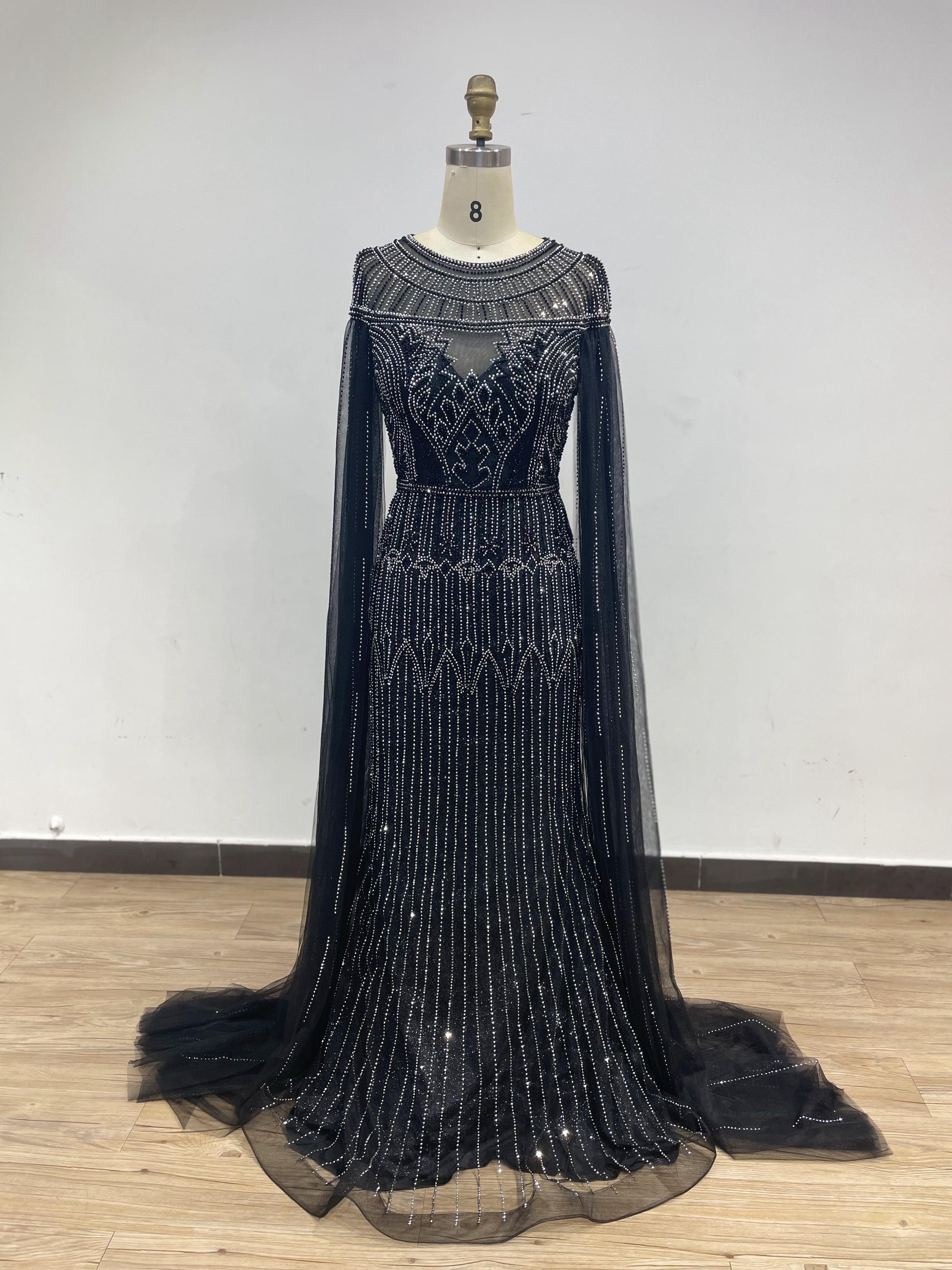 Cape Long Sleeve Handmade Beading Wedding Party Evening Dress DZ-0574