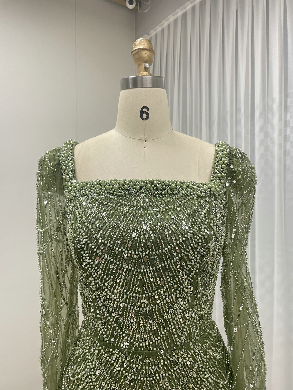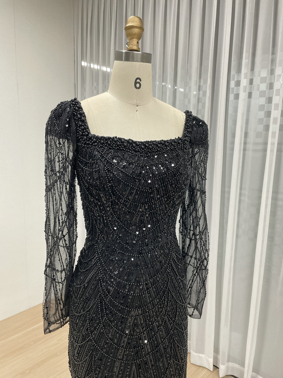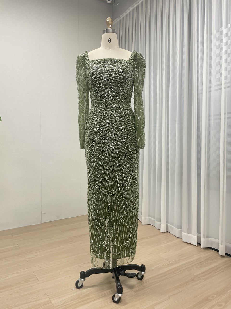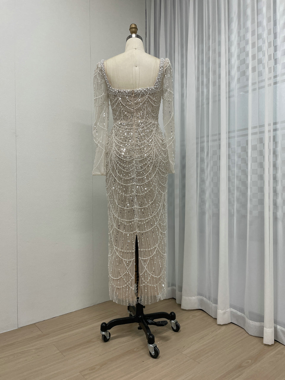 Chic Long-Sleeve Red beaded Gown for Gala Nights MY30137