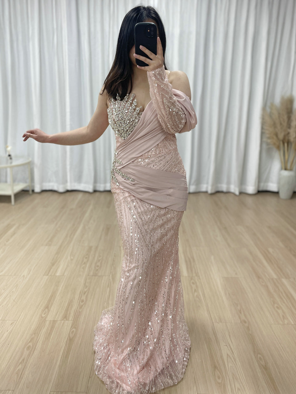 Chic Off-Shoulder Pink Gown for Gala Nights MY30138