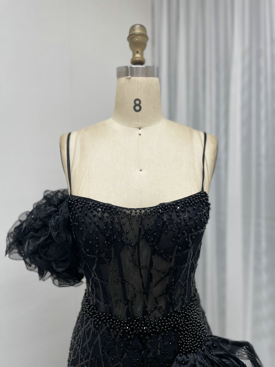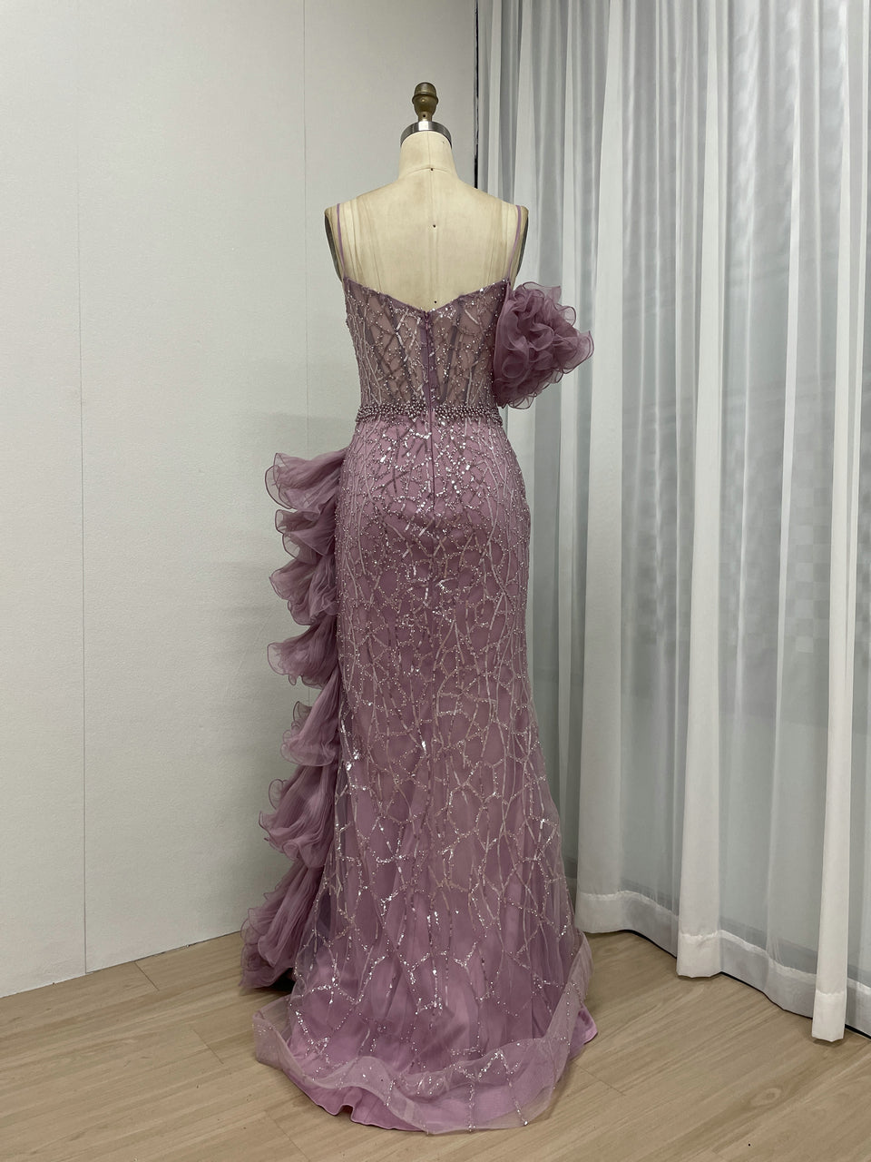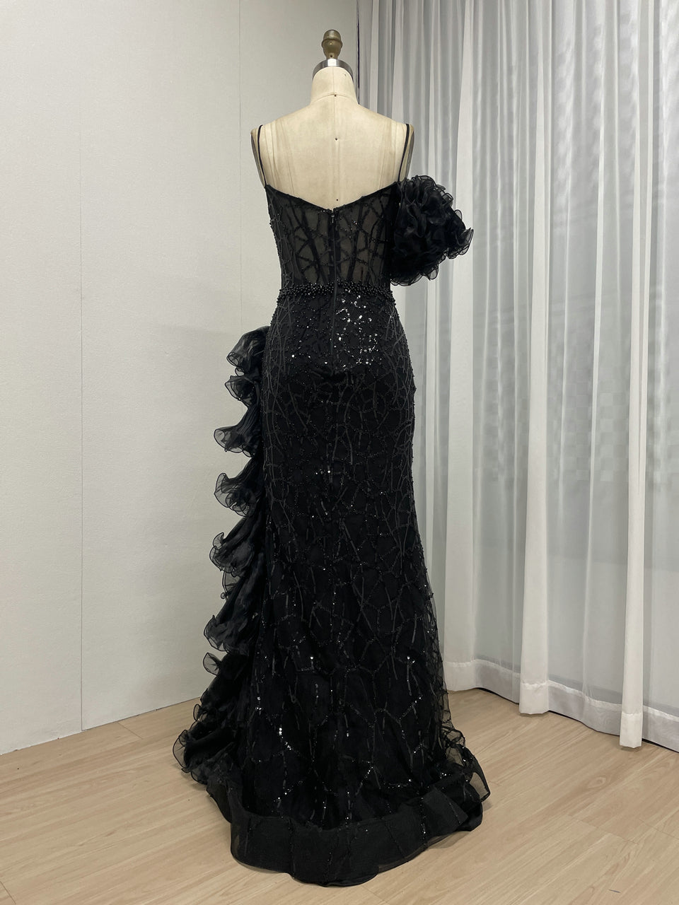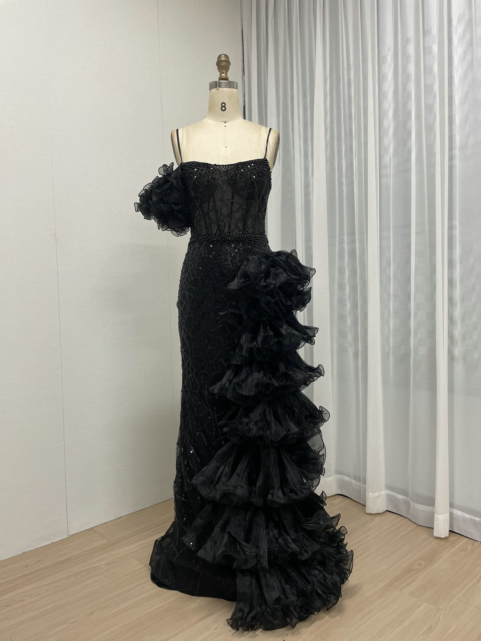 Dazzling Ruffle Off Shoulder Beading Lace Layered Side-Skirt White Princess Birthday Party Evening Dress MB40223