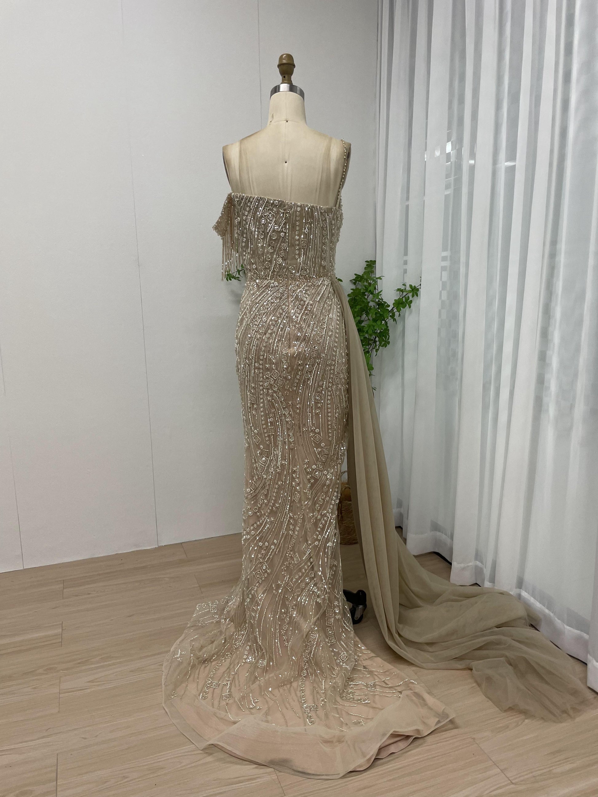 Dramatic Couture Beading Lace High Split Evening Dress MB40082