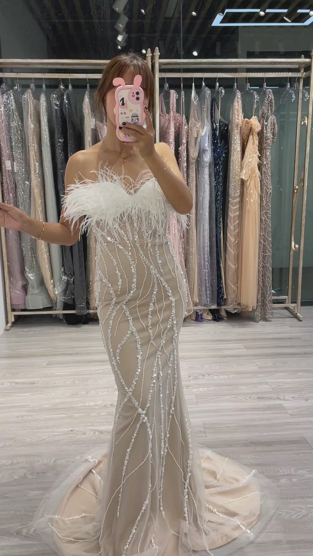 Elegant Beading Couture Feather Prom Dress MY20007