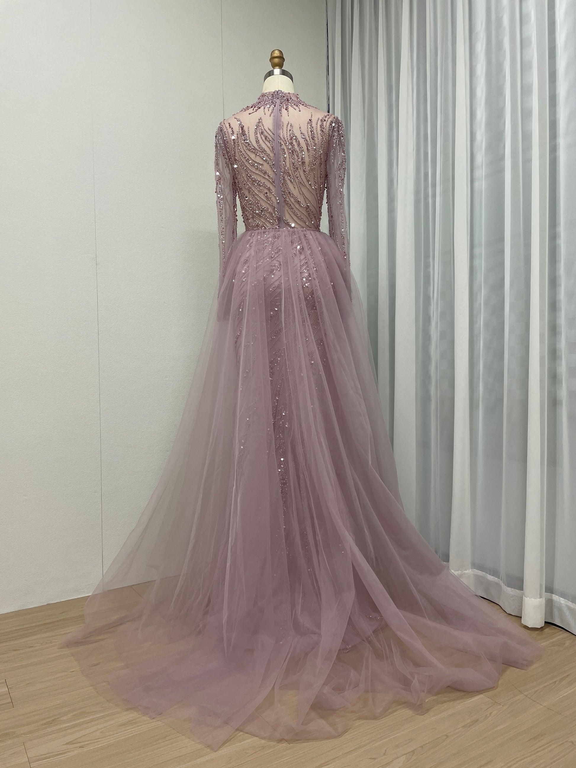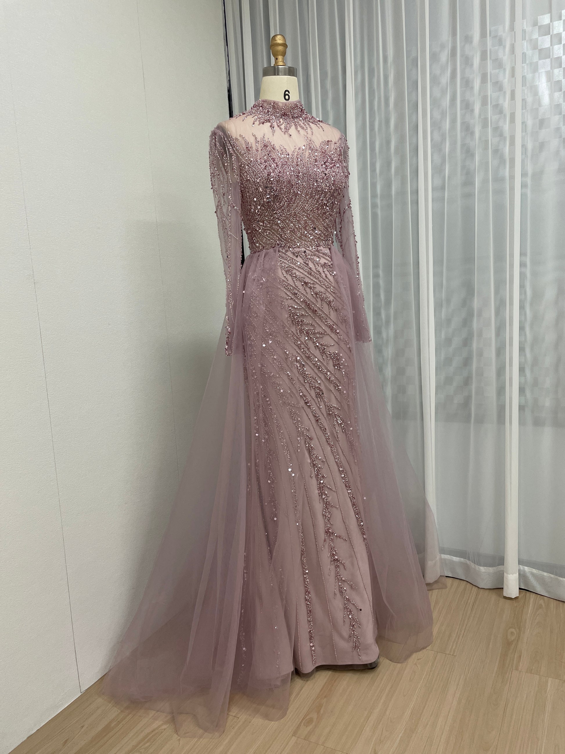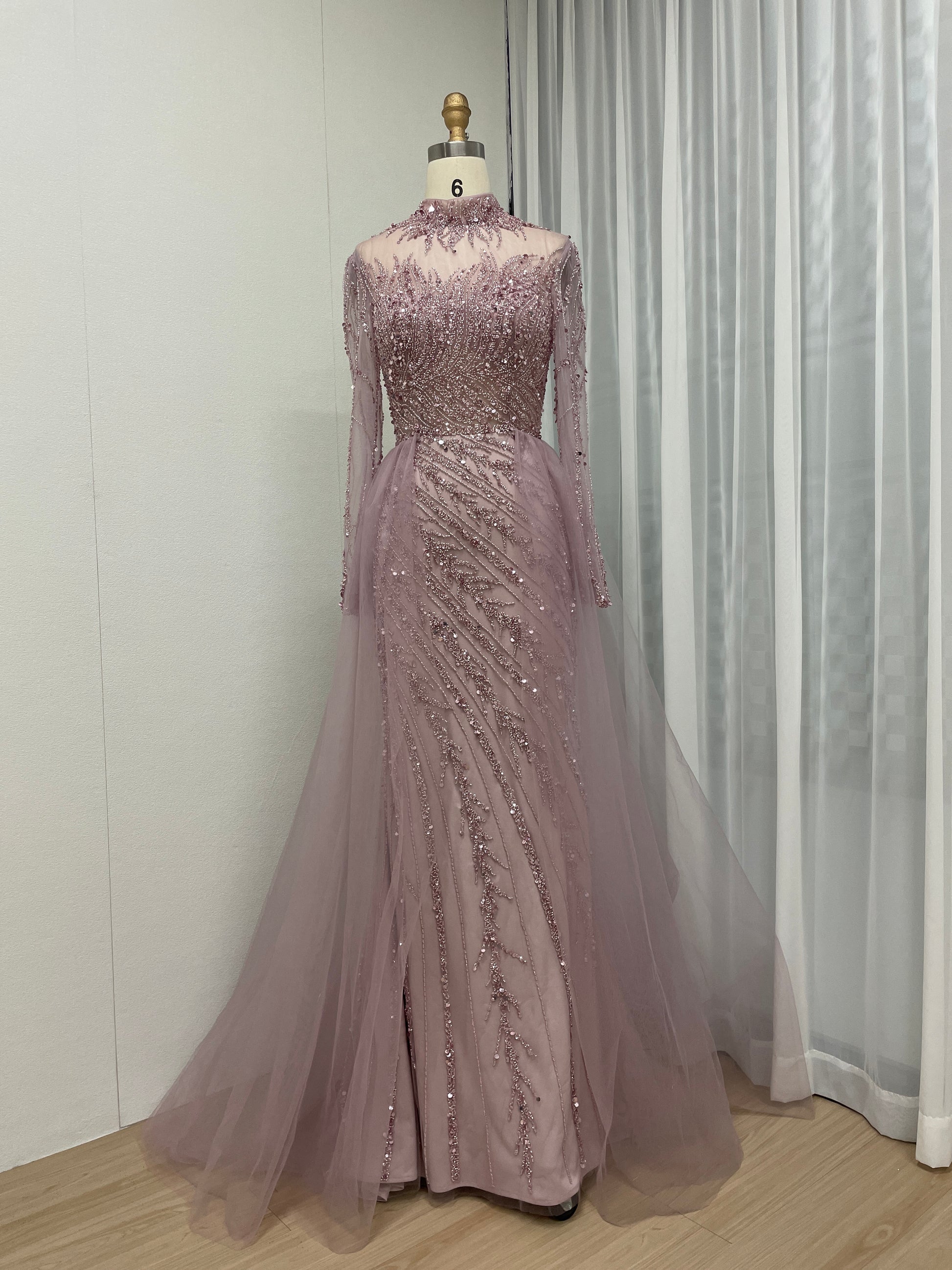 Elegant Beading Couture Wedding Party Long Sleeve Pink Evening Dress MB40064-2