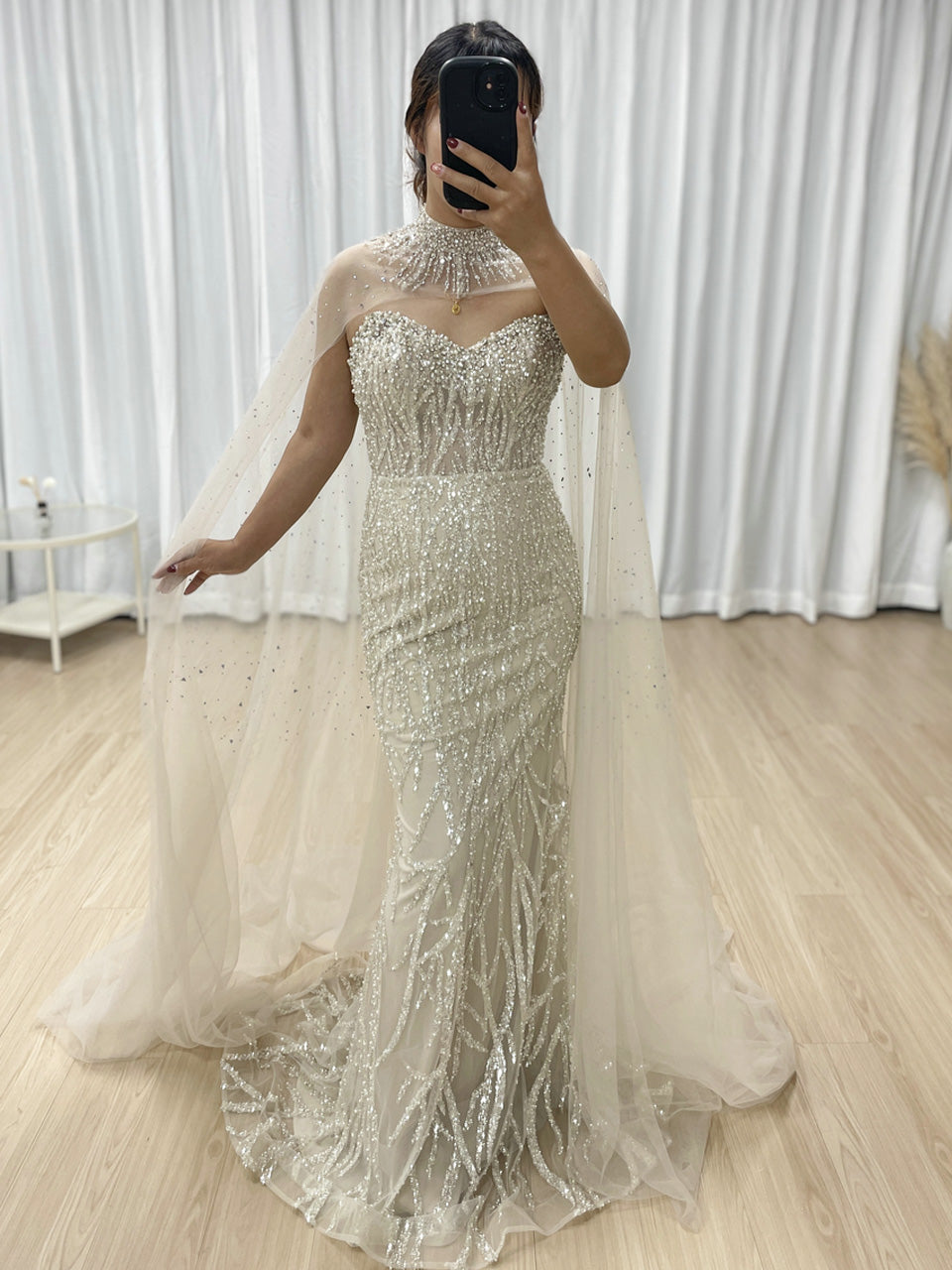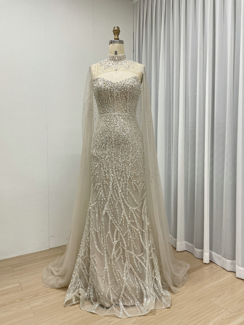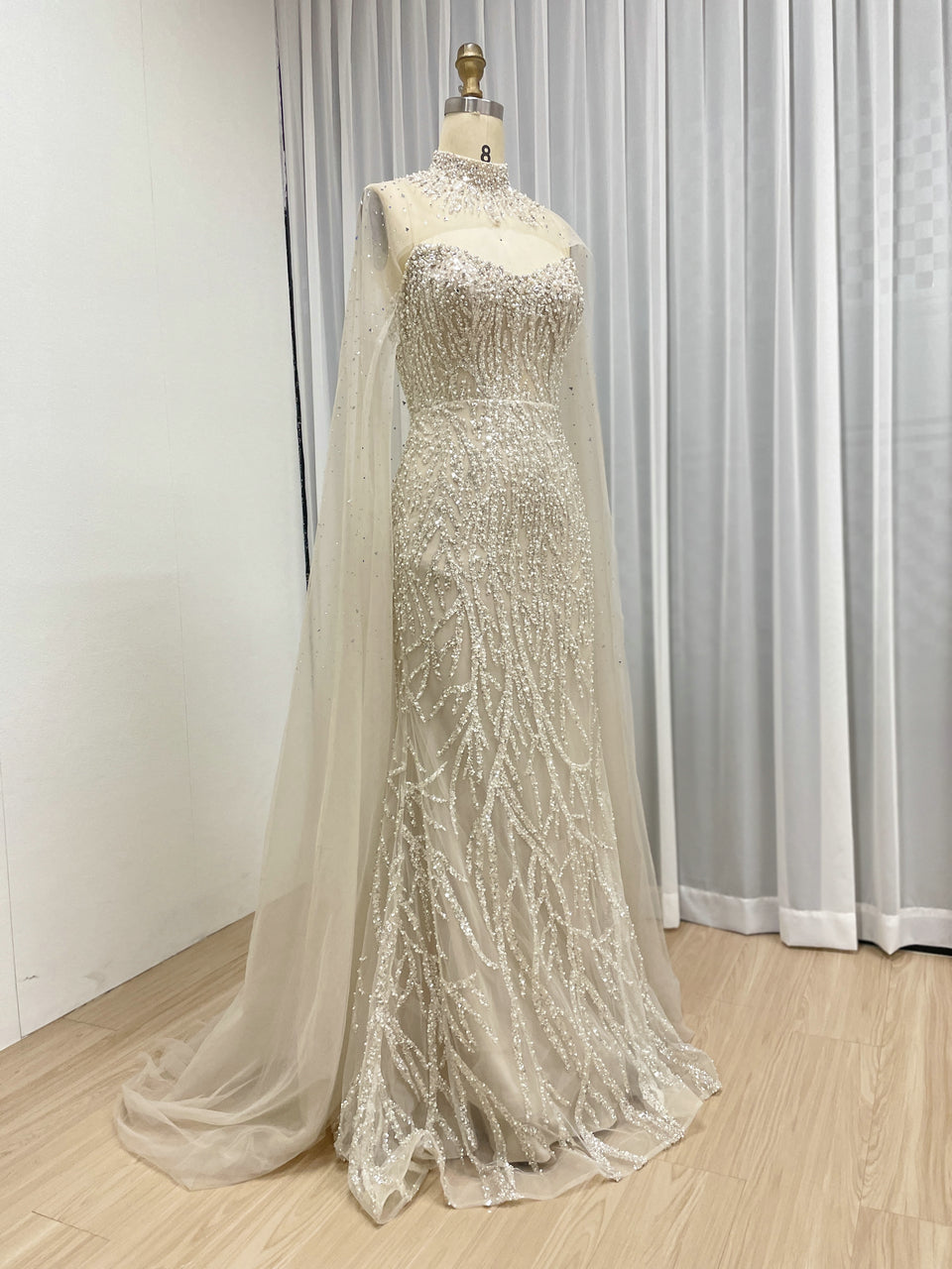 Elegant Beading Evening Gown With Detachable Cap Sleeve Suitable for Wedding Party MB40362