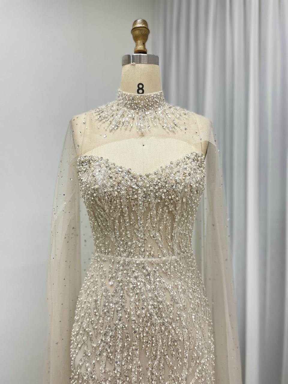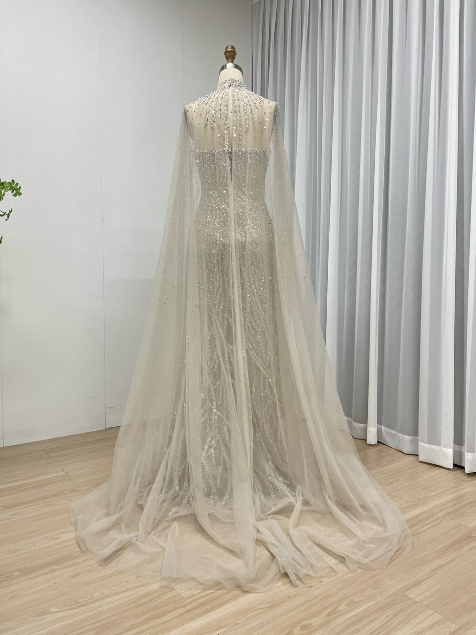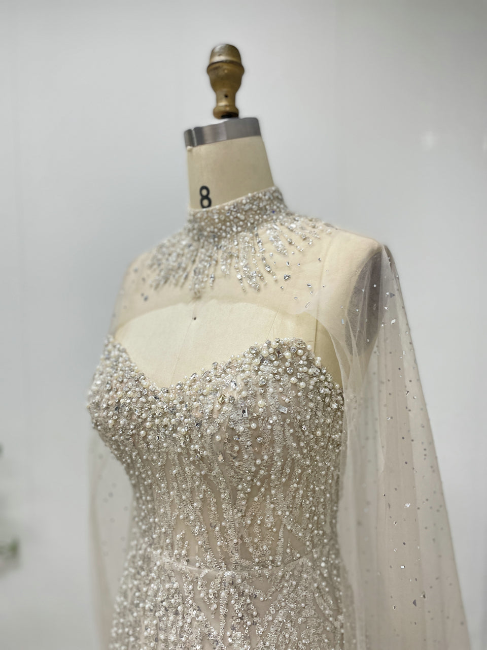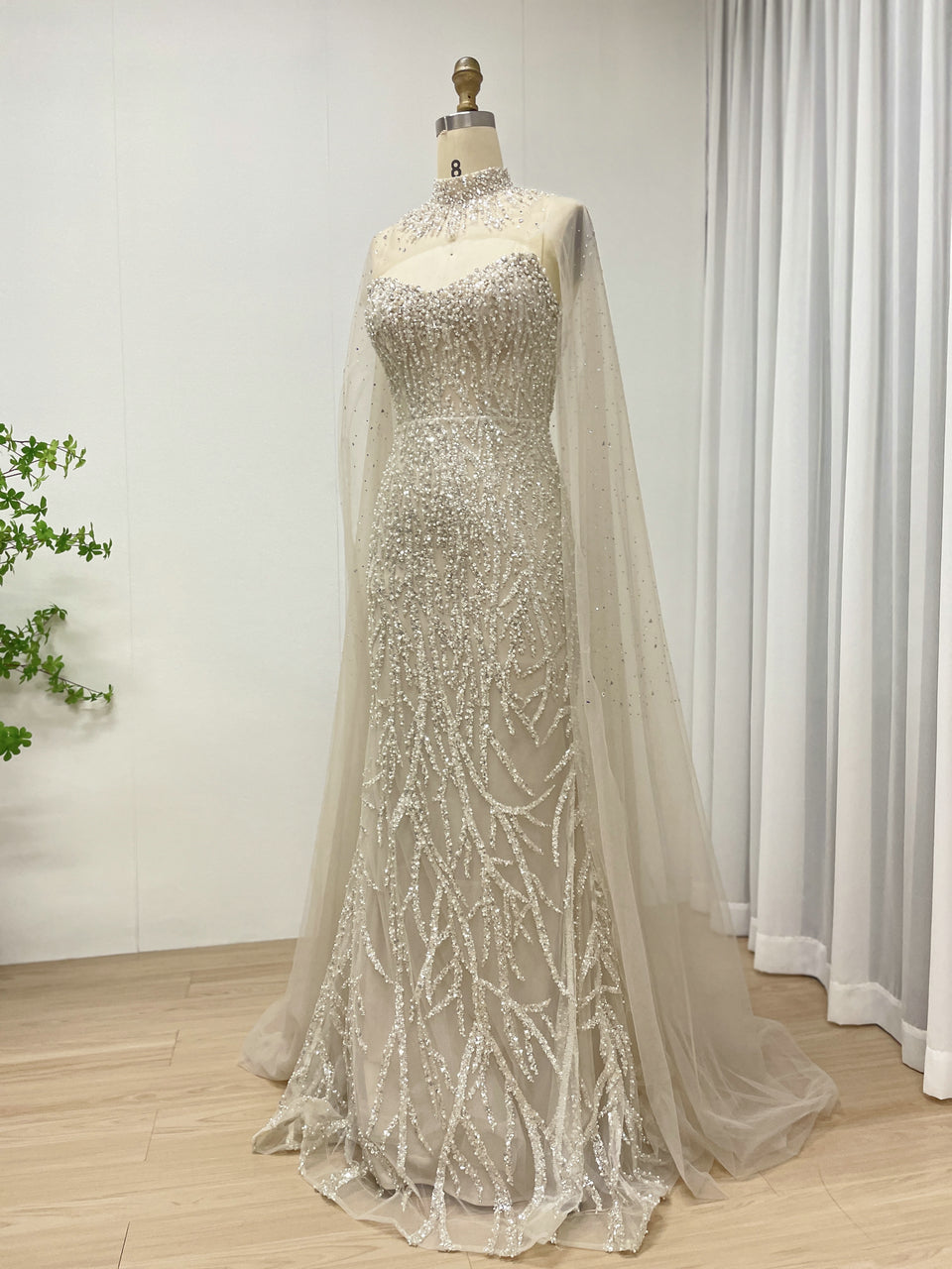 Elegant Beading Evening Gown With Detachable Cap Sleeve Suitable for Wedding Party MB40362