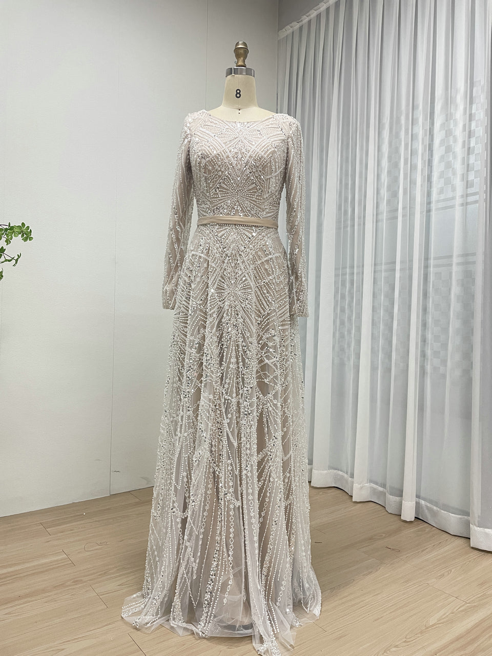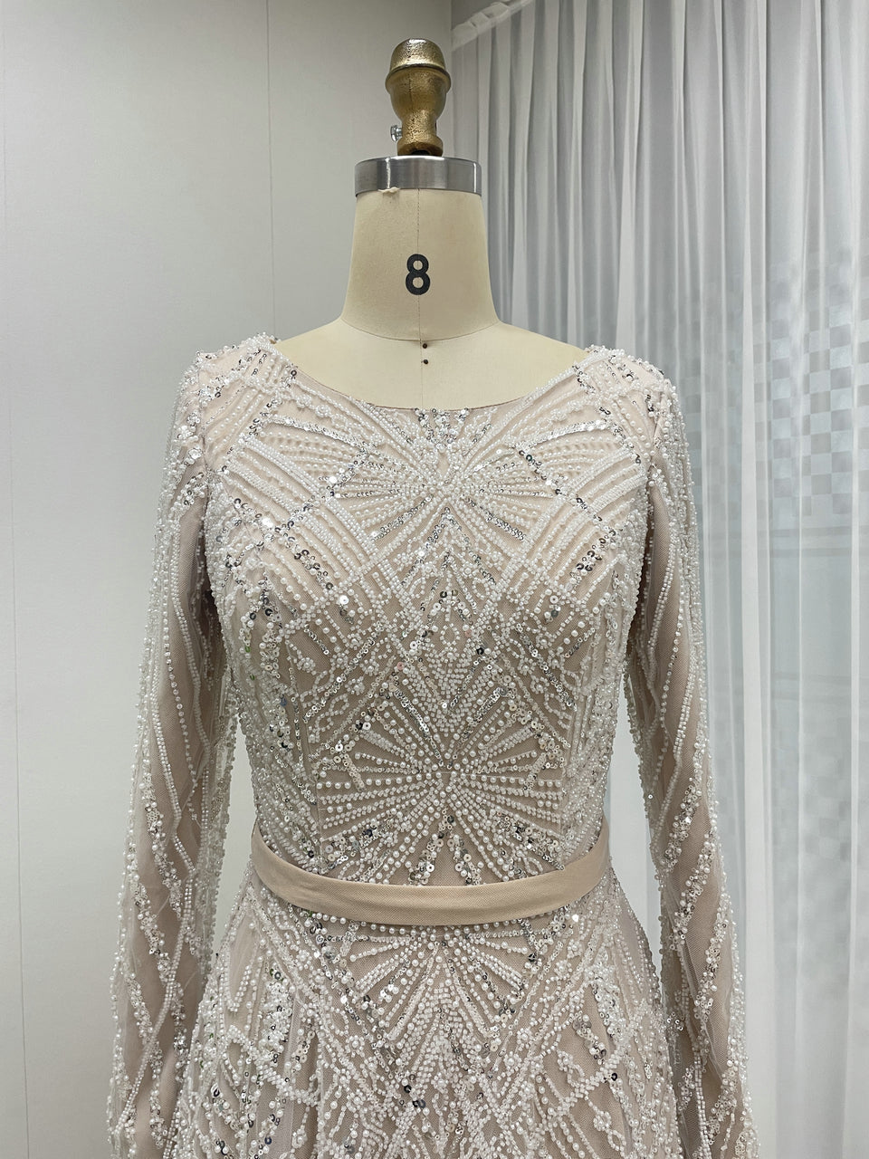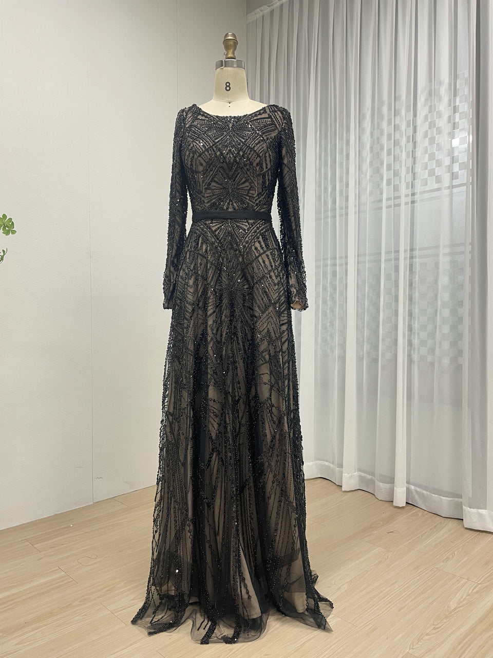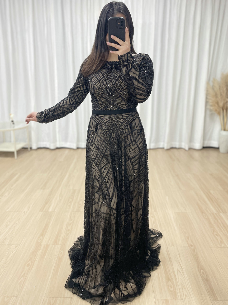 Elegant Black Beaded Dress Long Sleeves Train Cocktail Style MY30076-2