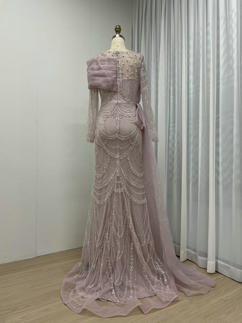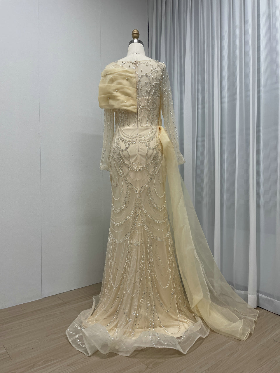 Elegant Couture Beading Lace Long Sleeve Side Skirt Wedding Party Evening Dress MB40258