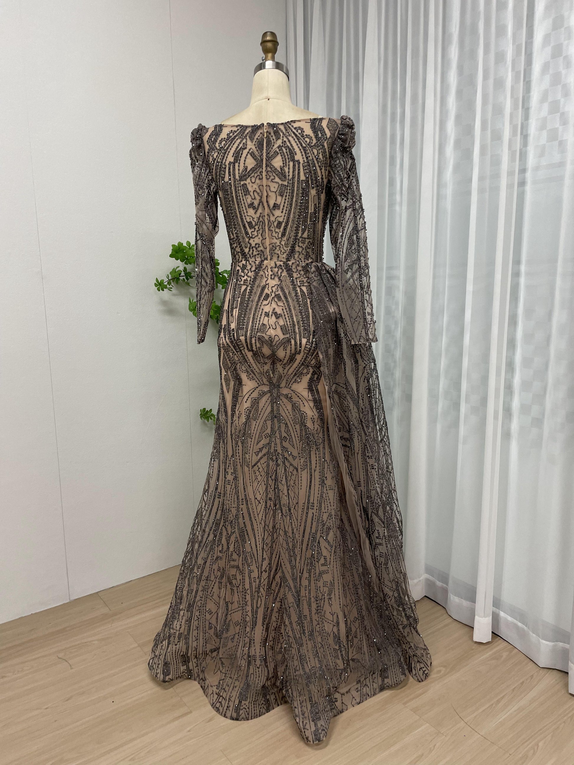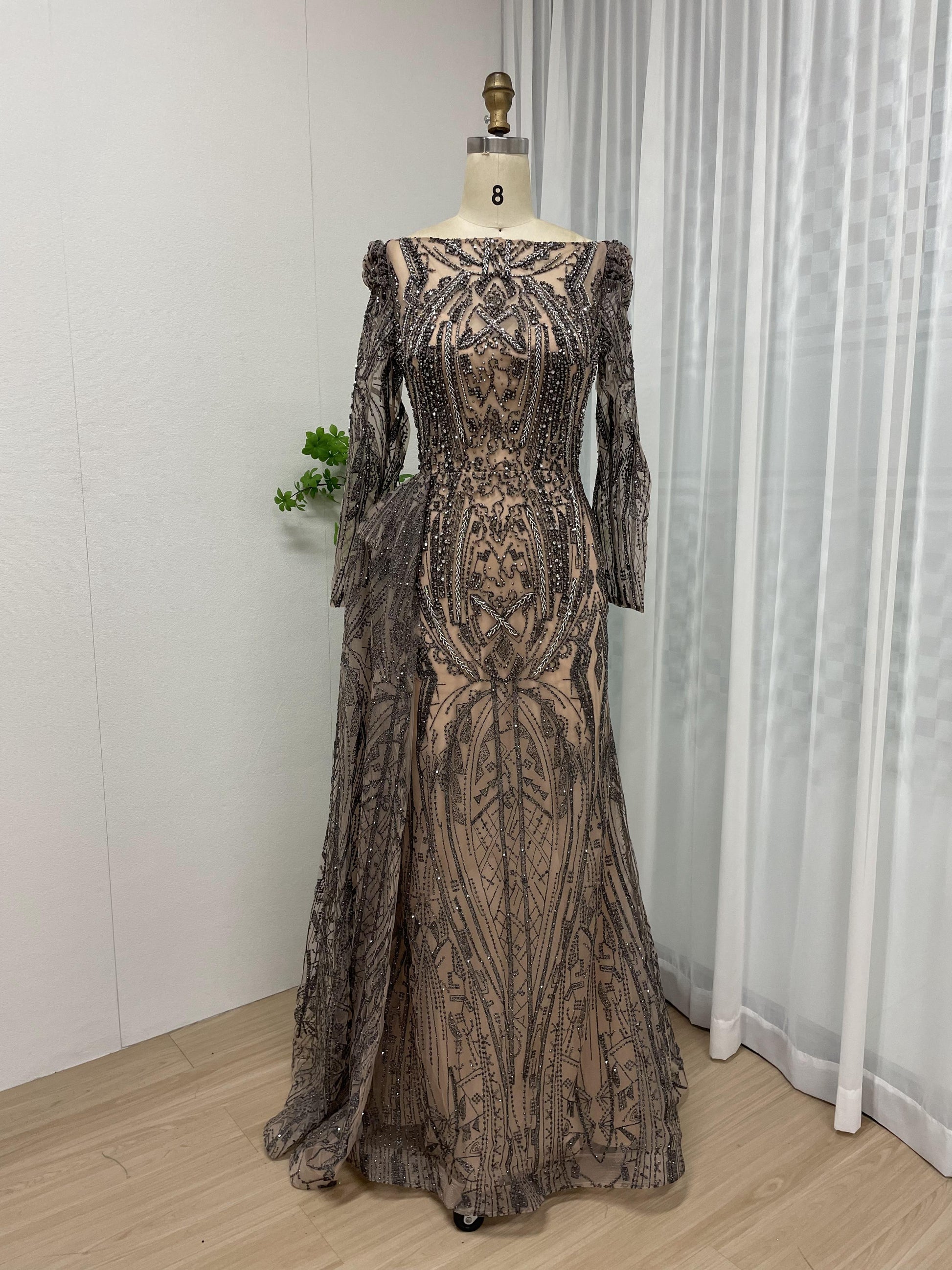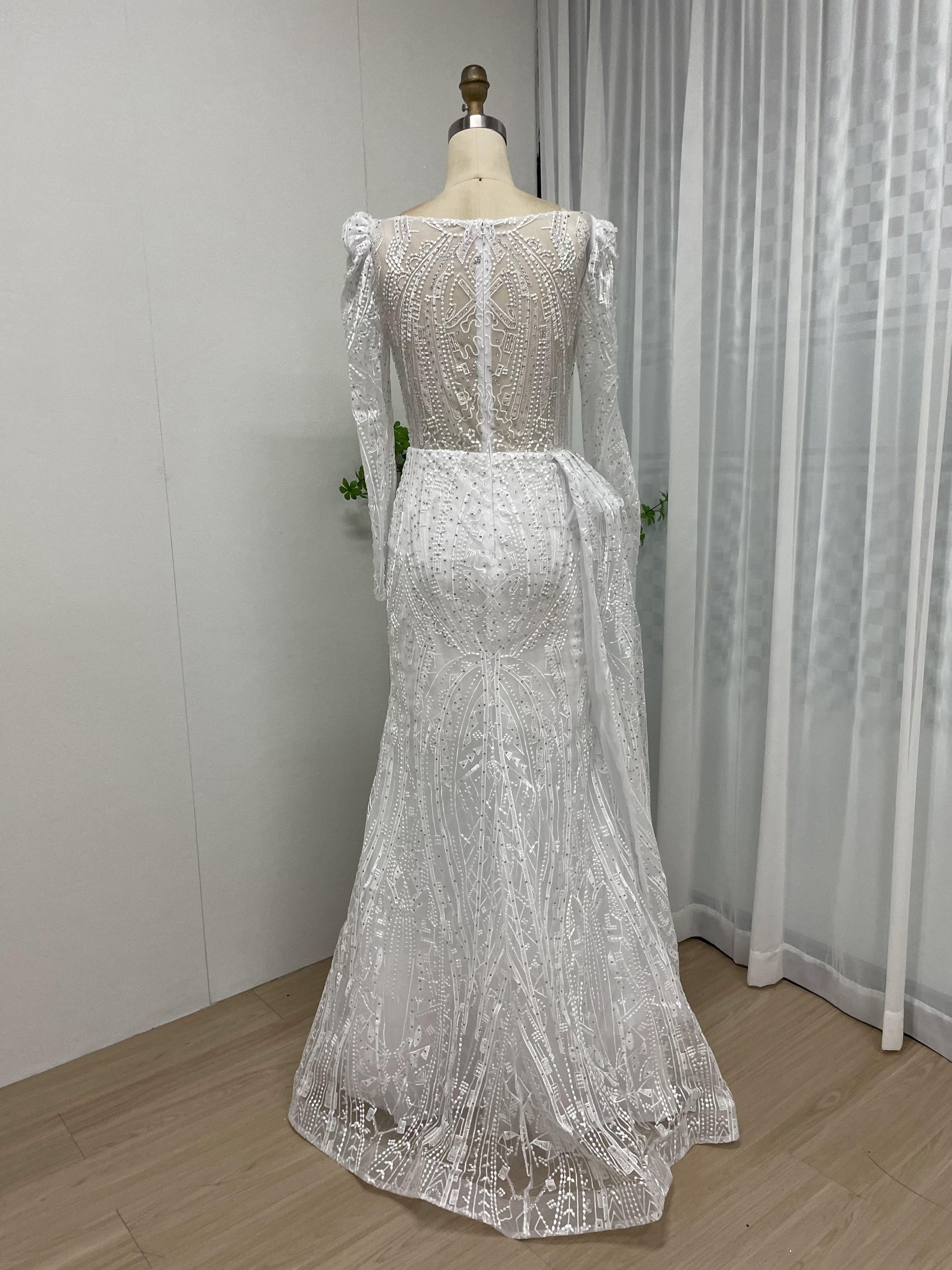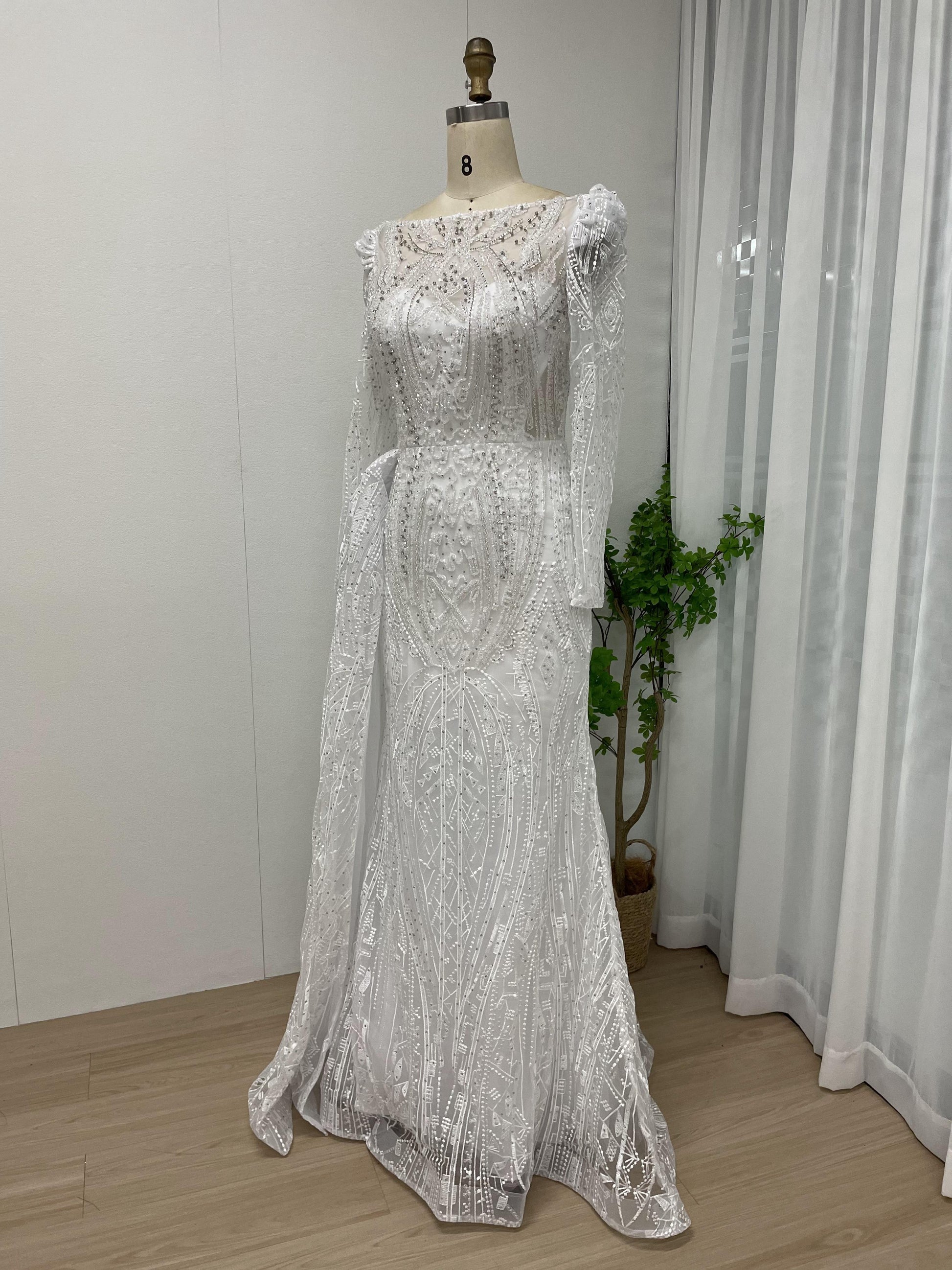 Elegant Couture Beading Lace Wedding Party Long Sleeve Evening Dress MB40182