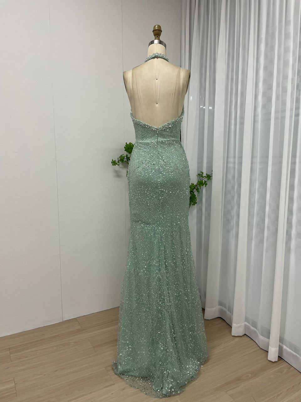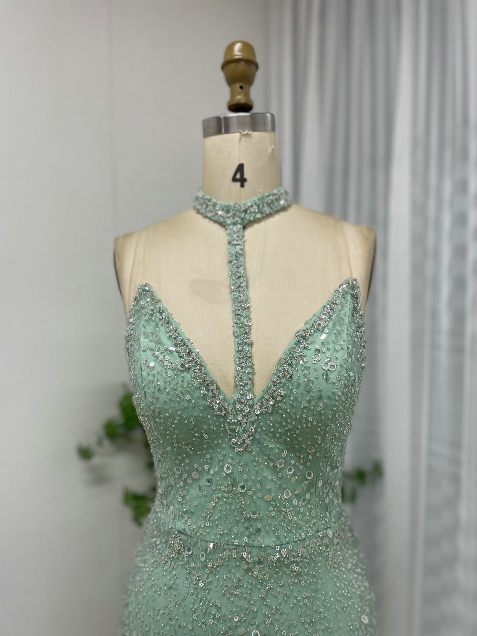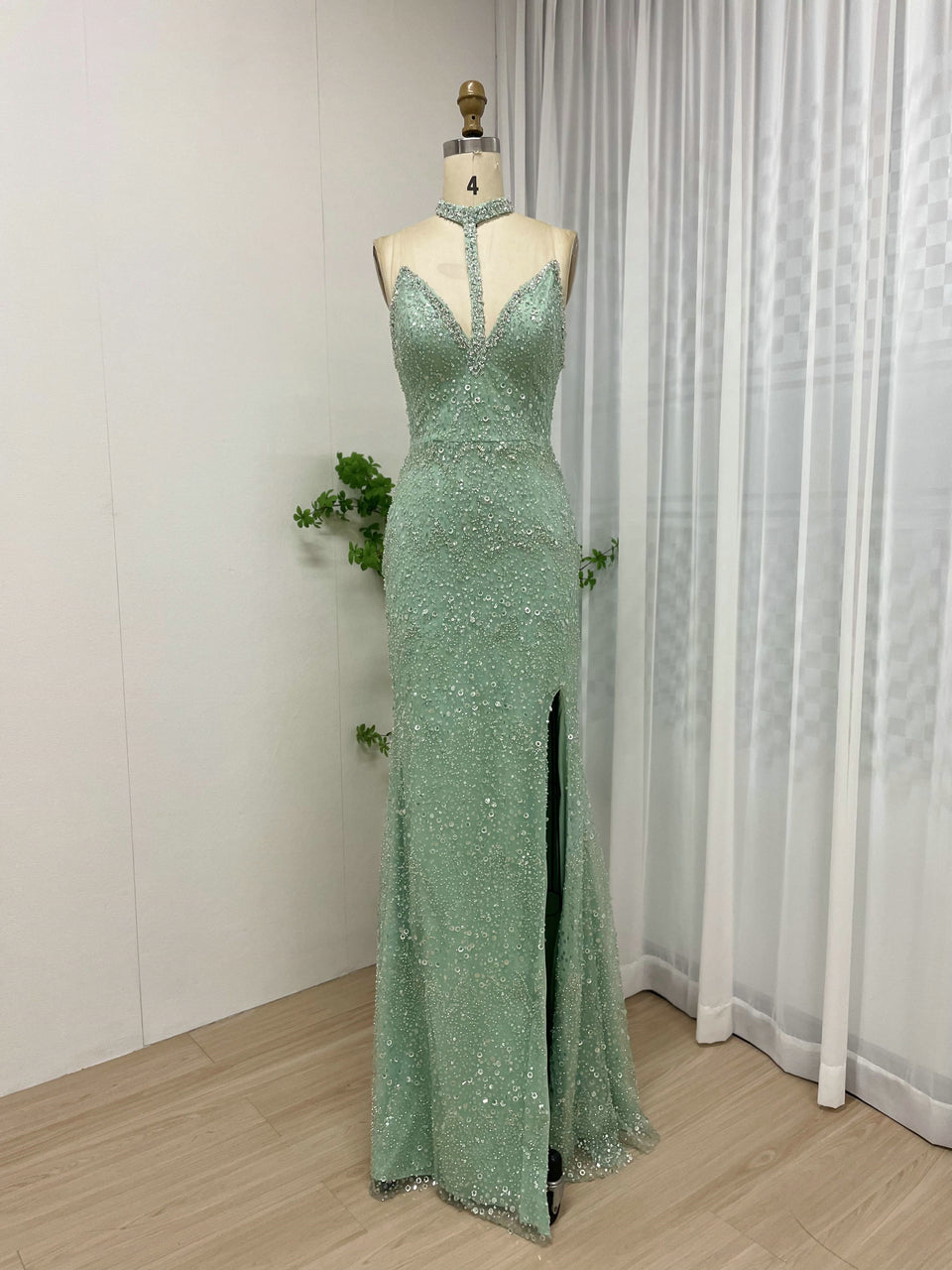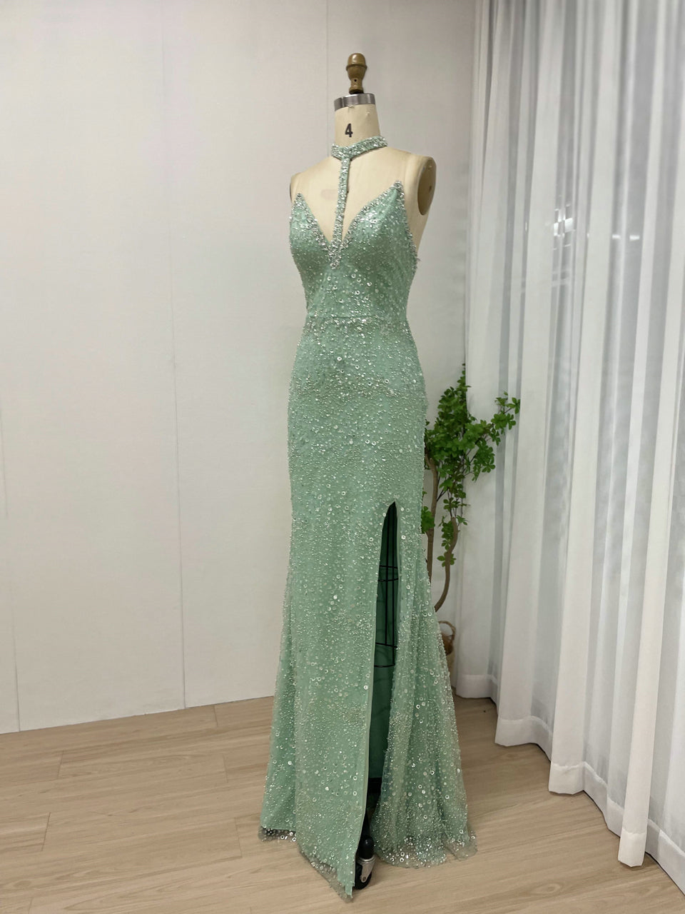 Elegant Mint Green Sequin Slit Gown for Prom MY30004