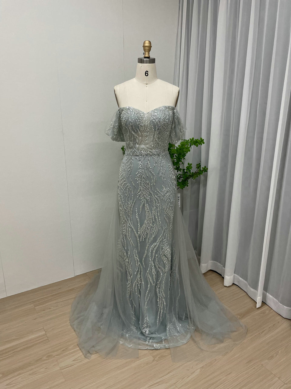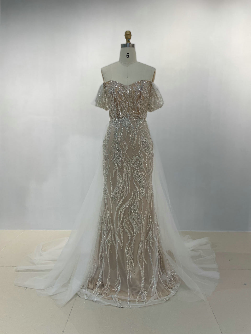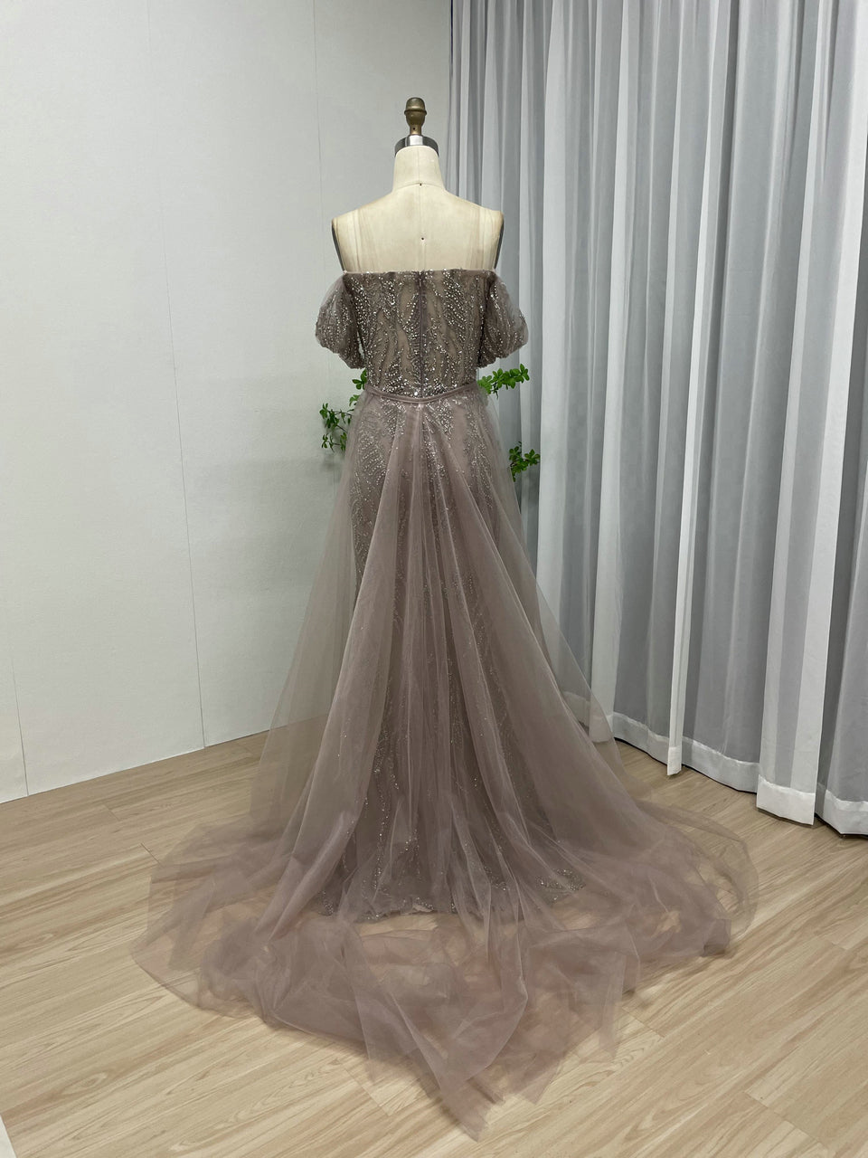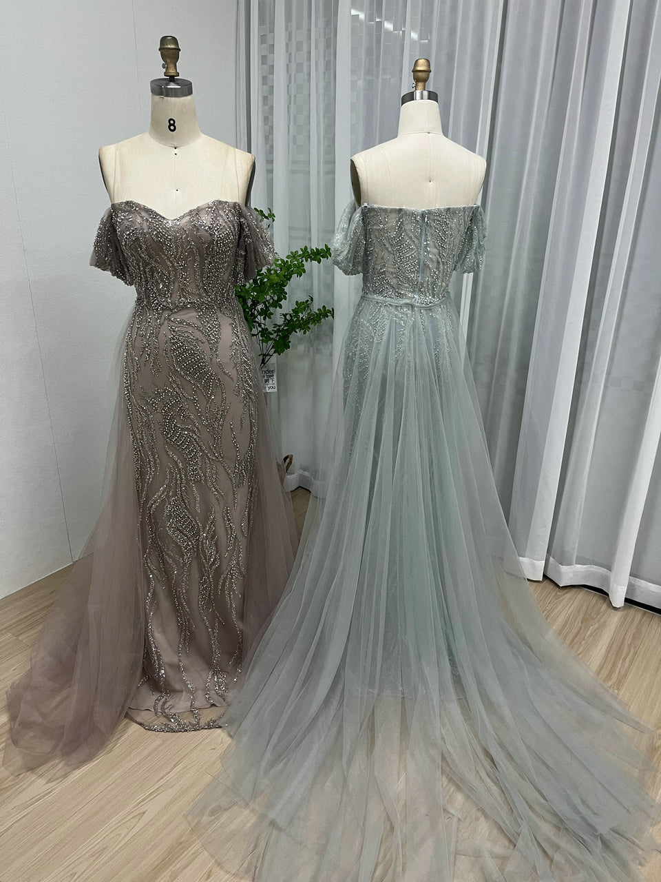 Elegant Off-Shoulder Evening Gown With Over-Tulle Skirt – Pretty Wedding/Birthday Party Dress MY20005