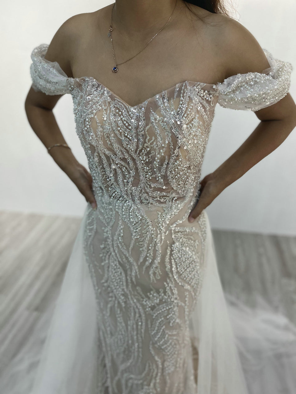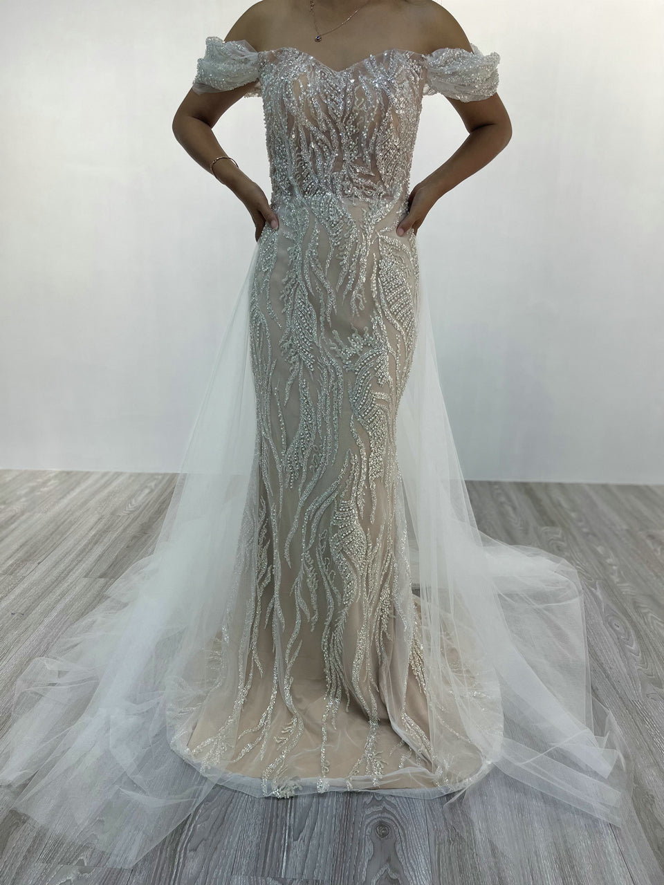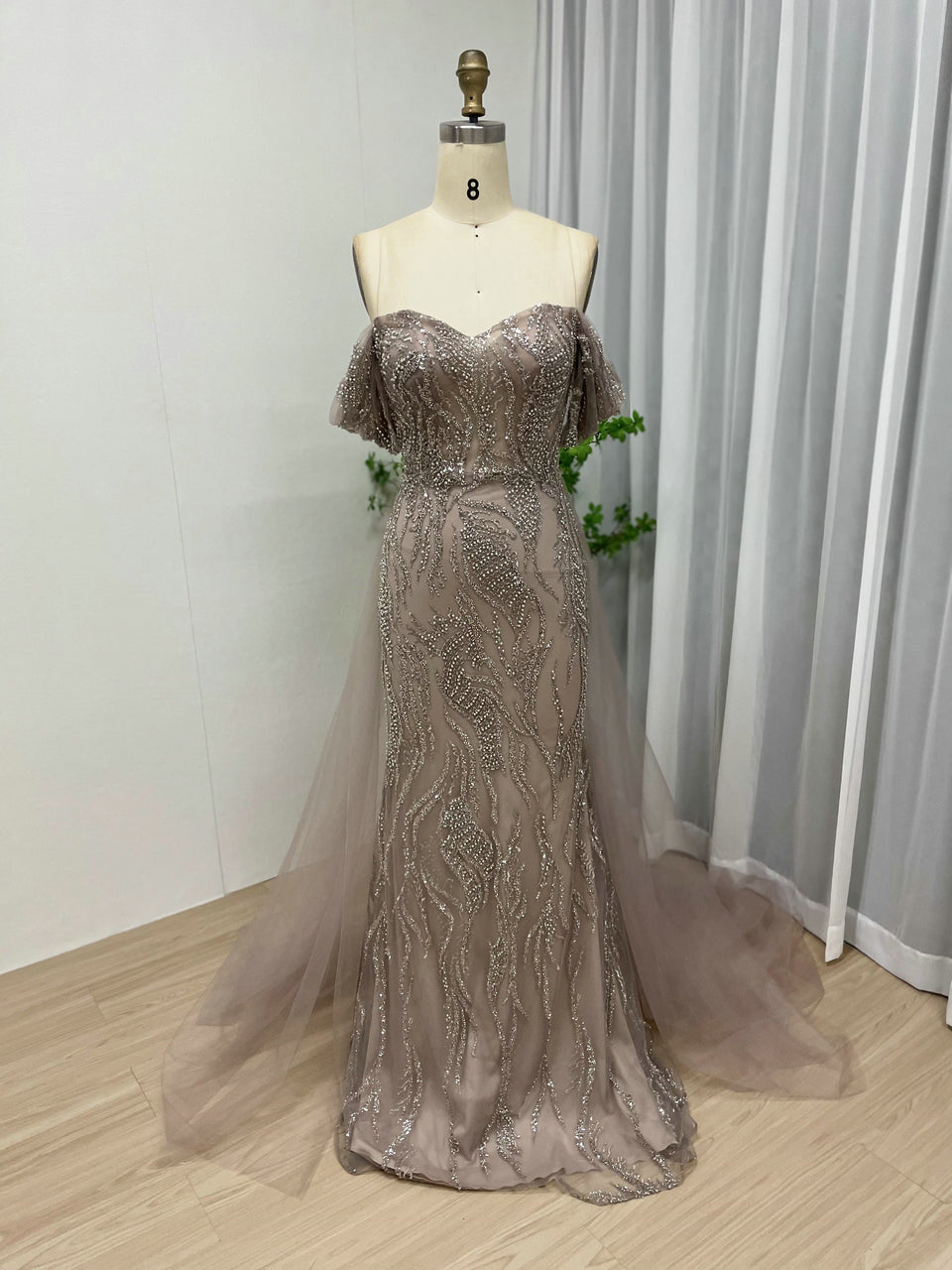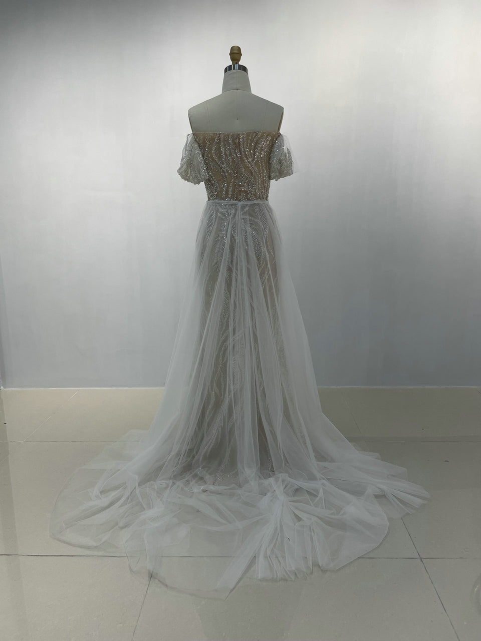 Elegant Off-Shoulder Evening Gown With Over-Tulle Skirt – Pretty Wedding/Birthday Party Dress MY20005