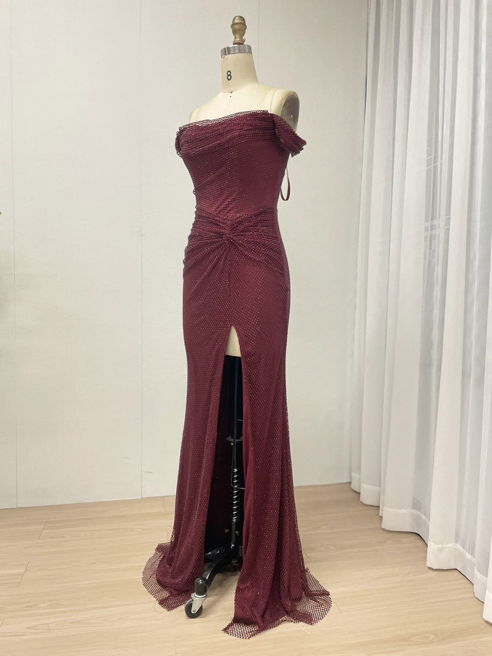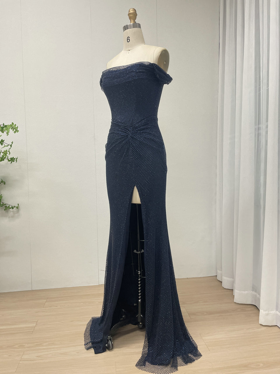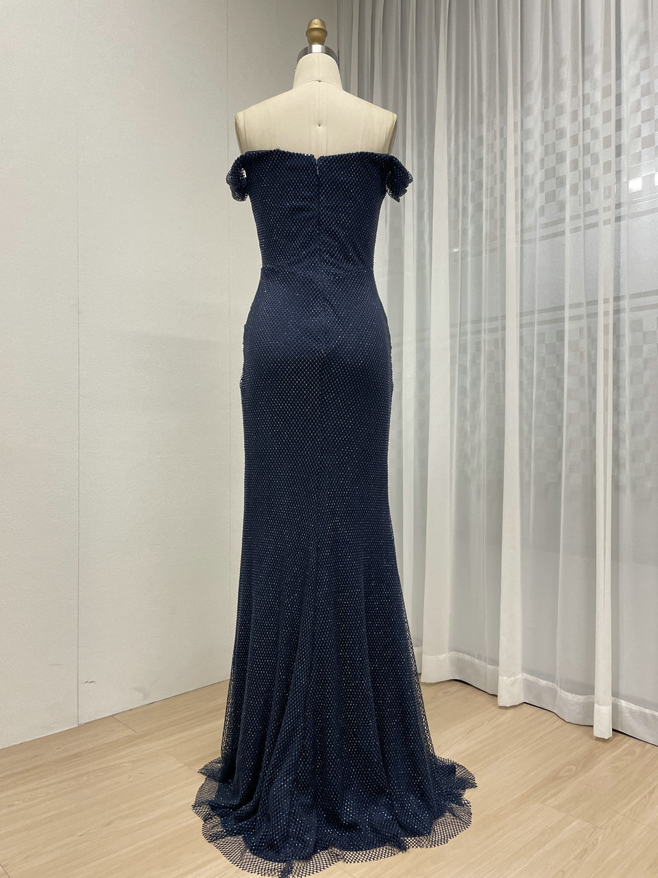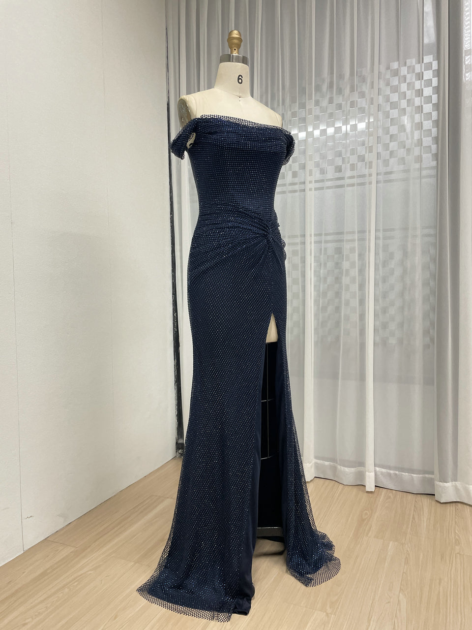 Elegant Off the Shoulder Sexy High Slit Prom Evening Gown for Birthday Wedding Graduation Parties MB40410-2