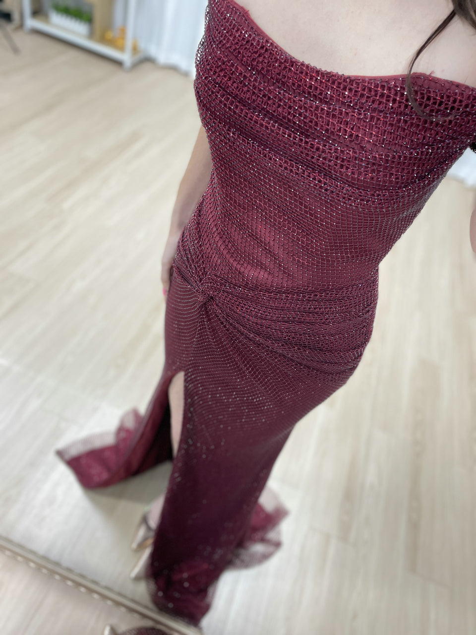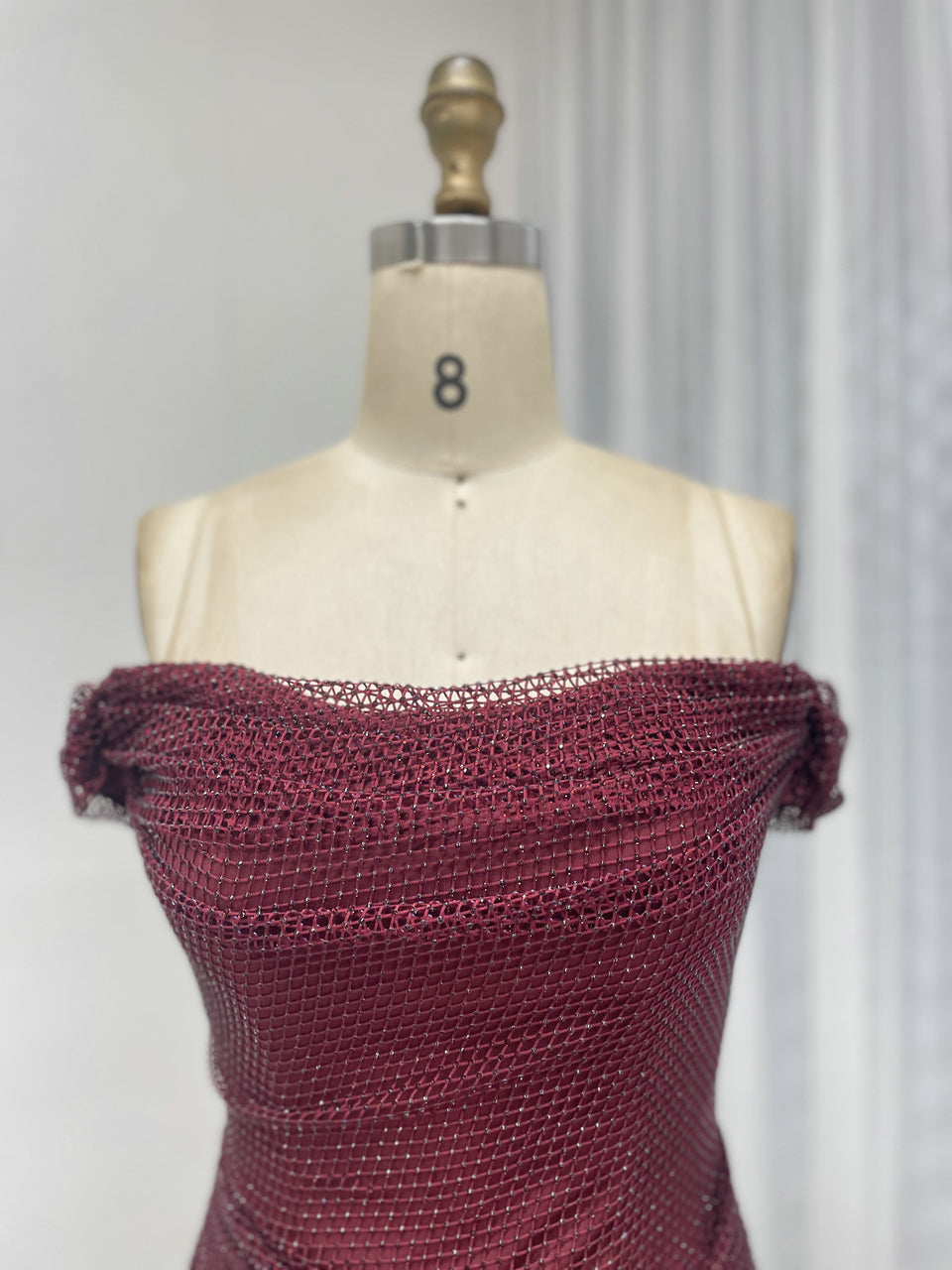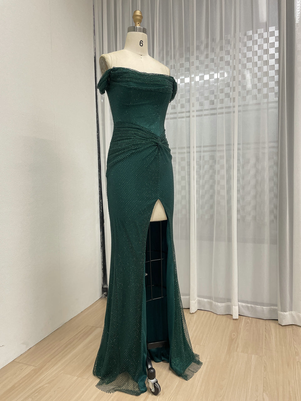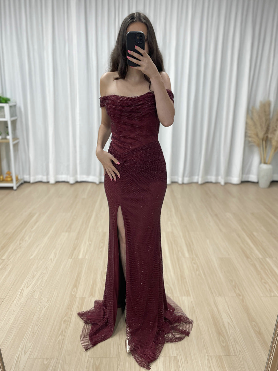 Elegant Off the Shoulder Sexy High Slit Prom Evening Gown for Birthday Wedding Graduation Parties MB40410-2