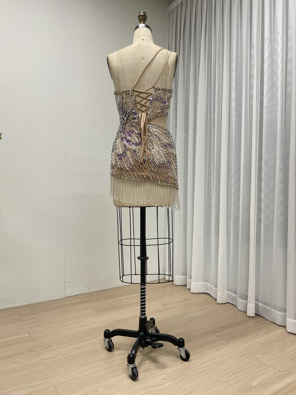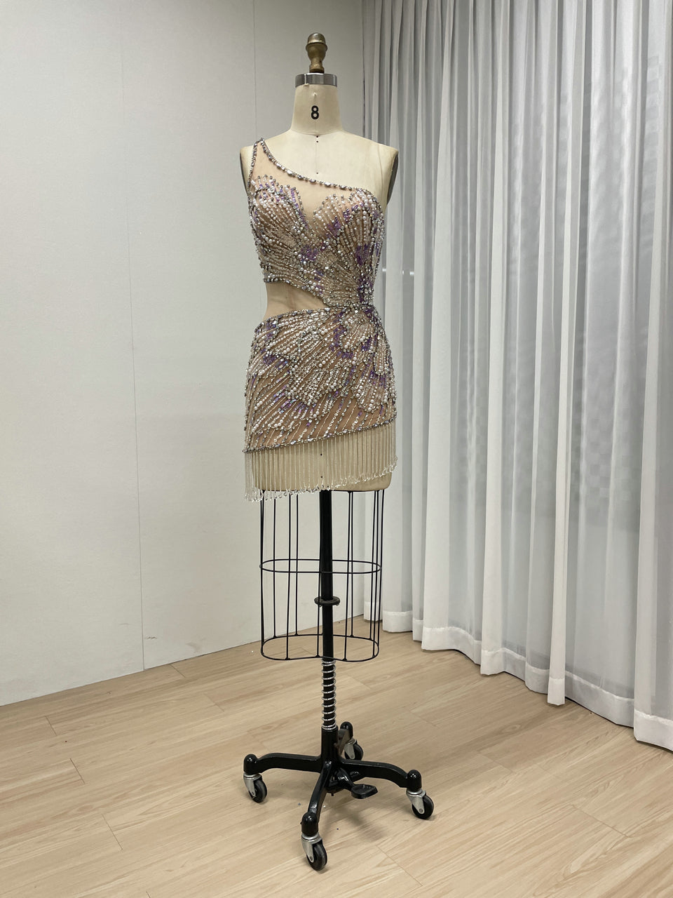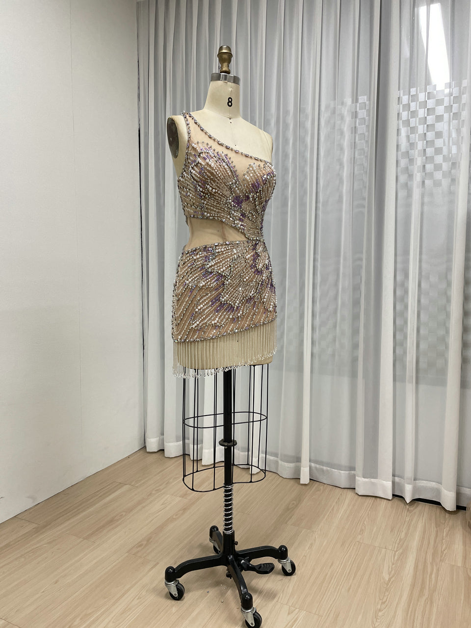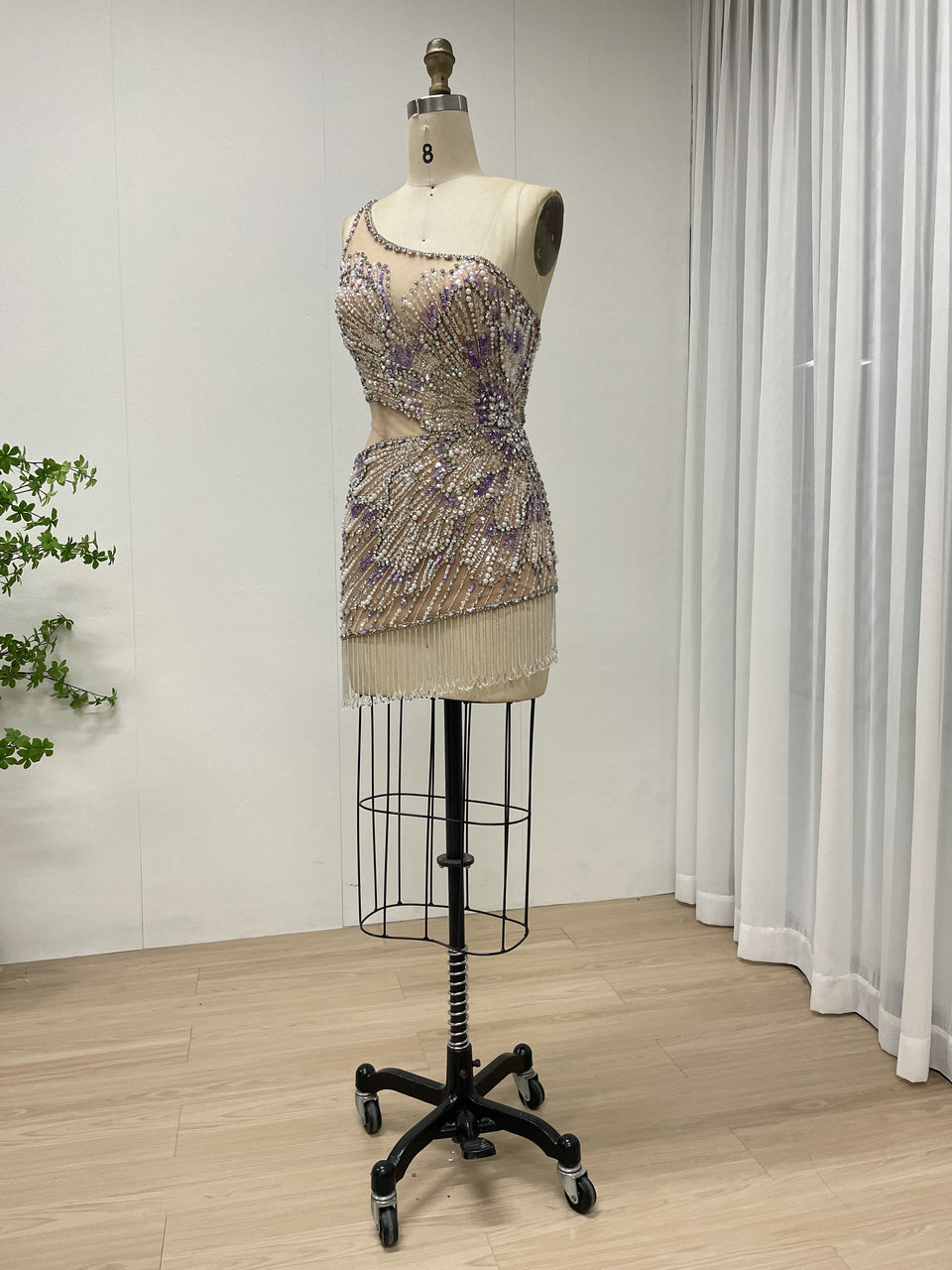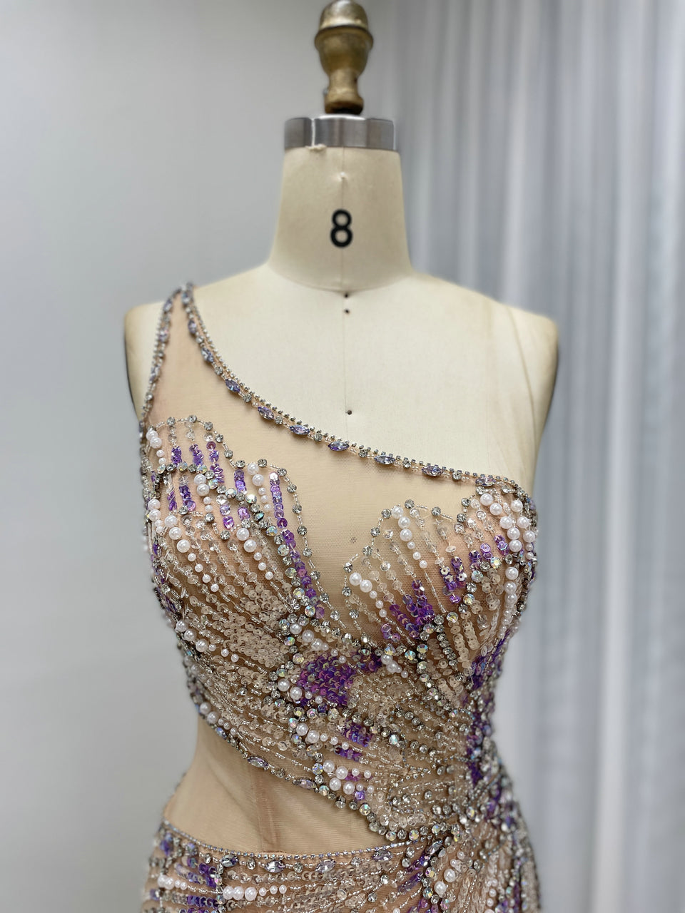 Elegant One Shoulder Fringe Prom Evening Gown Embellished Exquisite Colorful Beaded Crystal Pearls for Party MB40412