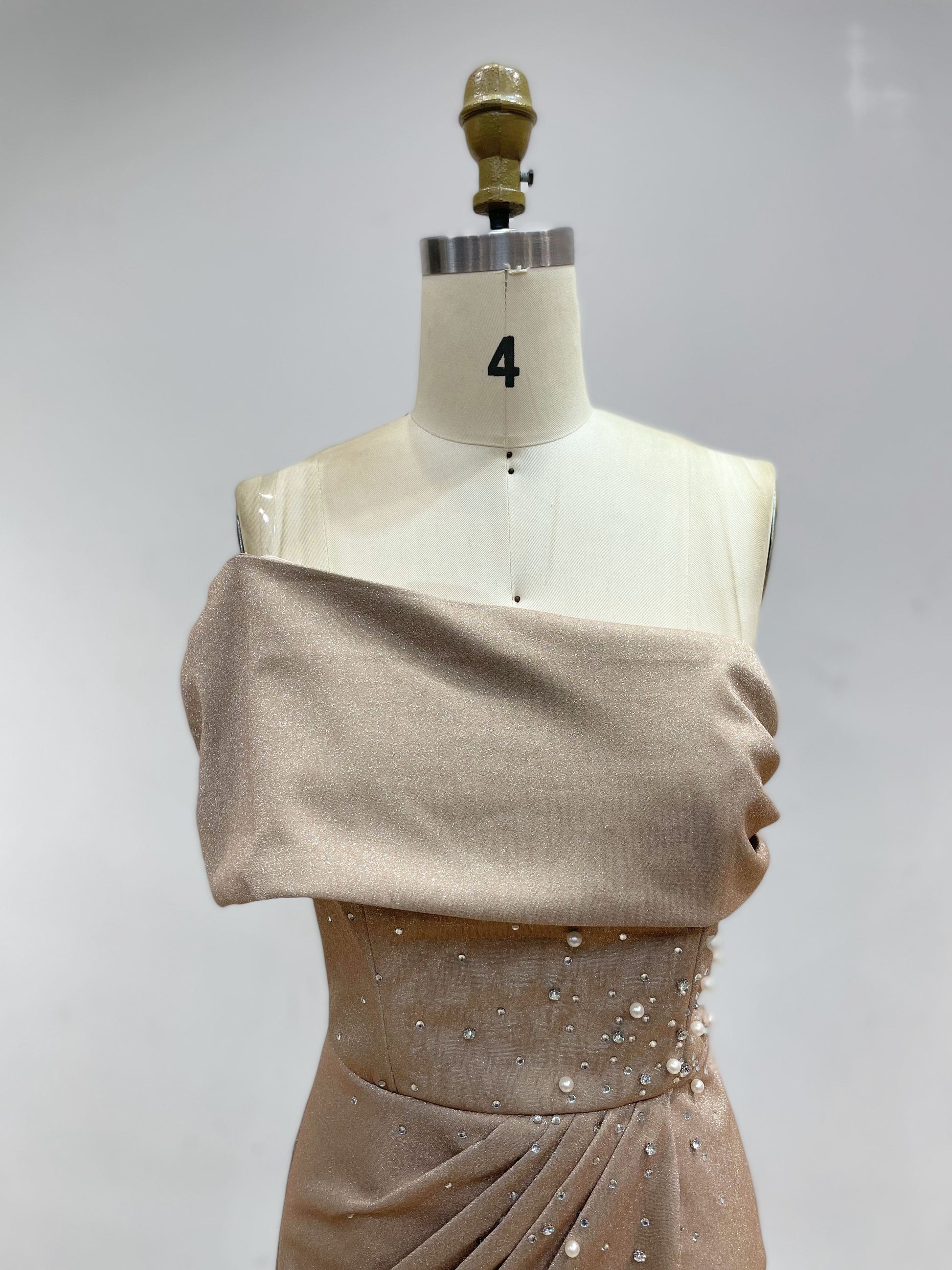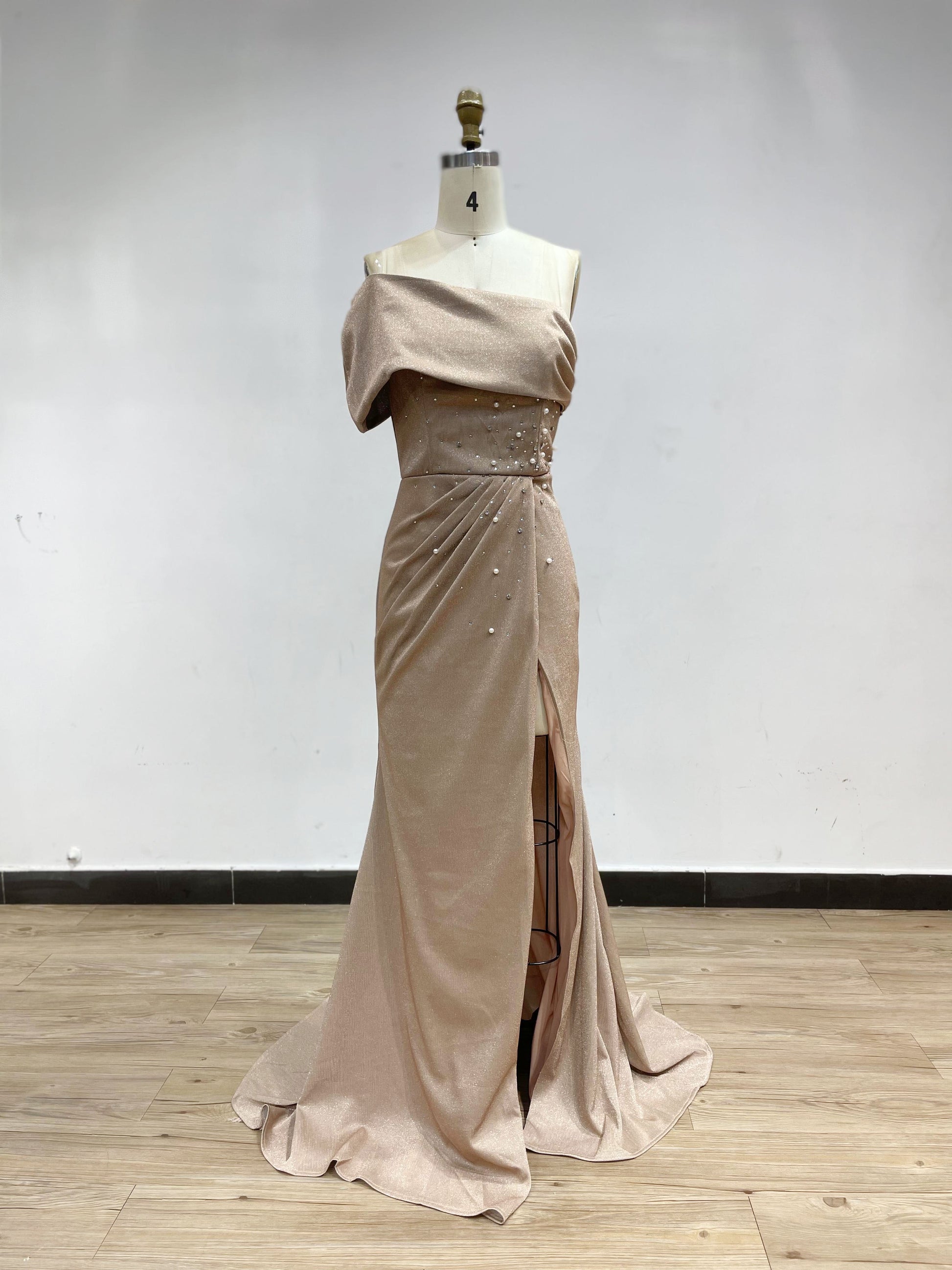 Elegant One Shoulder High Split Ruched Skirt Bridesmaid Dress AM22206