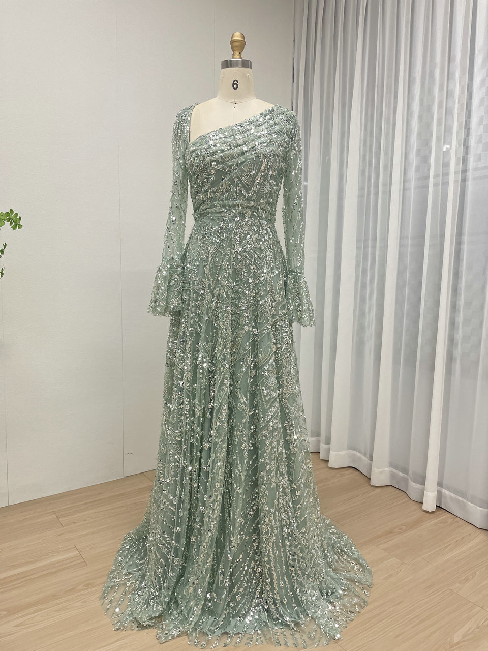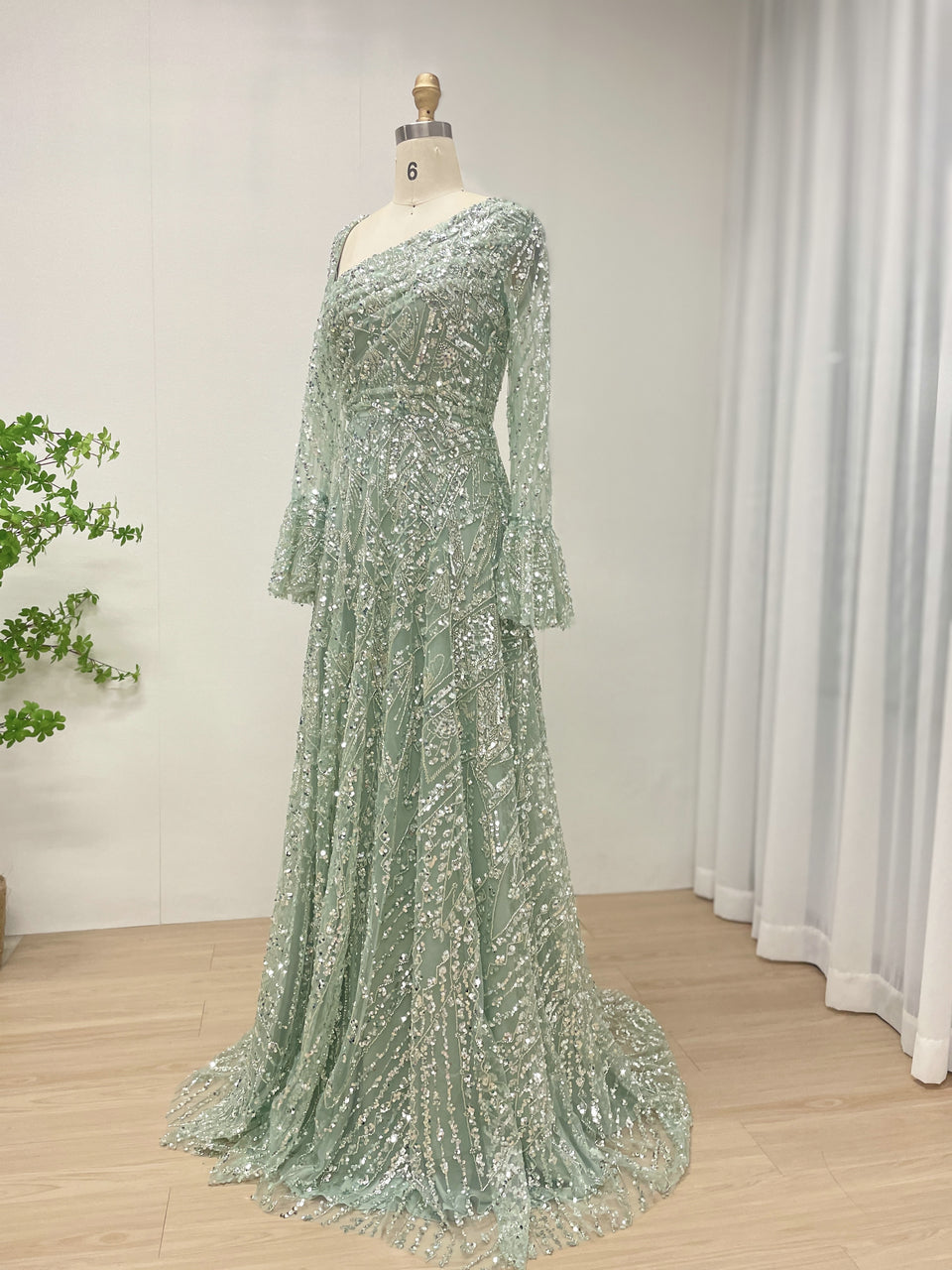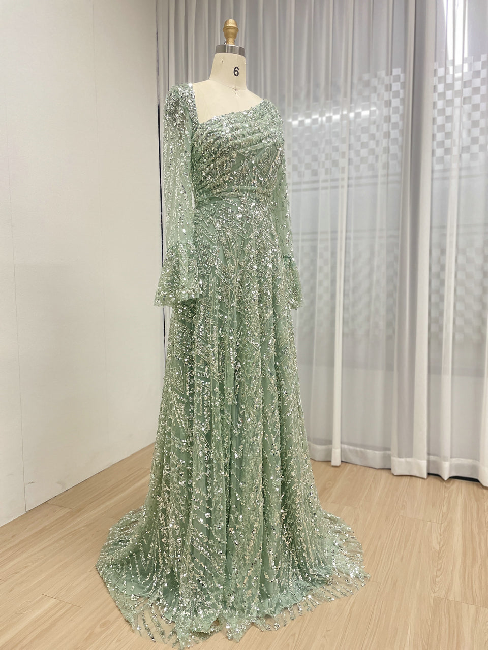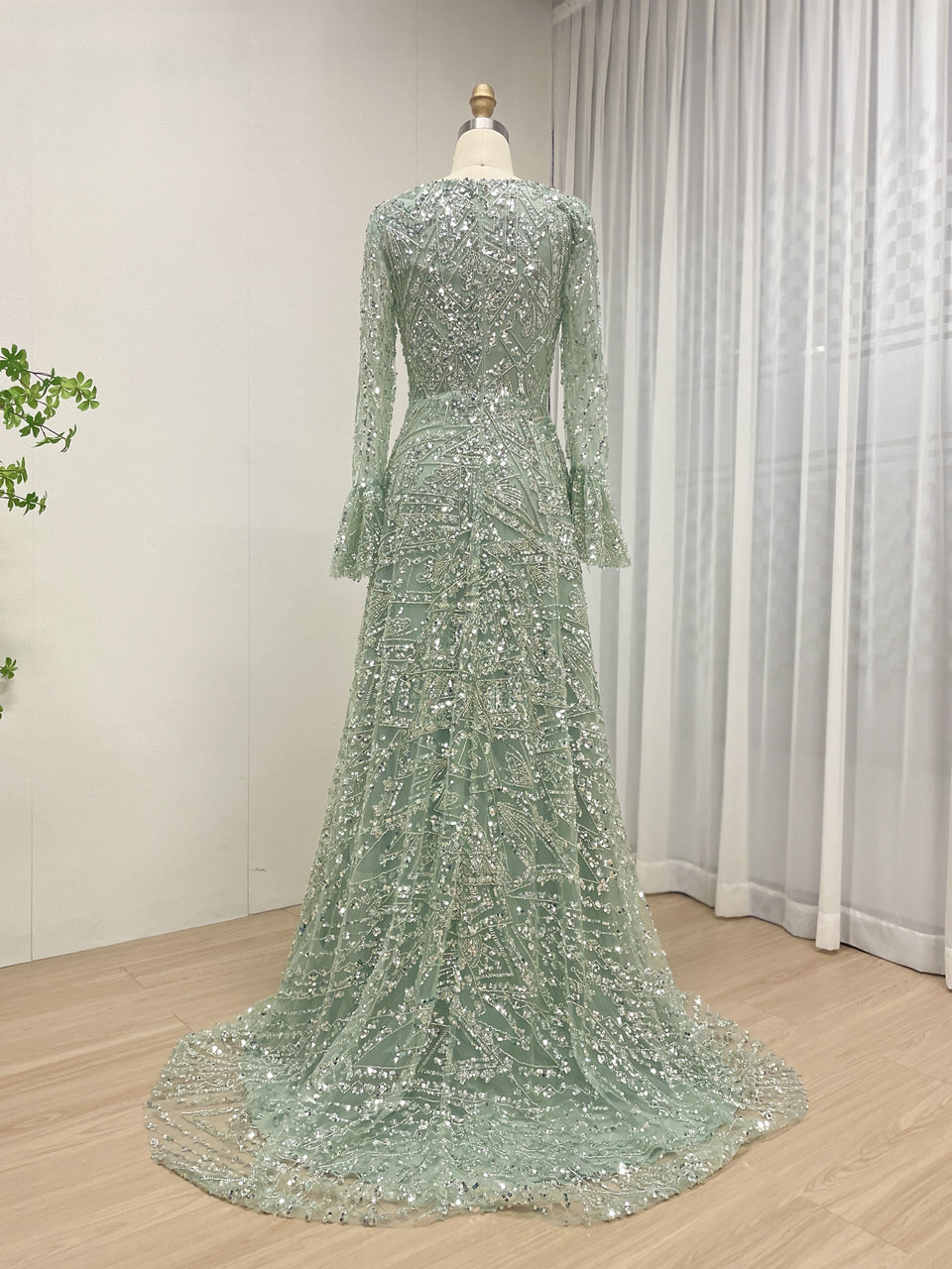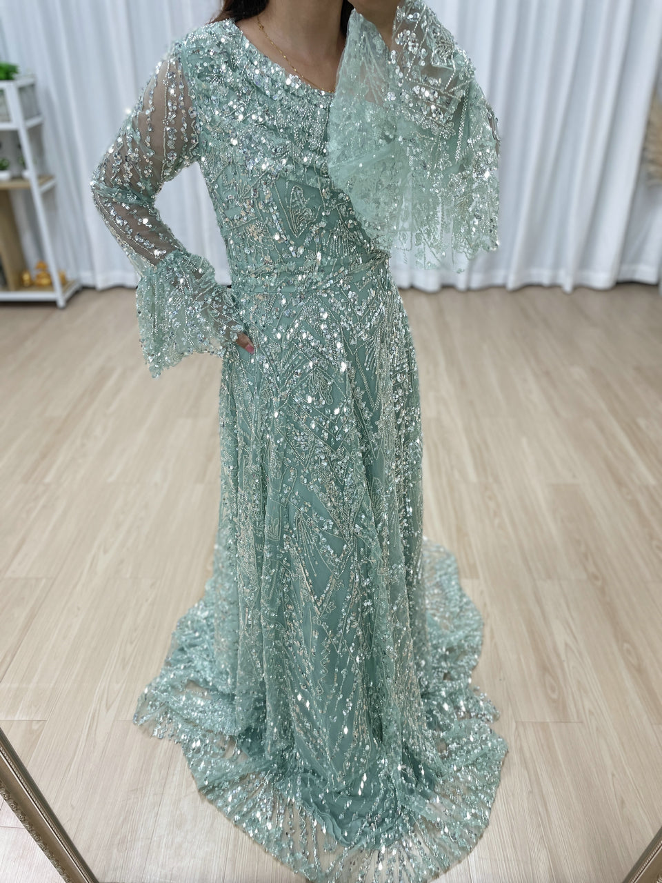 Elegant Sequined Flared Sleeves Flowing Skirt Luxury Evening Wear for Special Occasions MY30089-2
