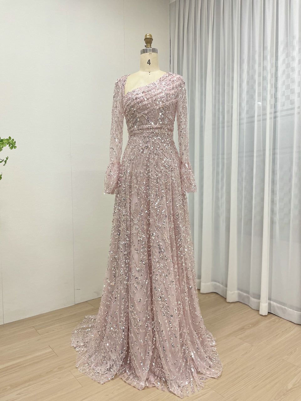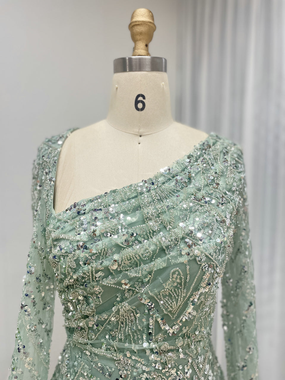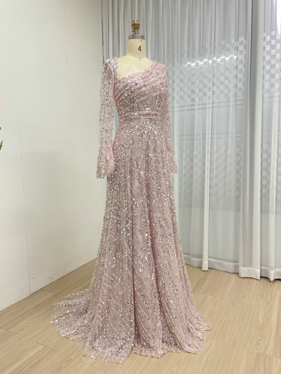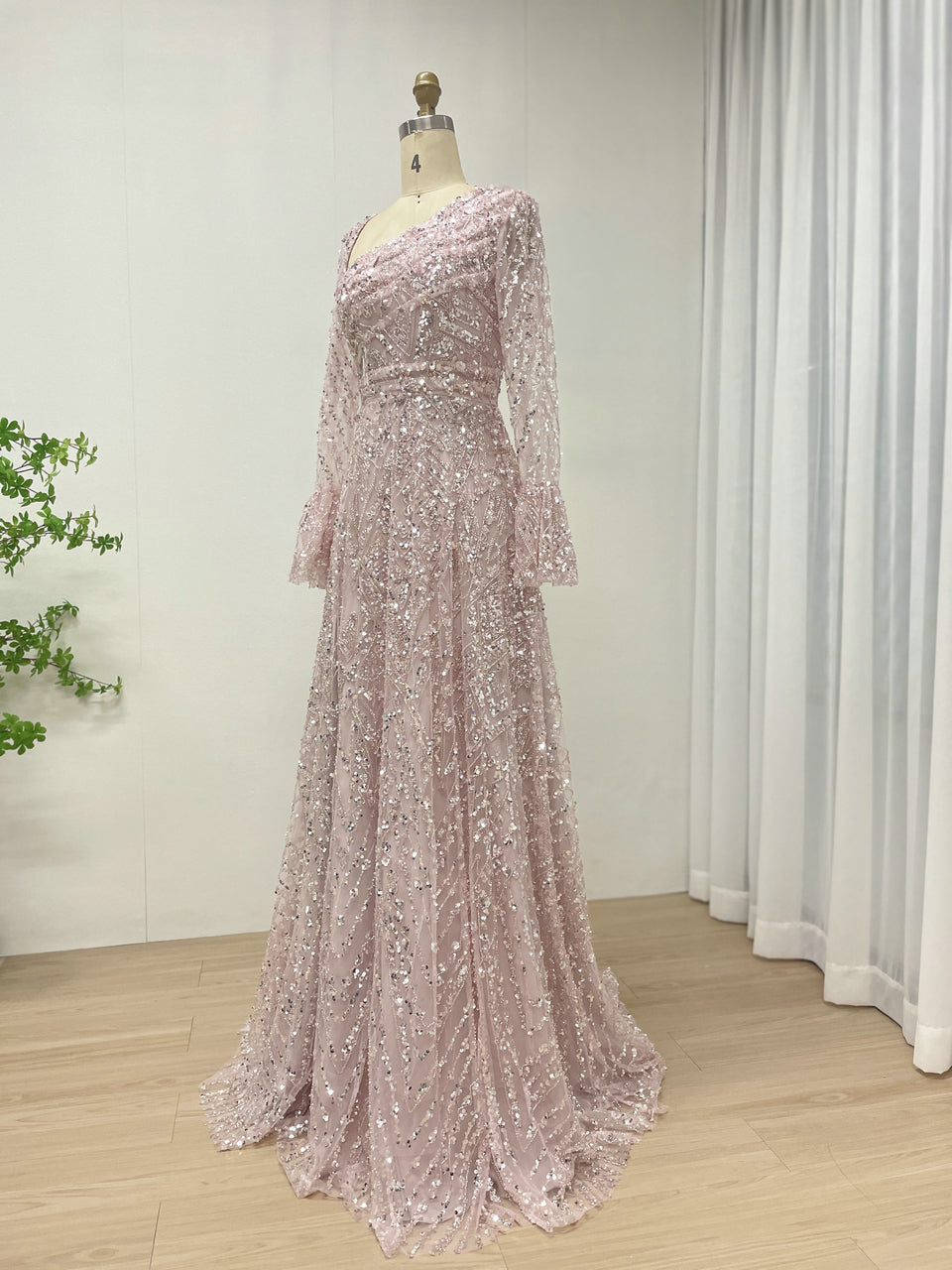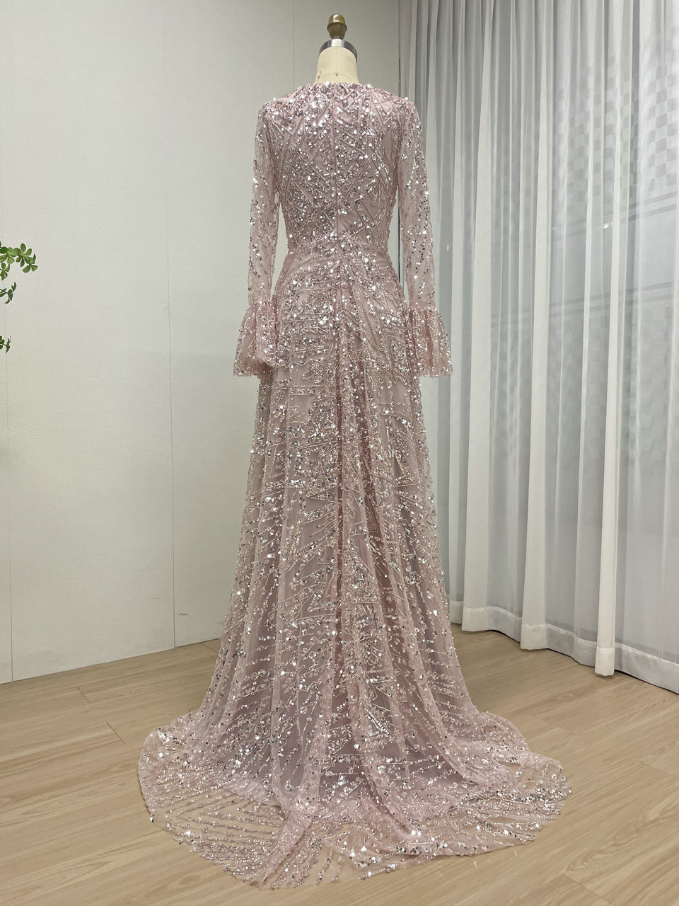 Elegant Sequined Flared Sleeves Flowing Skirt Luxury Evening Wear for Special Occasions MY30089-2