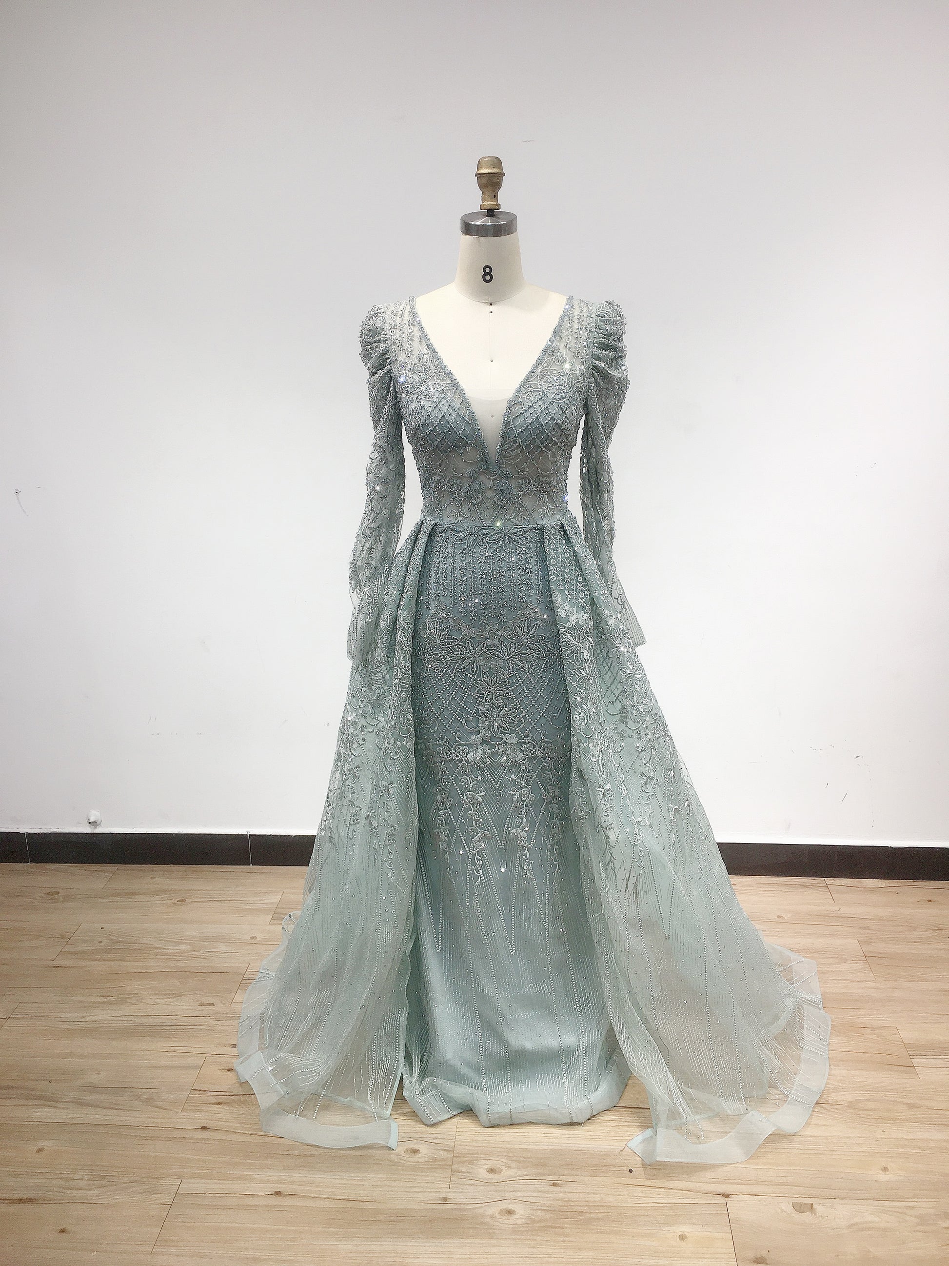 Elegant V Neckline Long Sleeve Plus Size Lace Evening Dress DSTL5823