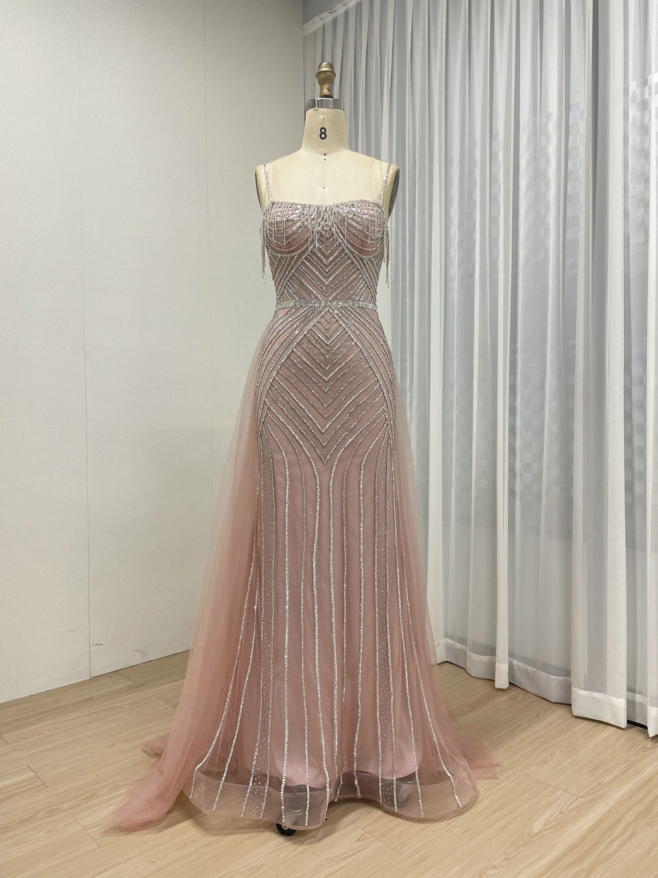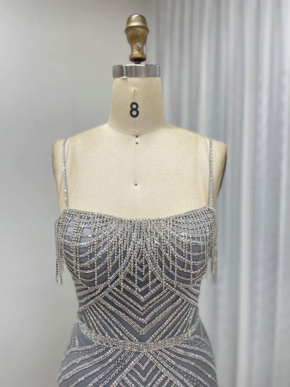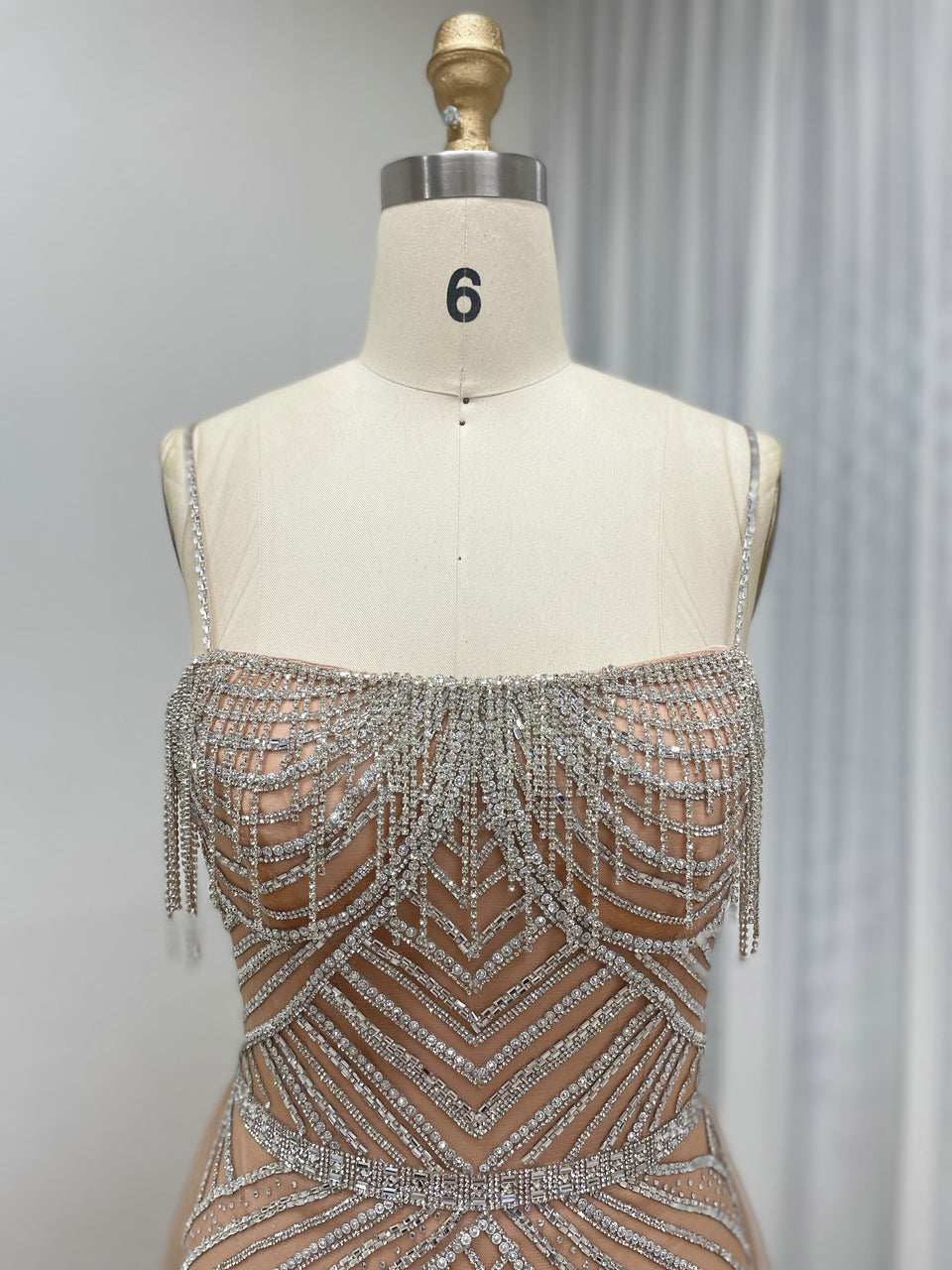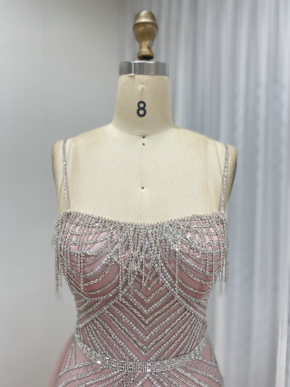 Embellished Intricate Crystal Beading Strap Dress Dubai Wedding Formal Party Gowns MB40418