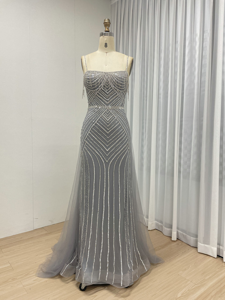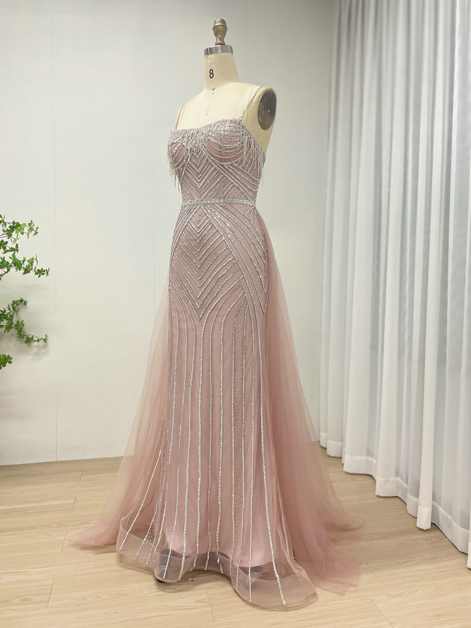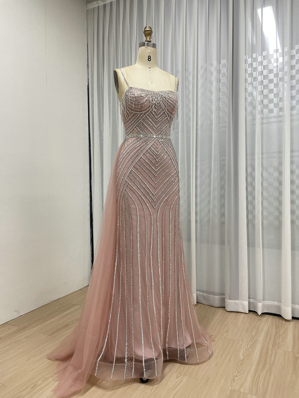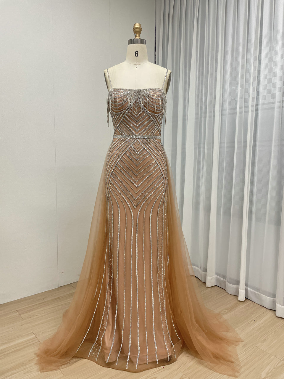 Embellished Intricate Crystal Beading Strap Dress Dubai Wedding Formal Party Gowns MB40418