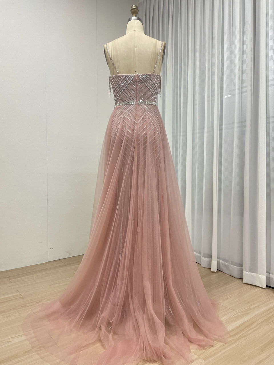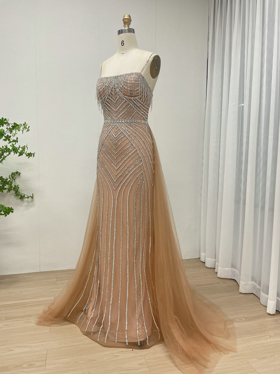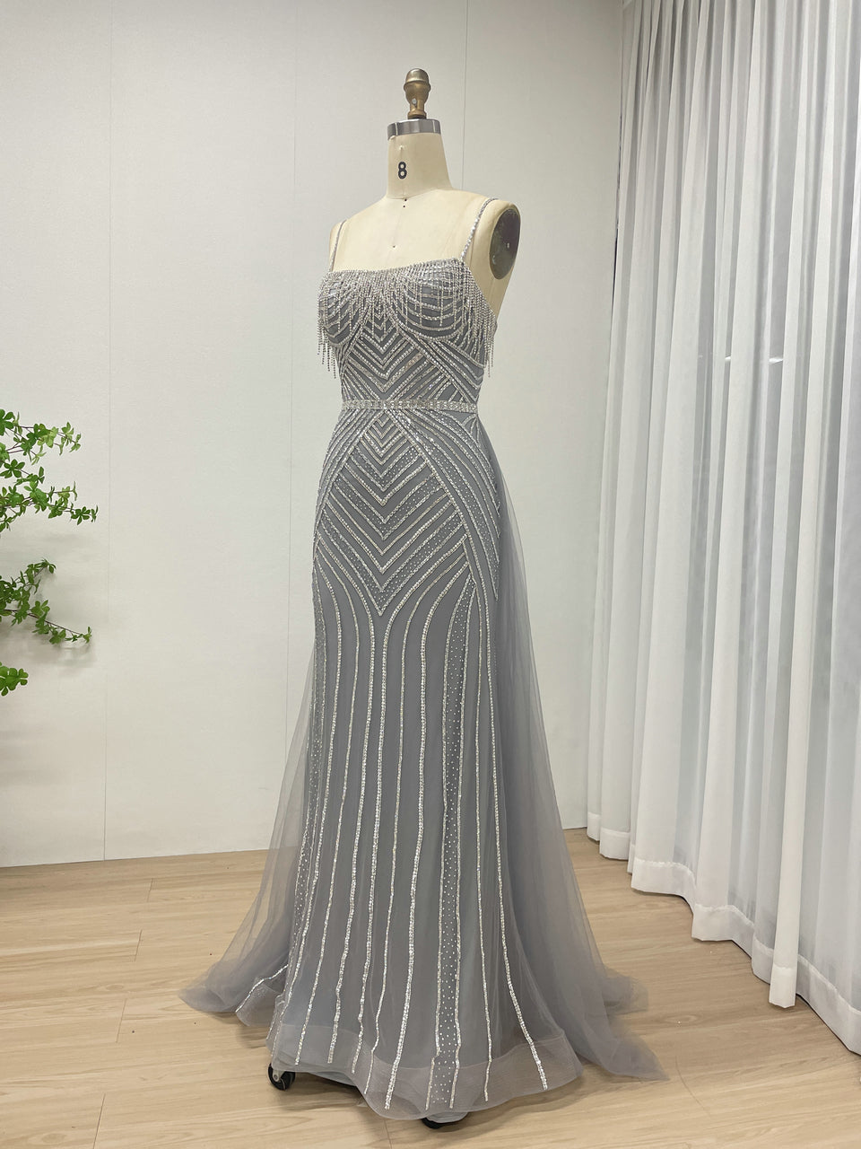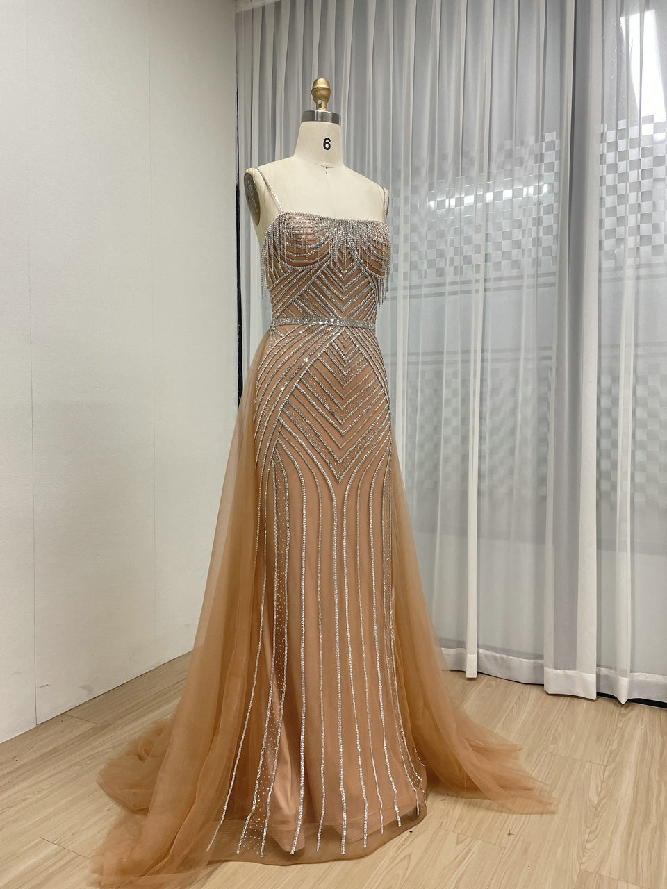Embellished Intricate Crystal Beading Strap Dress Dubai Wedding Formal Party Gowns MB40418