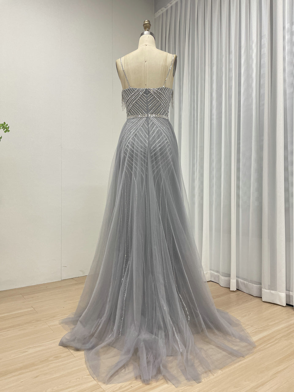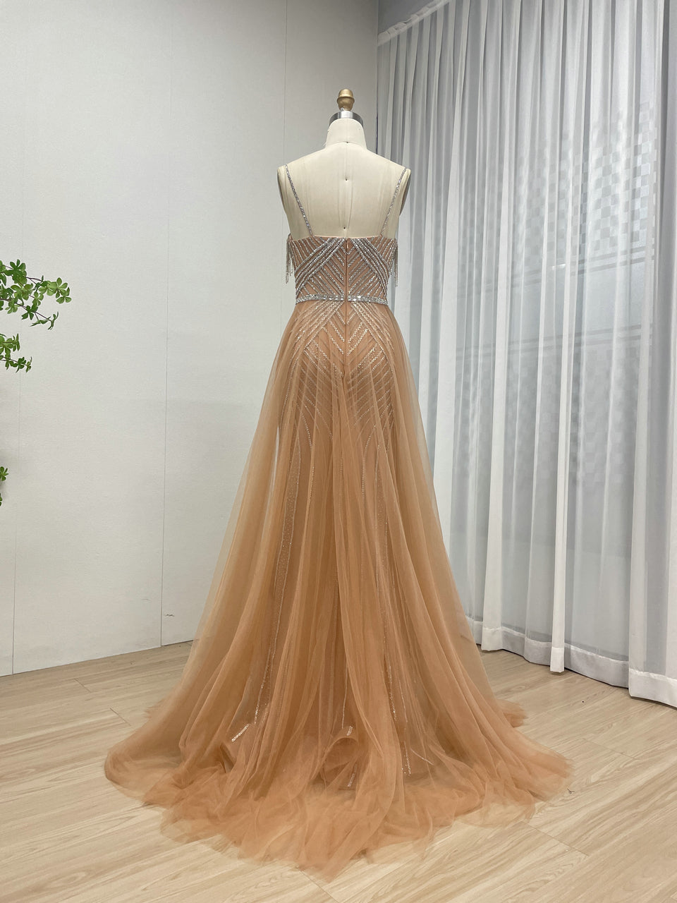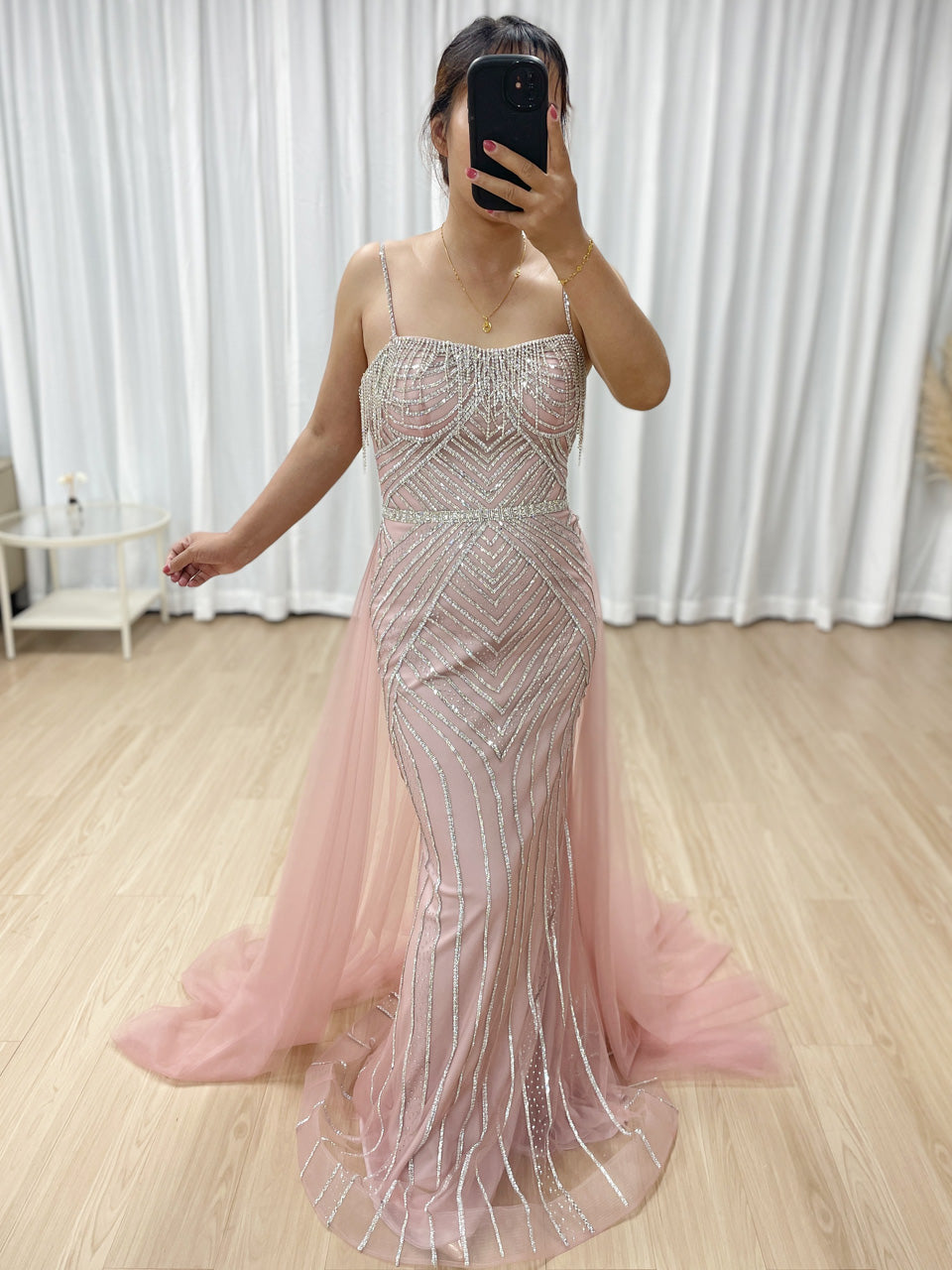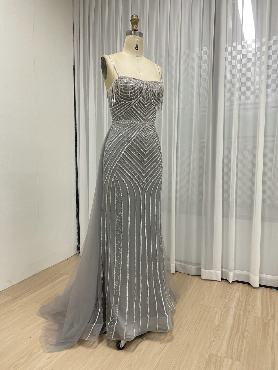 Embellished Intricate Crystal Beading Strap Dress Dubai Wedding Formal Party Gowns MB40418