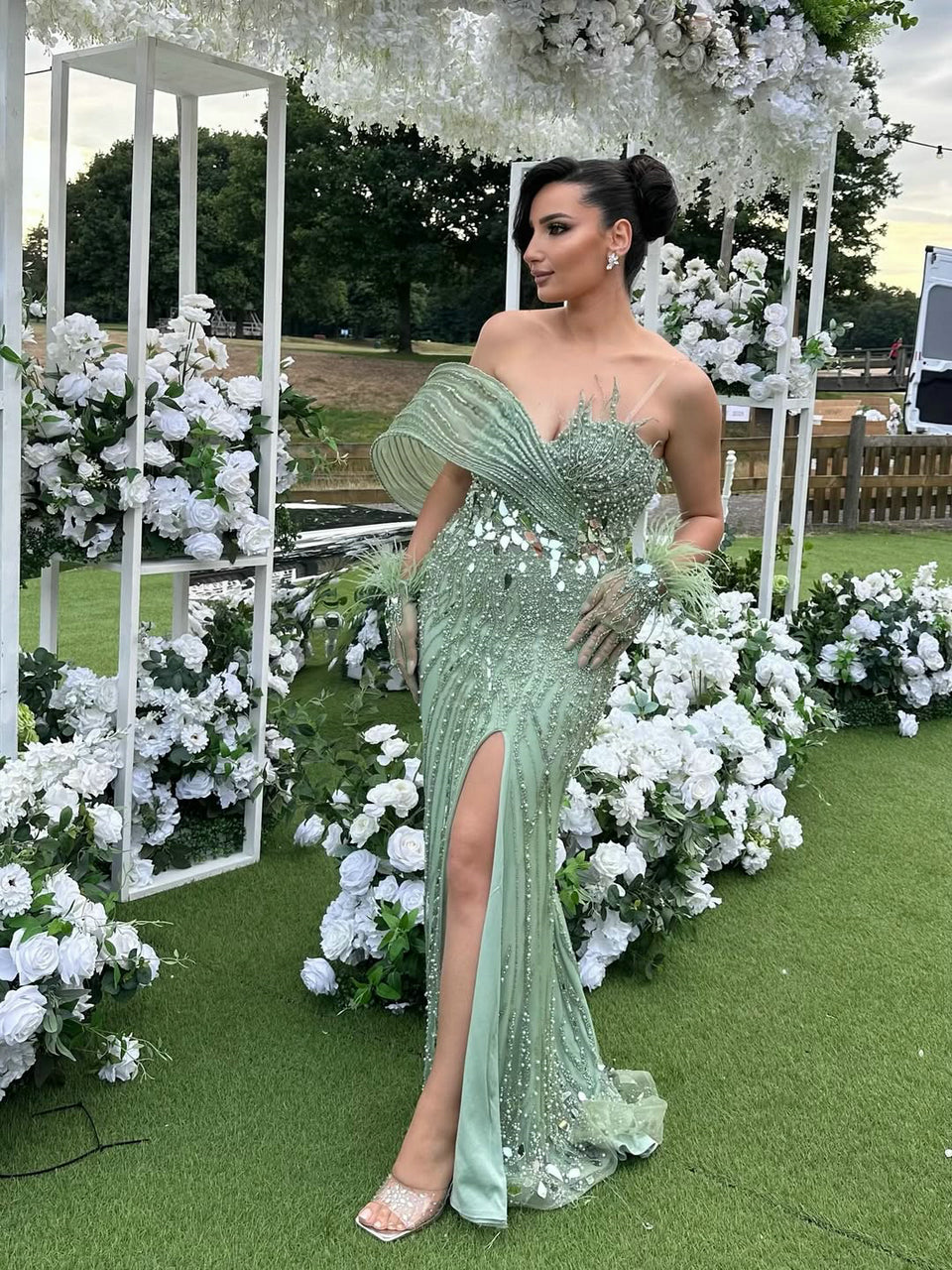 Exclusive Couture Beading Red Carpet High Split Evening Dress MY30059-2