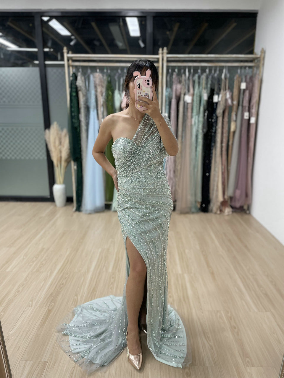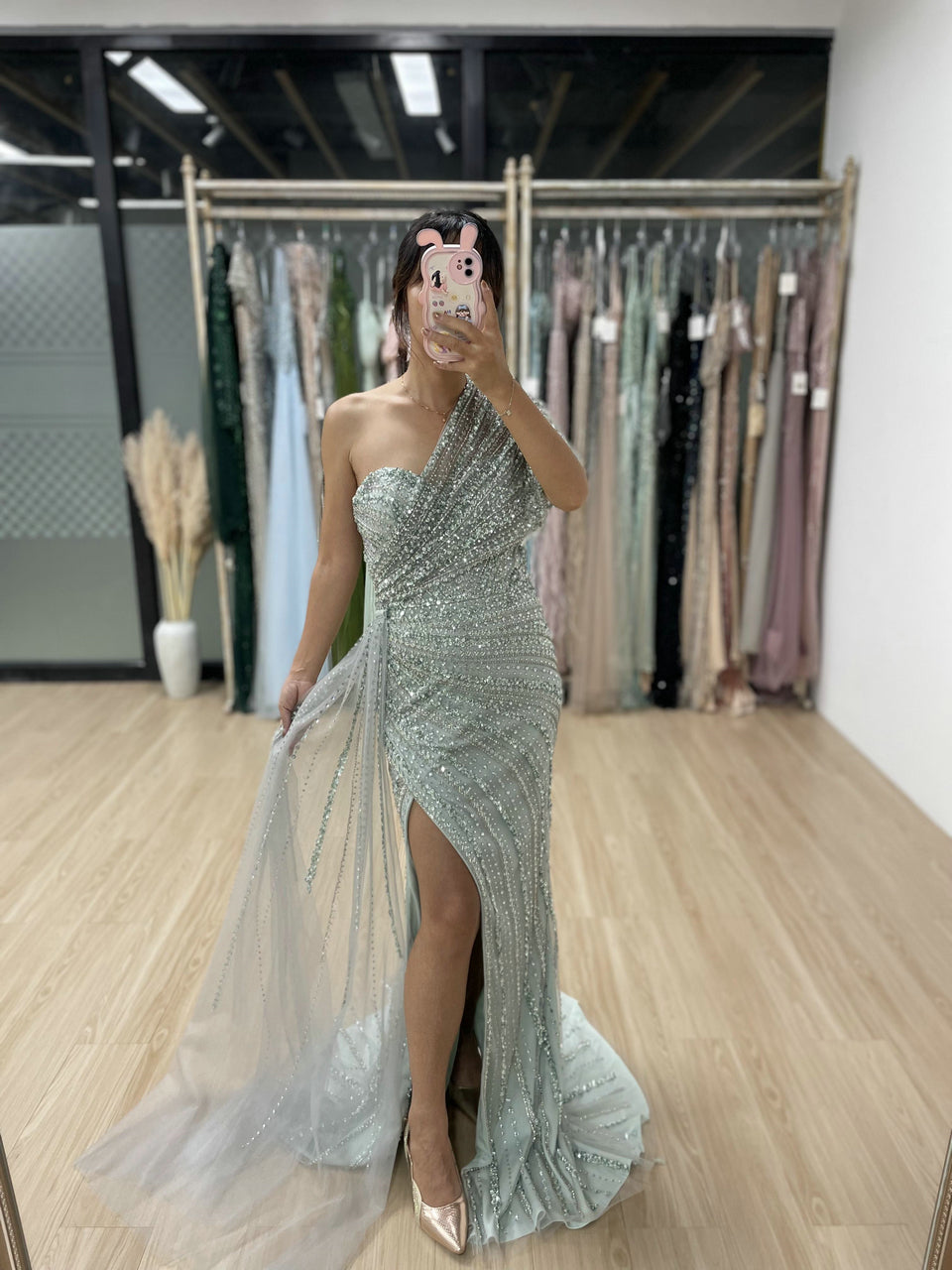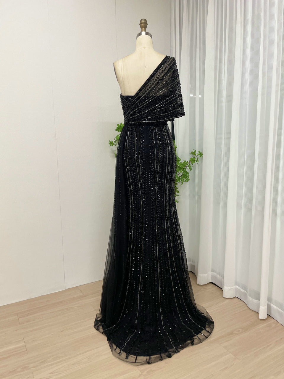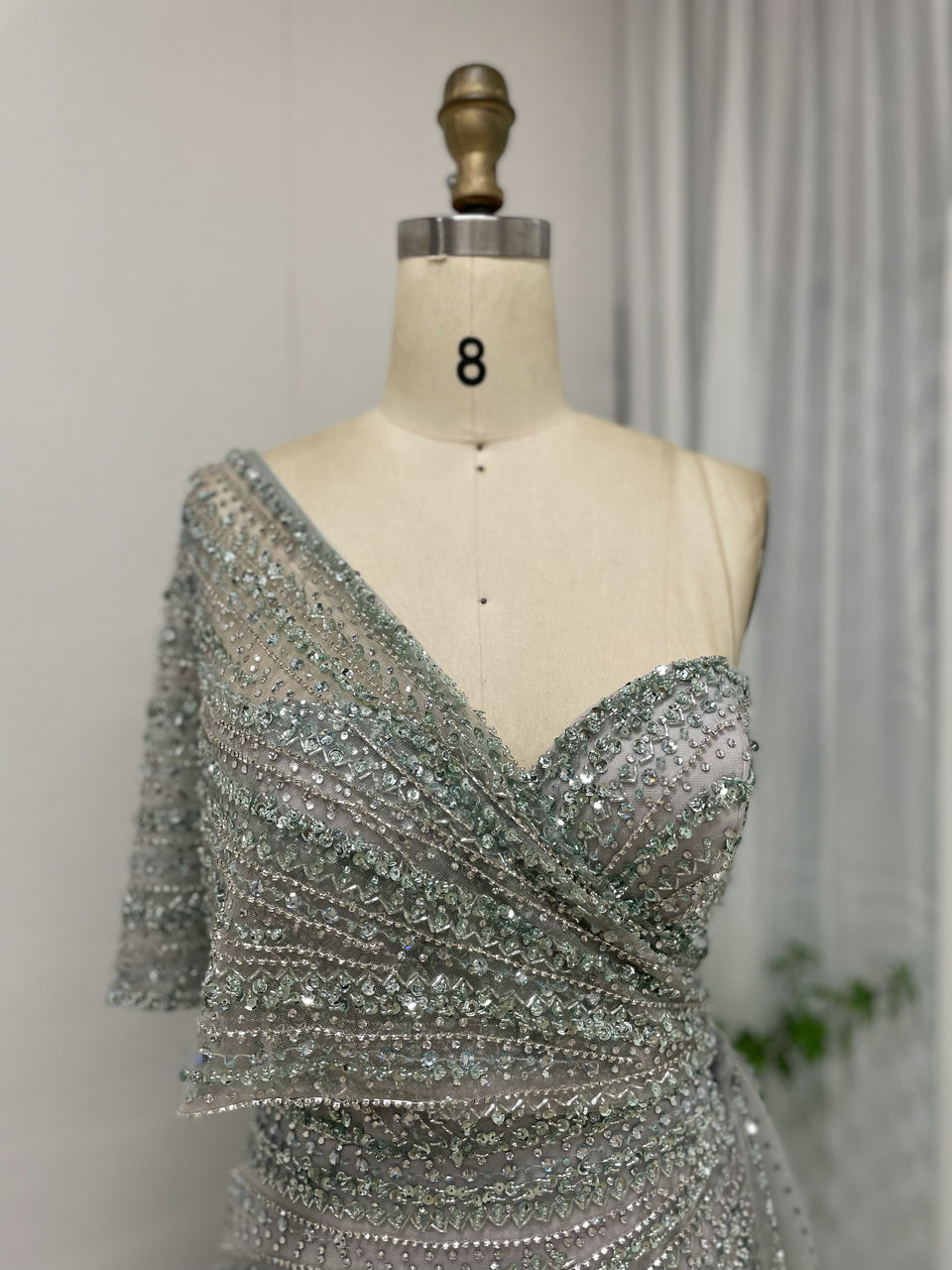 Exclusive Luxury Handmade Beading Evening Dress One-Shoulder High Slit Wedding Party Dress MB40028-3