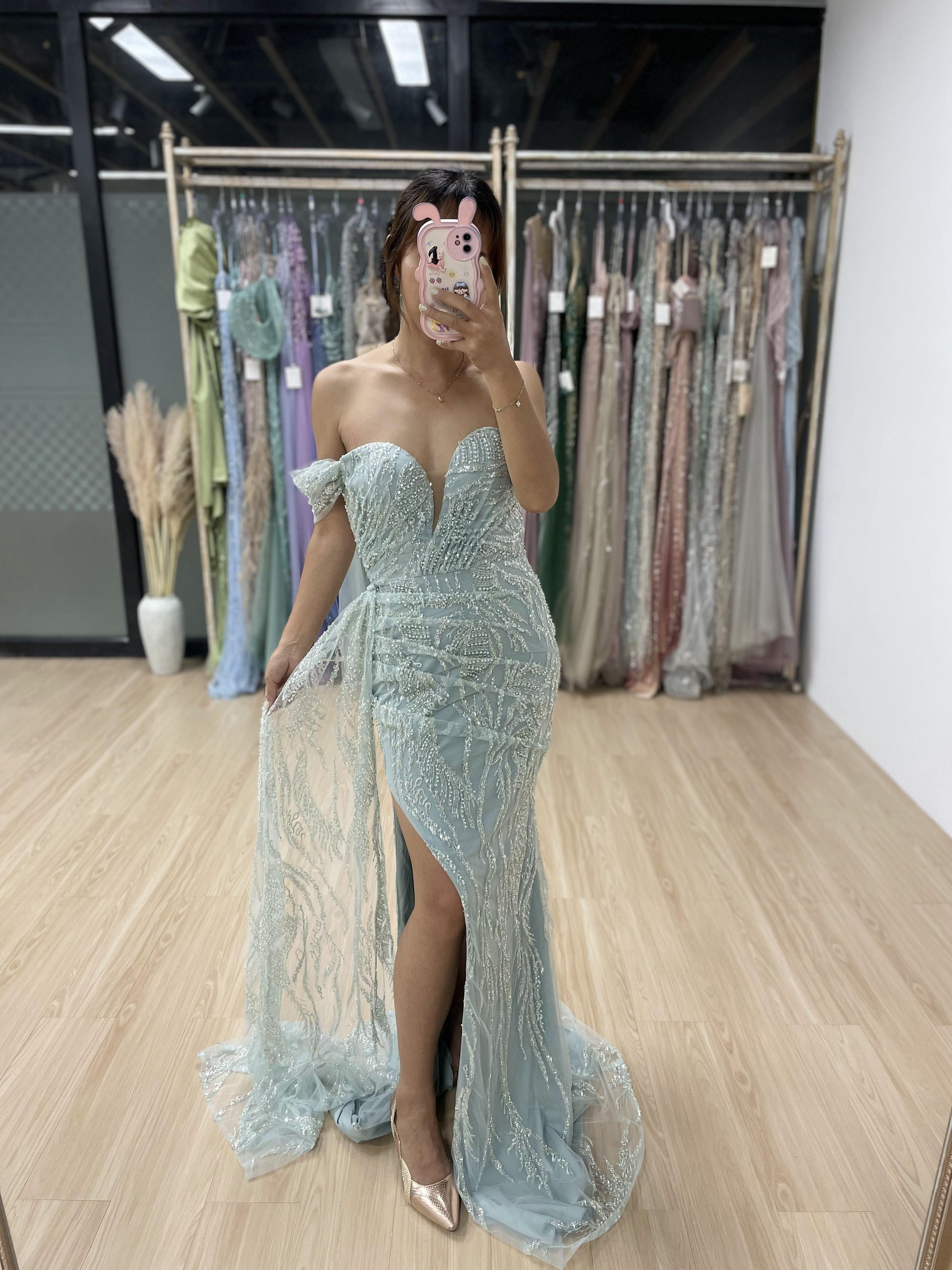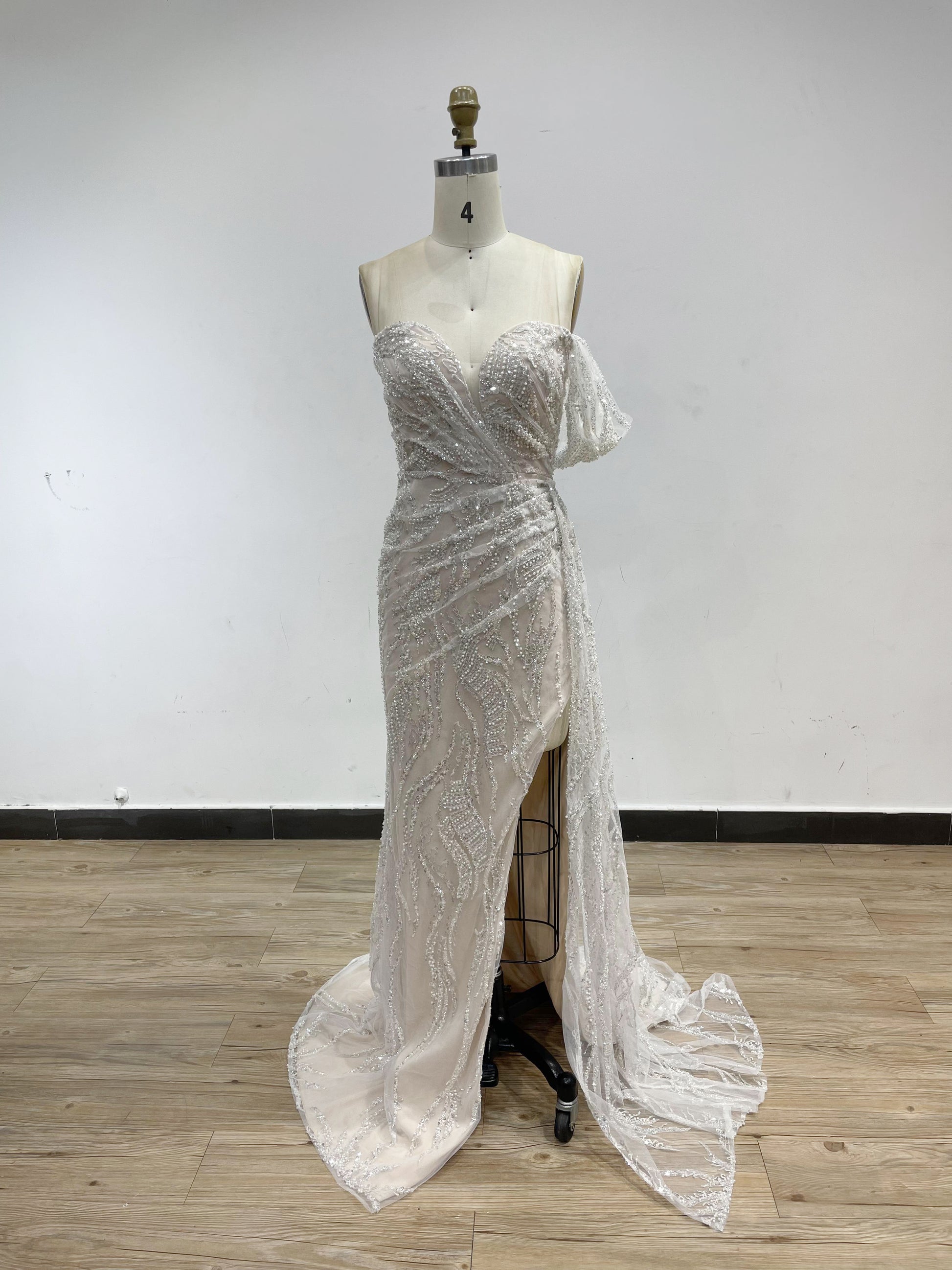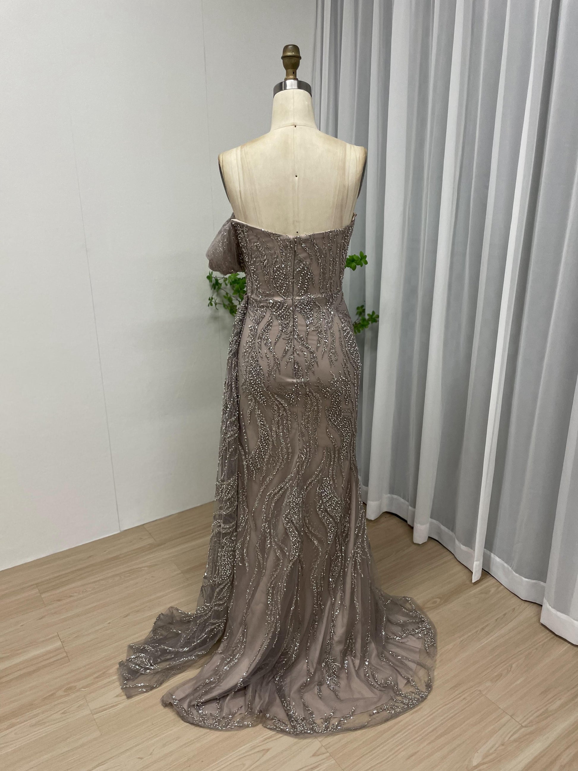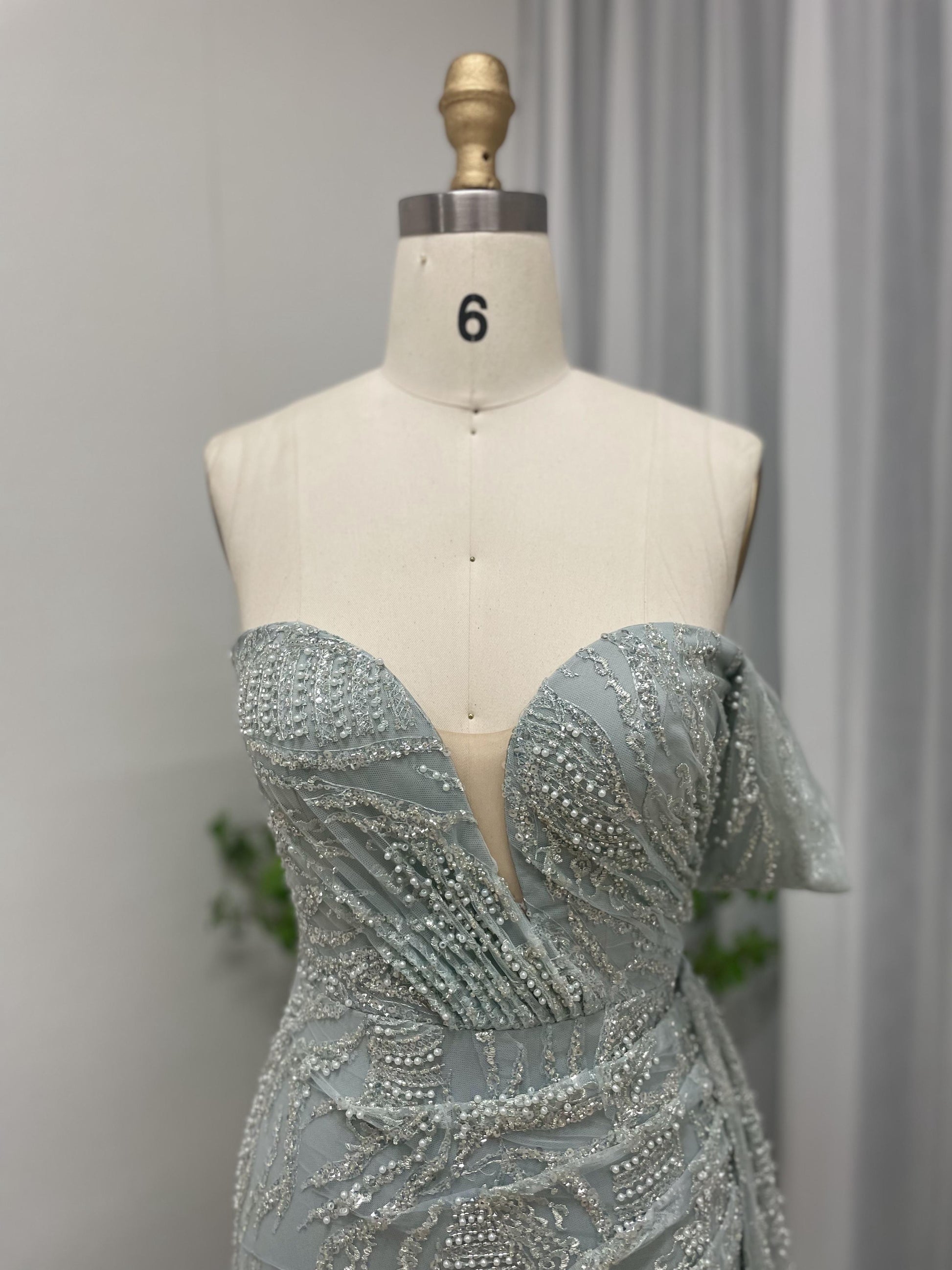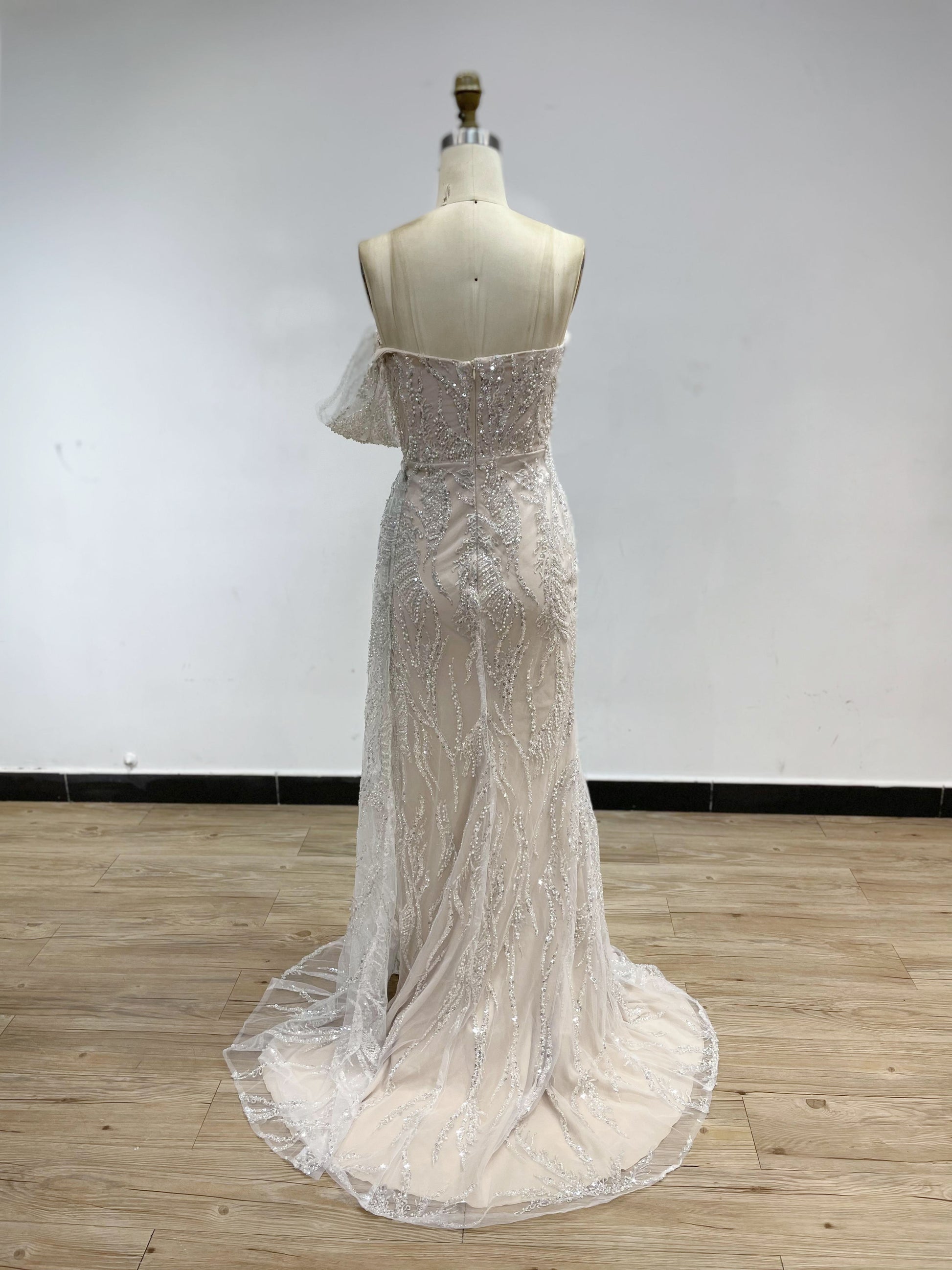 Exclusive Off Shoulder High Split Couture Beading Lace Evening Dress DDS064