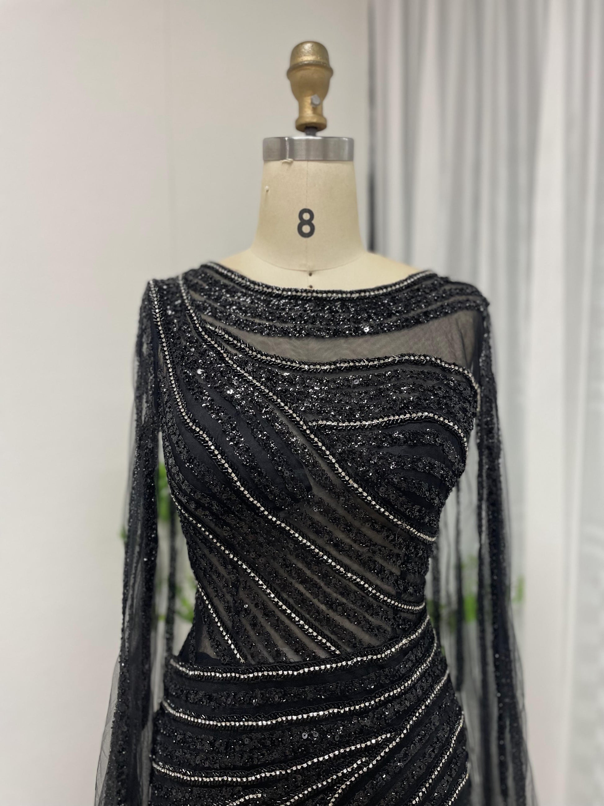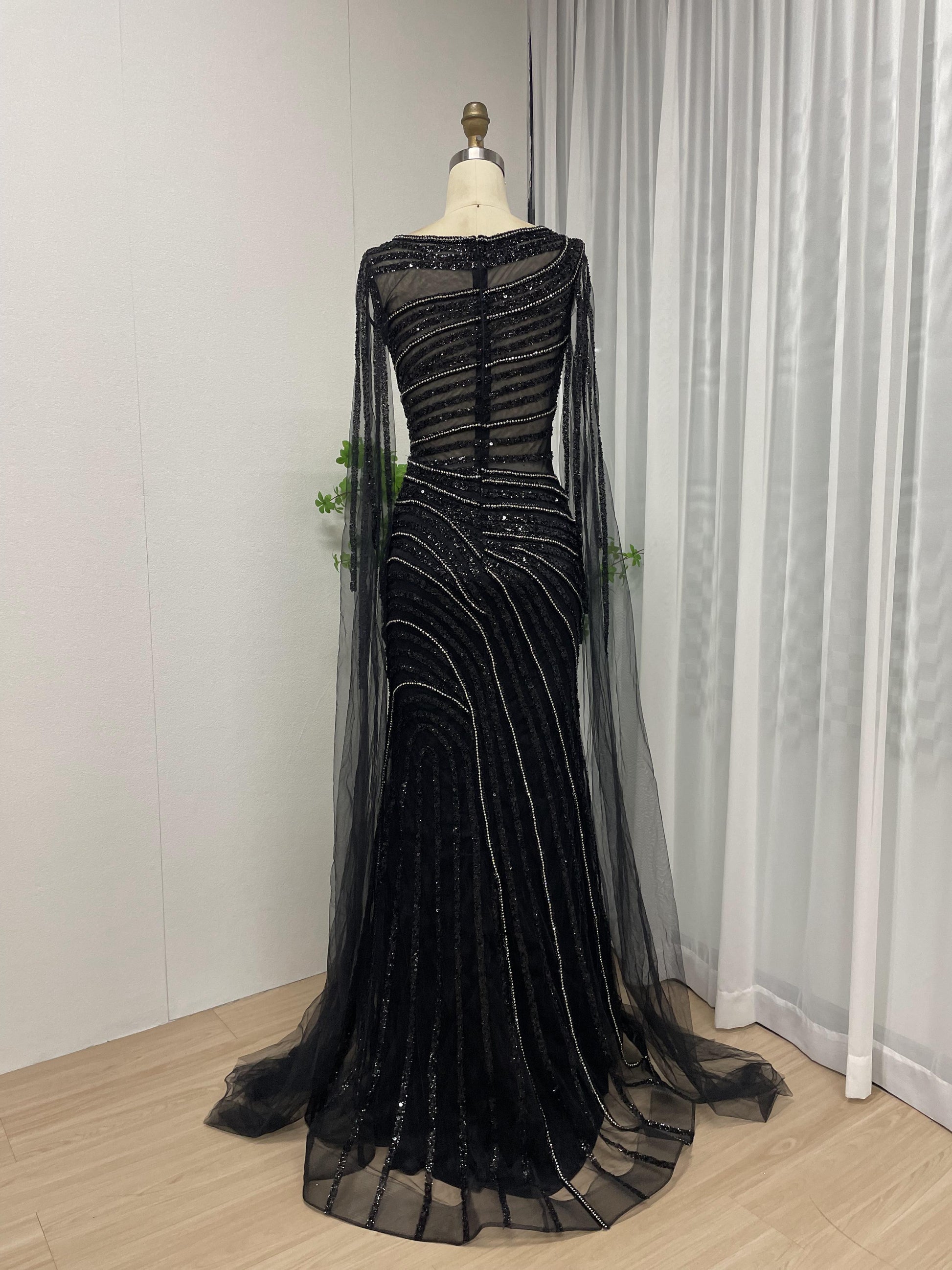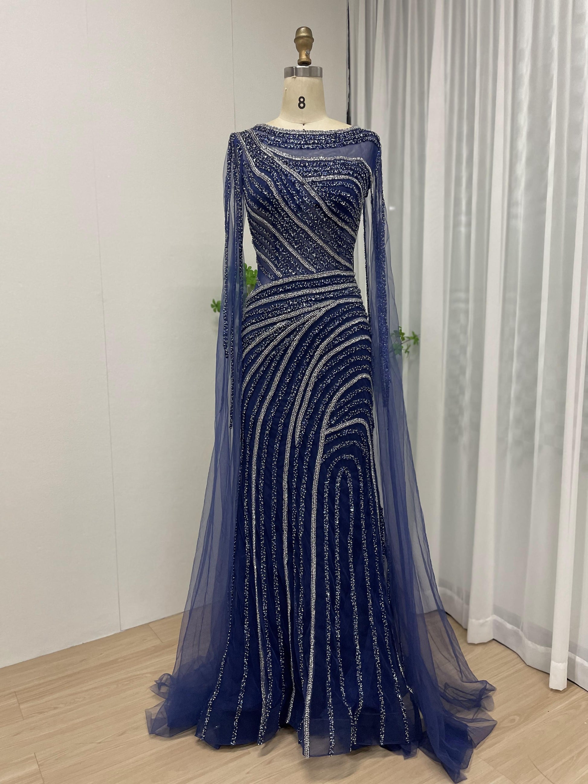 Exclusive Round Neck Couture Beading Lace Cape Sleeve Muslim Party Formal Gown MB40208