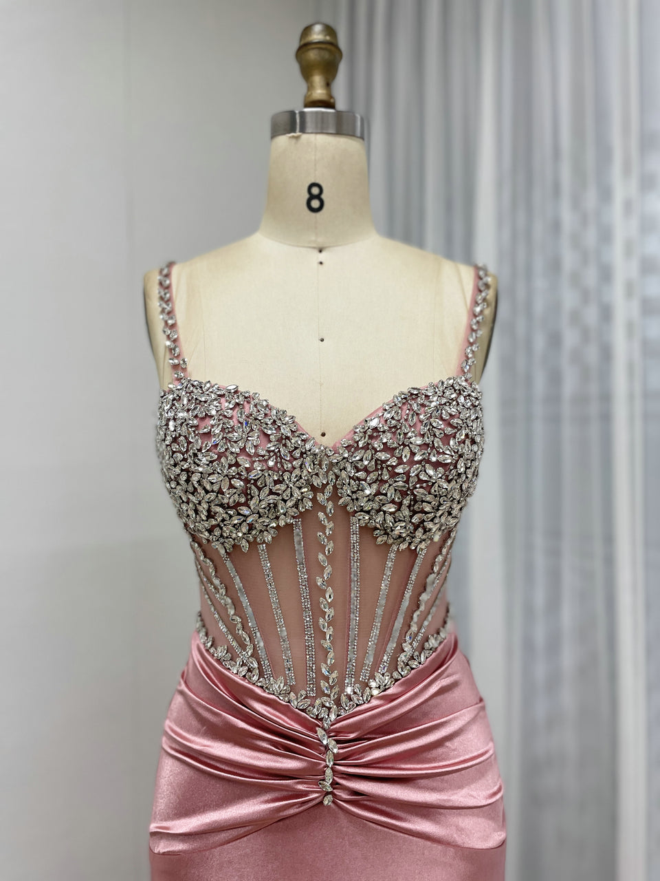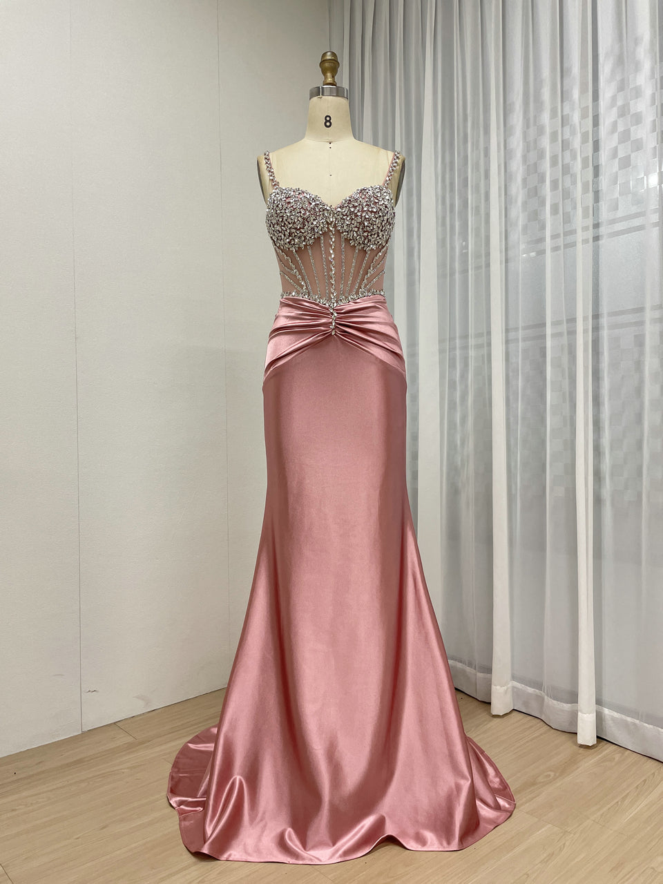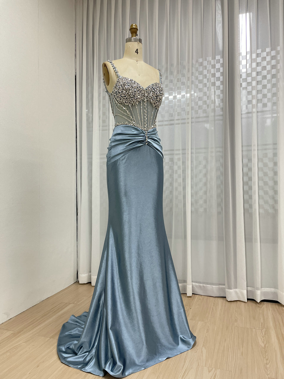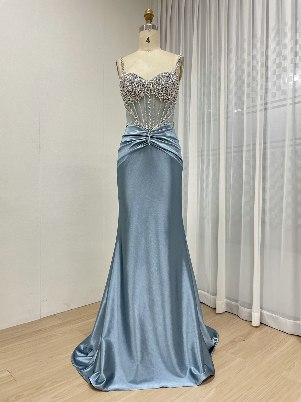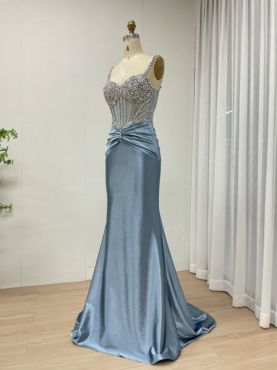 Exquisite Hand Beaded Crystal Diamond Sexy Spaghetti Strap Mermaid Prom Evening Gown MB40423