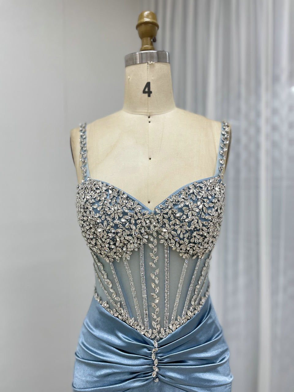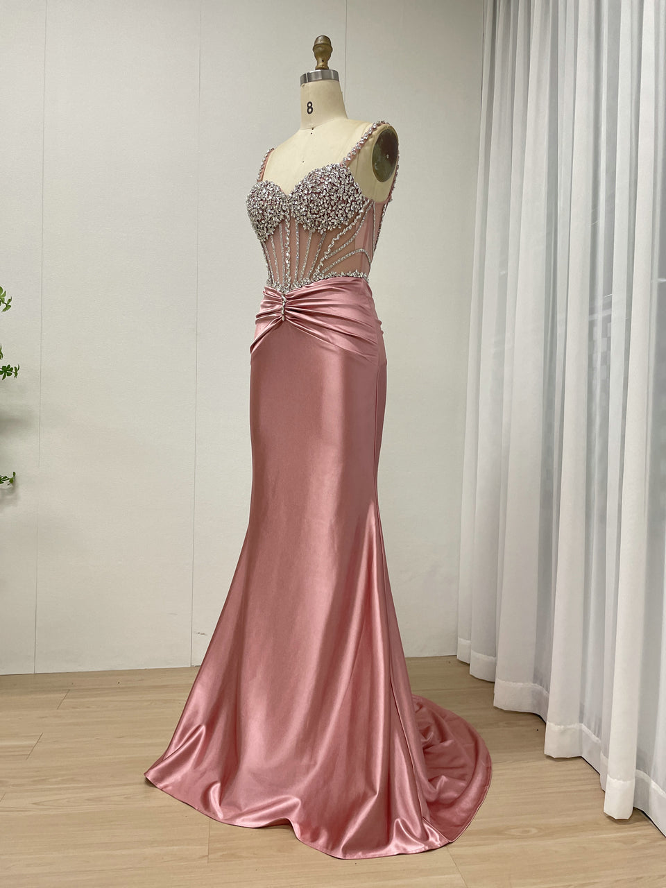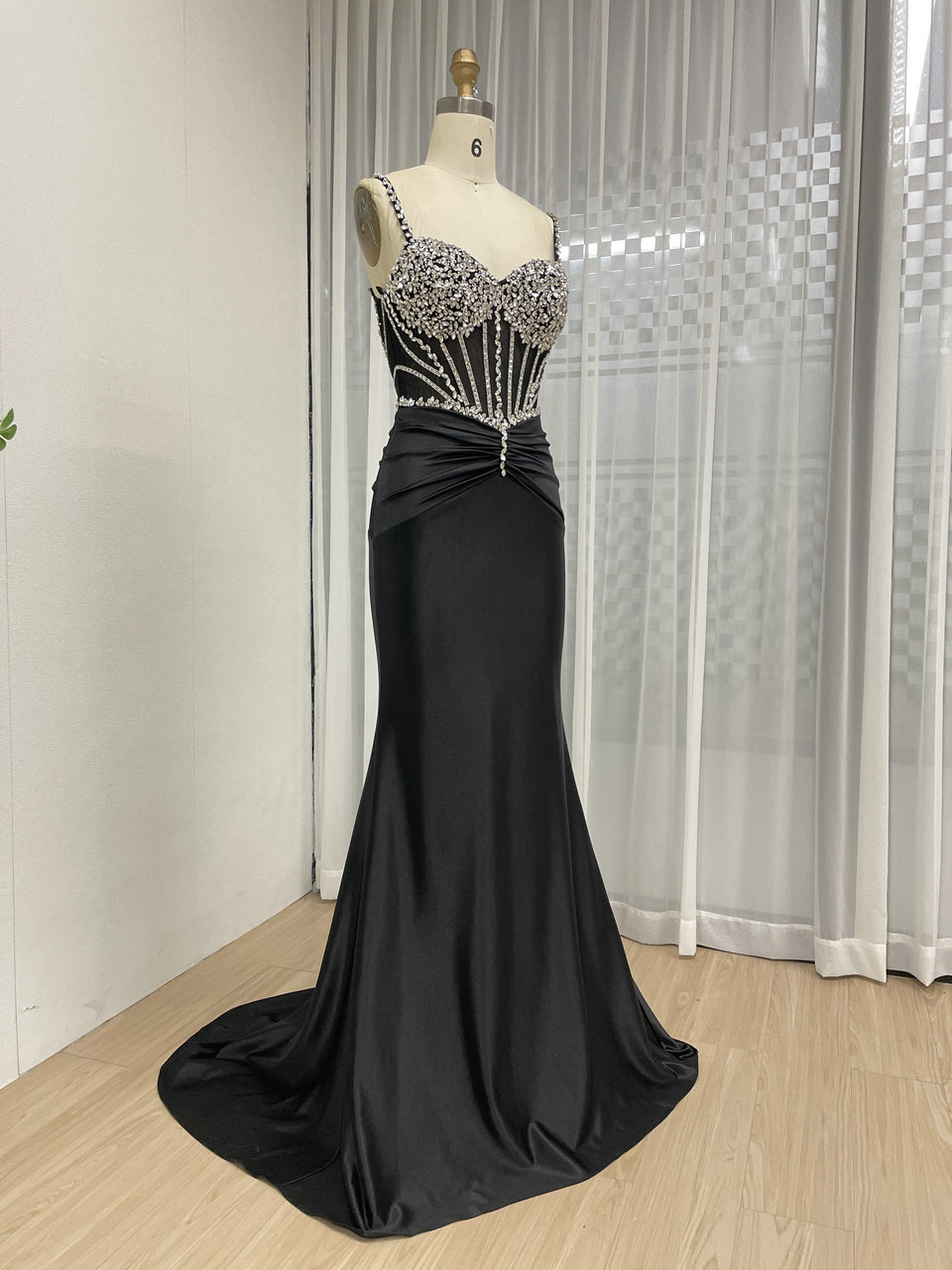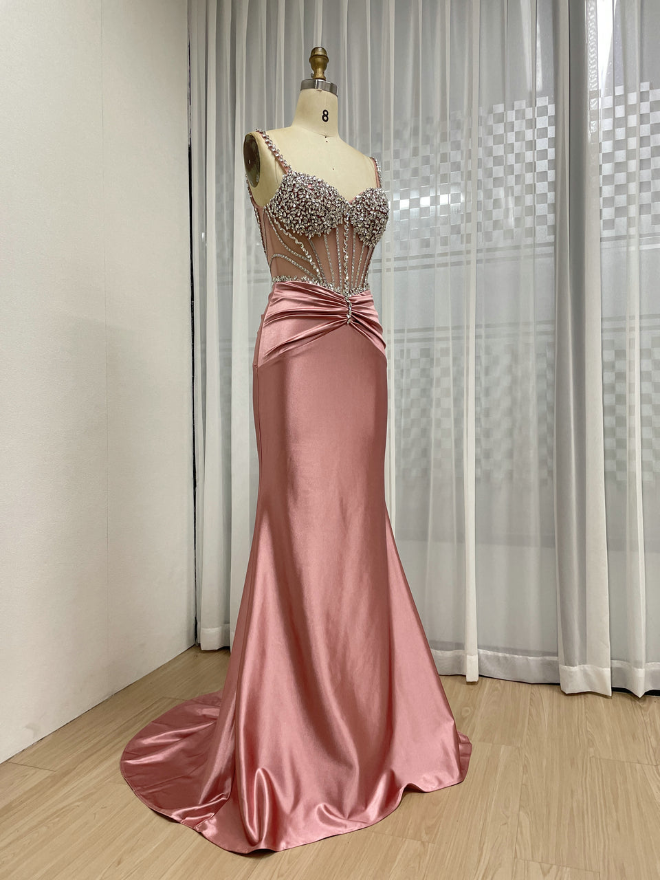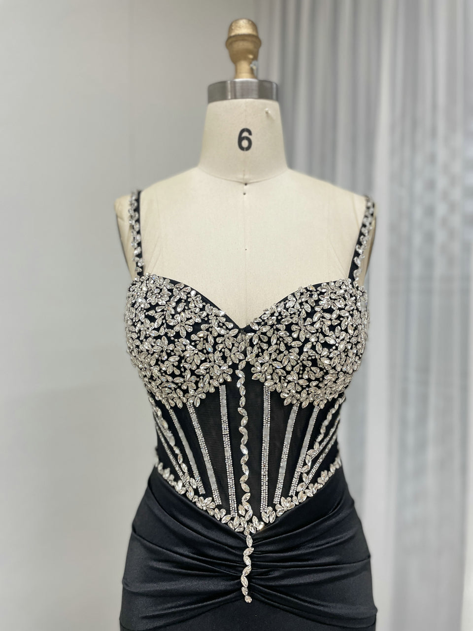 Exquisite Hand Beaded Crystal Diamond Sexy Spaghetti Strap Mermaid Prom Evening Gown MB40423