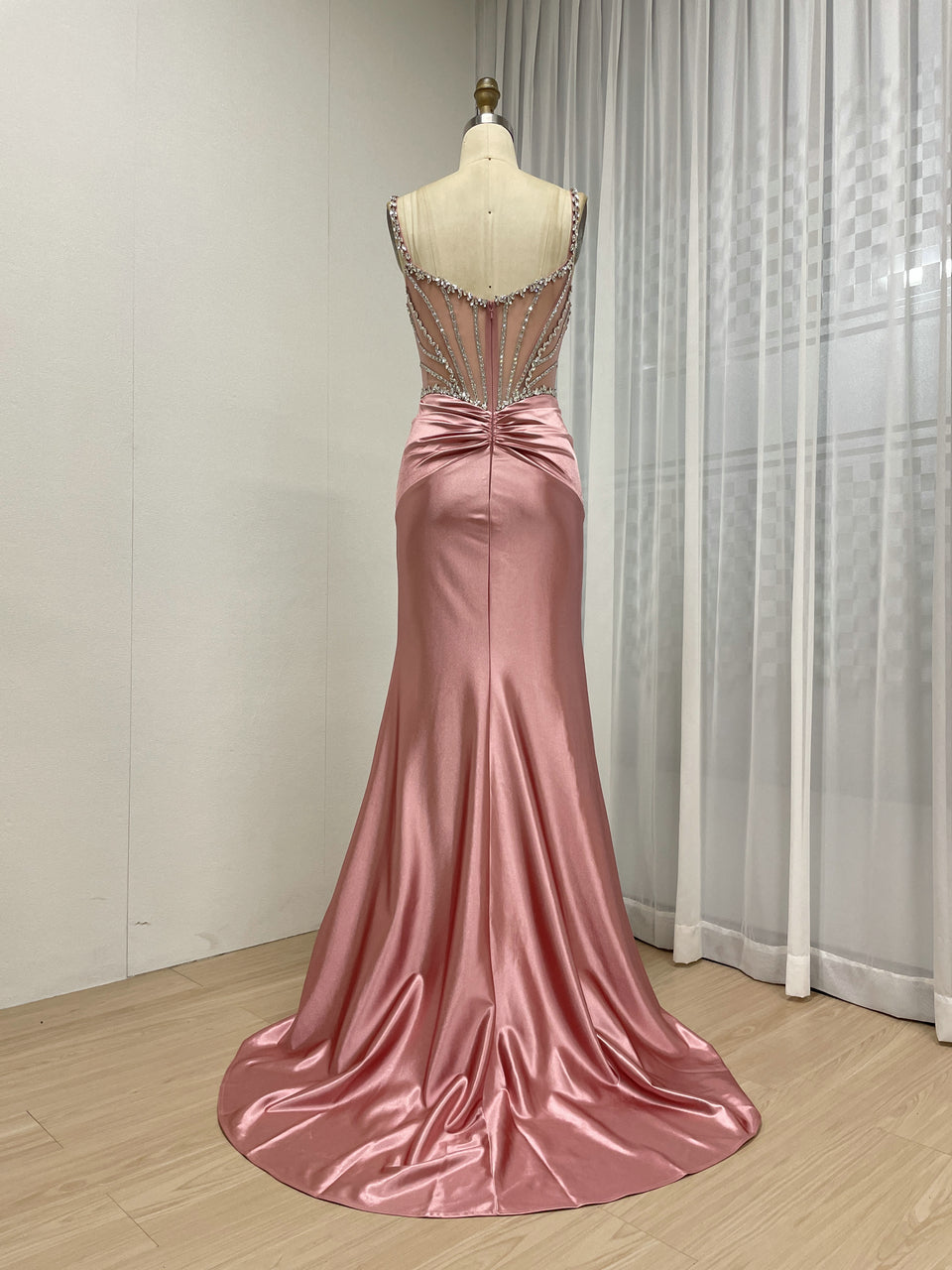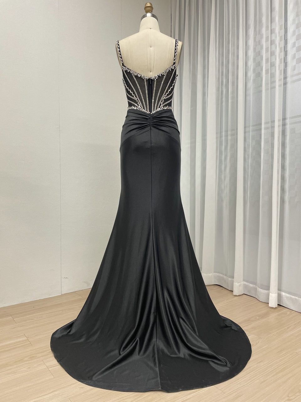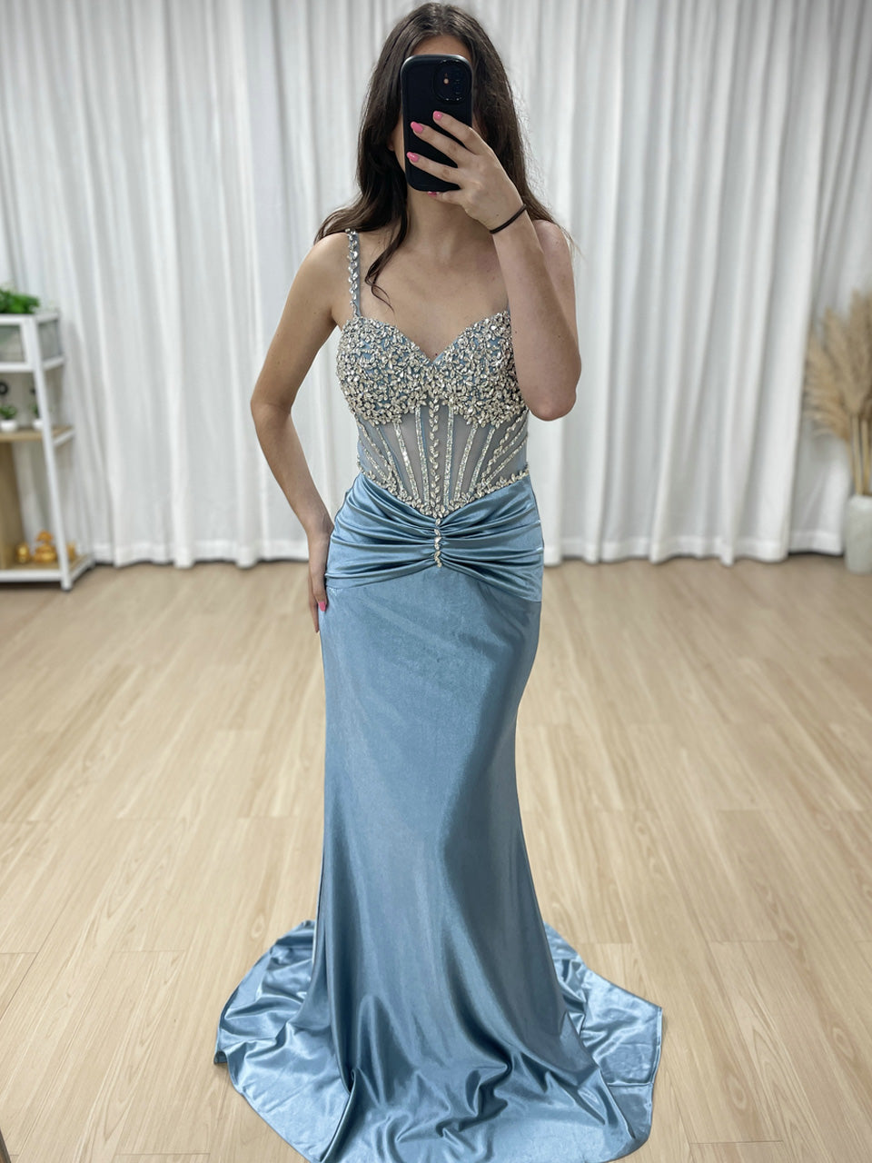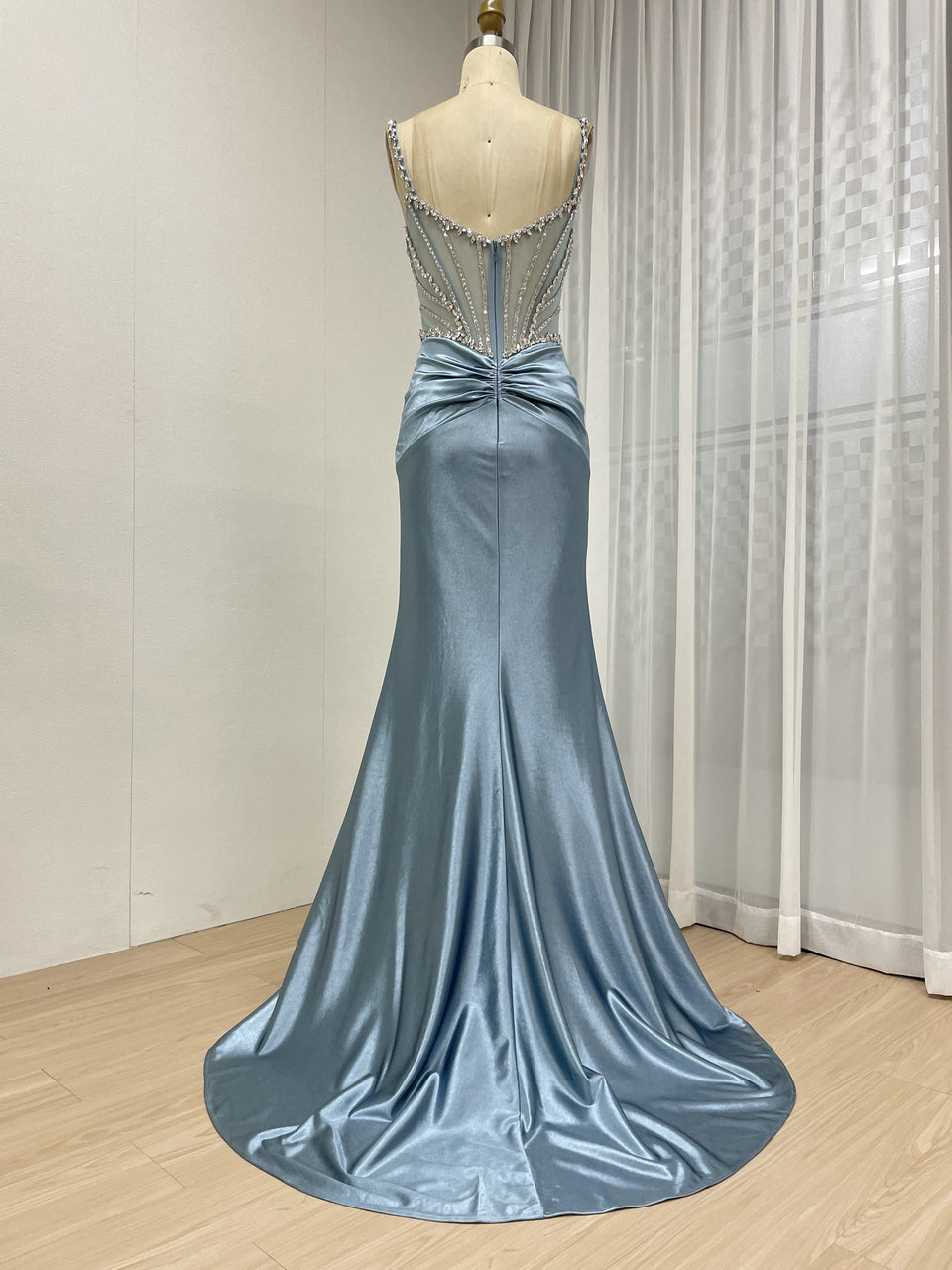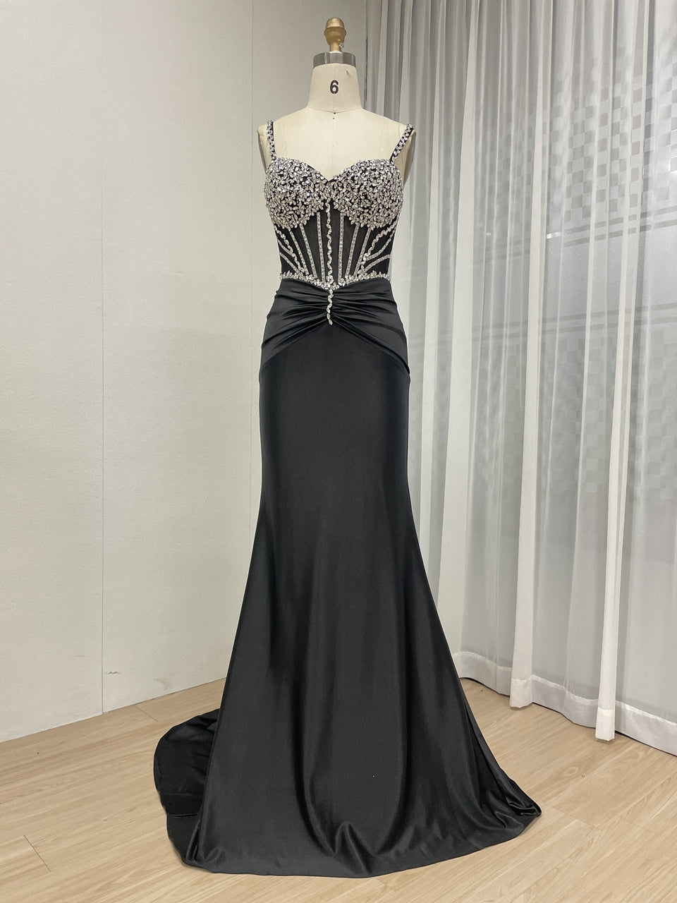 Exquisite Hand Beaded Crystal Diamond Sexy Spaghetti Strap Mermaid Prom Evening Gown MB40423