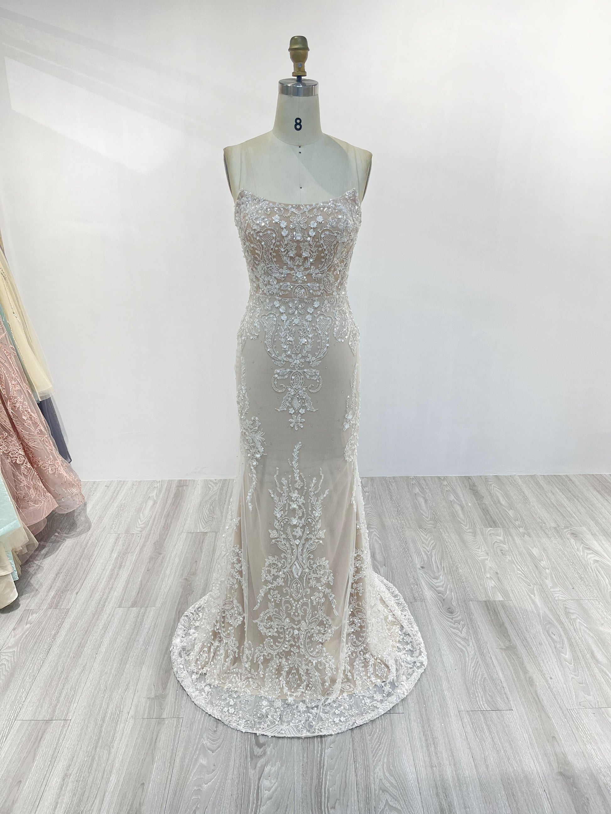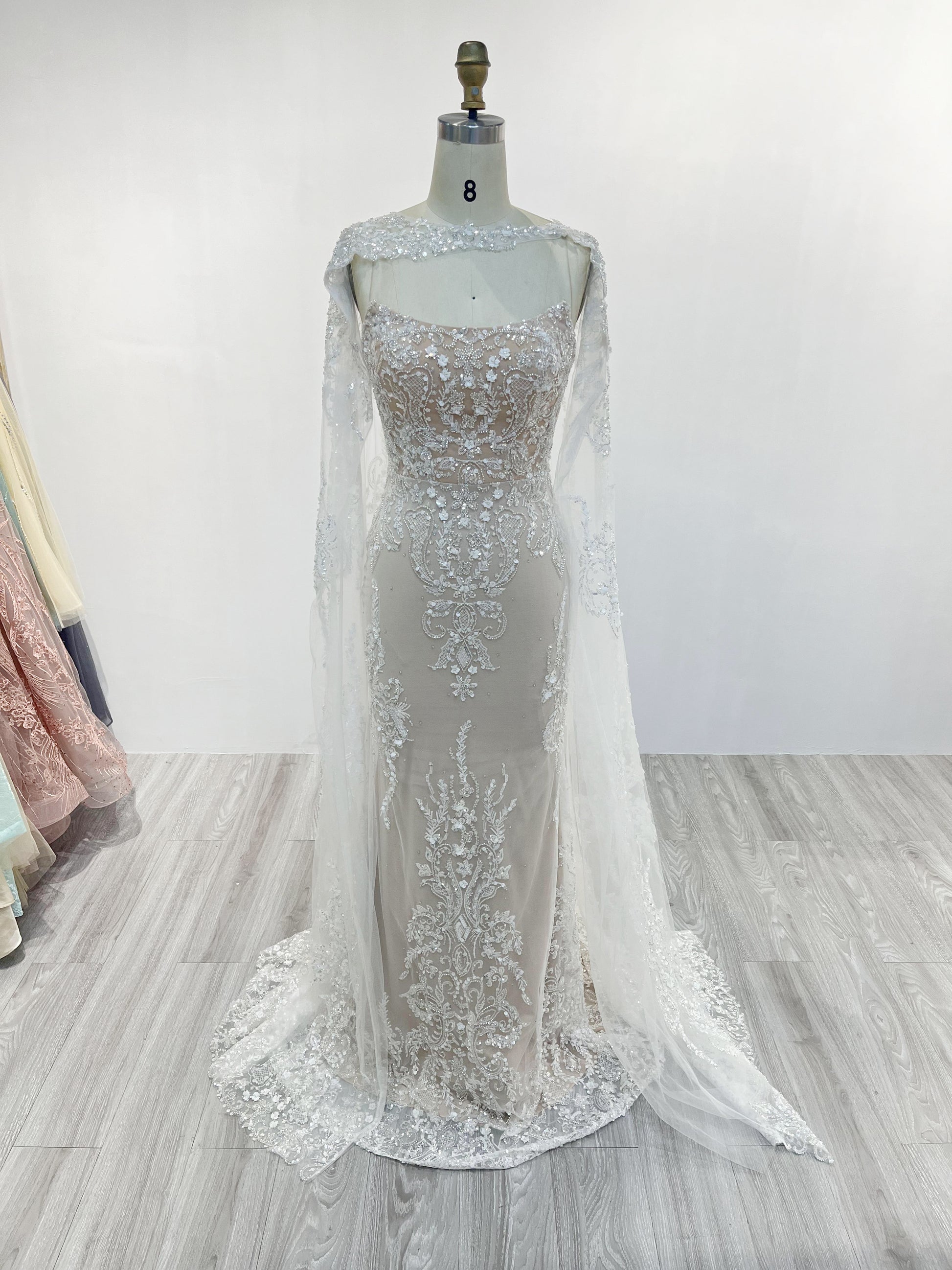Exquisite Strapless Lace Embroidery Shoulder Cape Wedding Party Dress DDS044B
