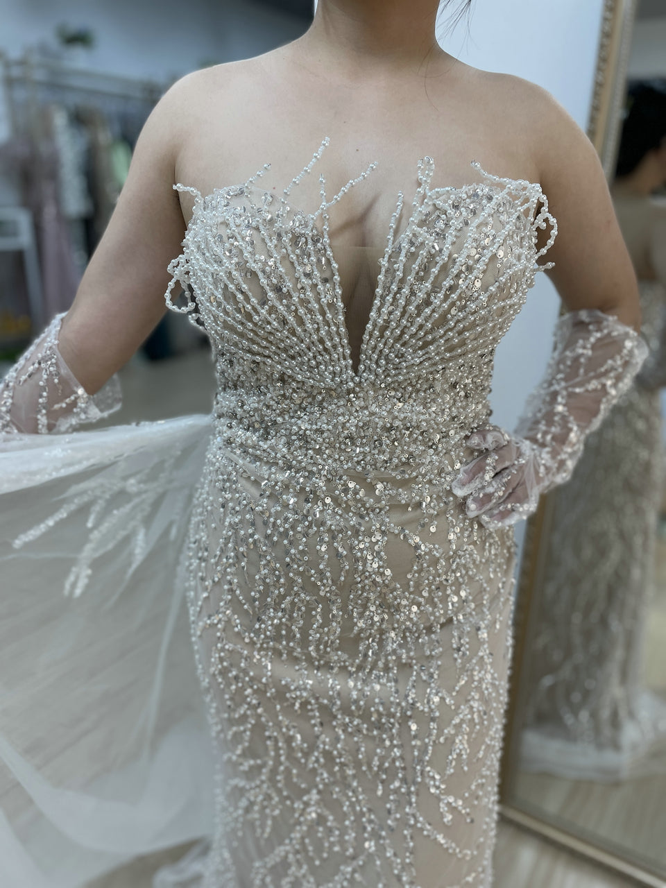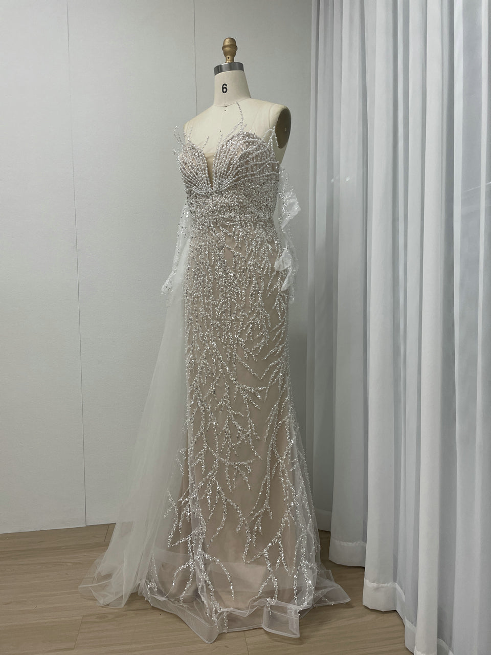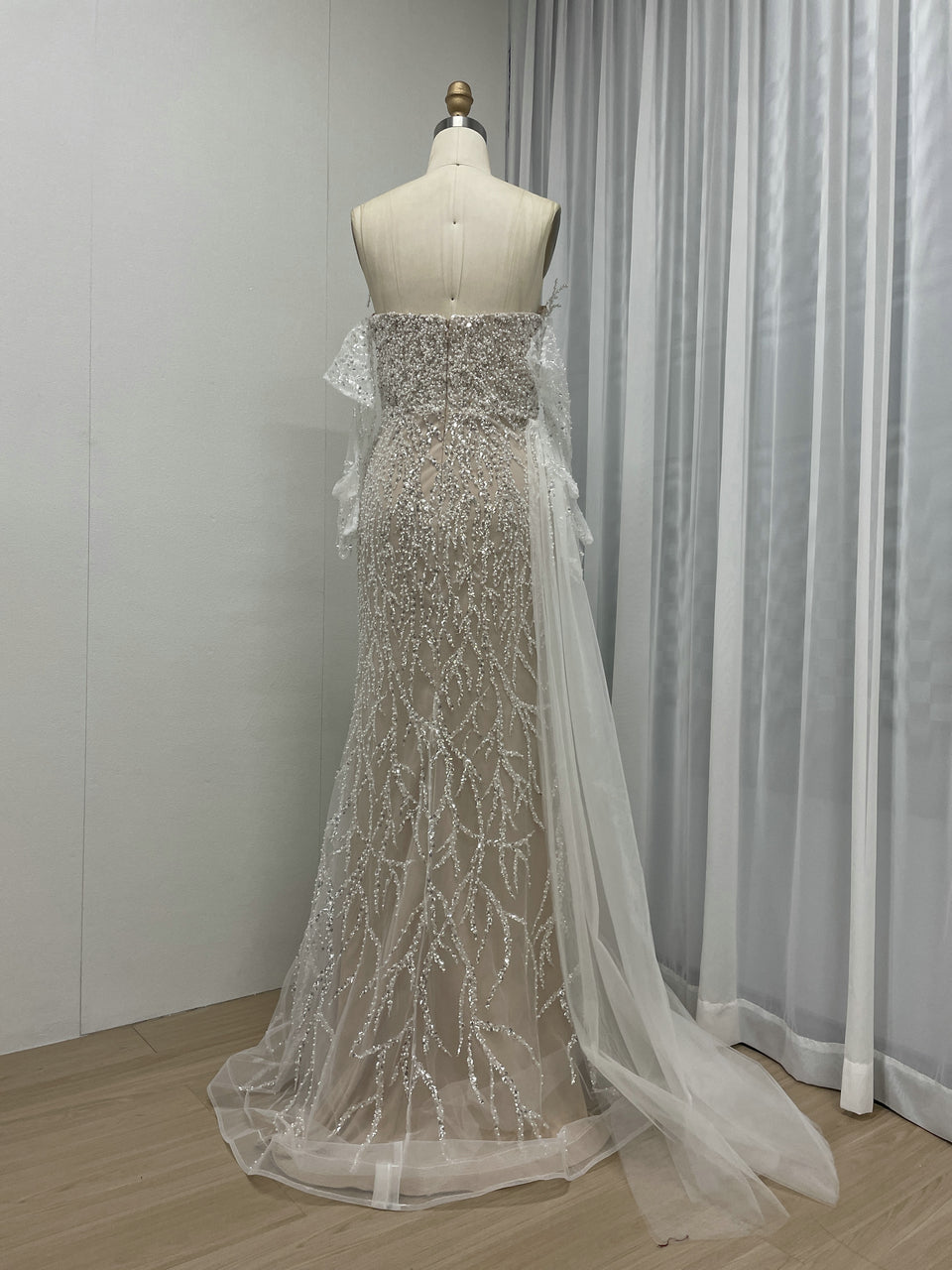 Exquisite White Beaded Mermaid Gown for Weddings MY30134