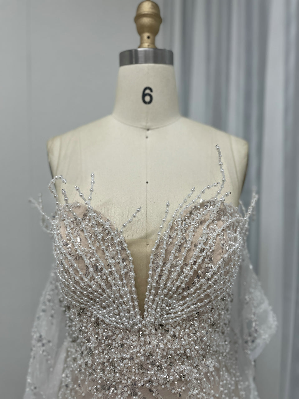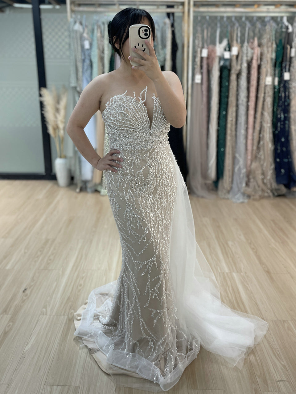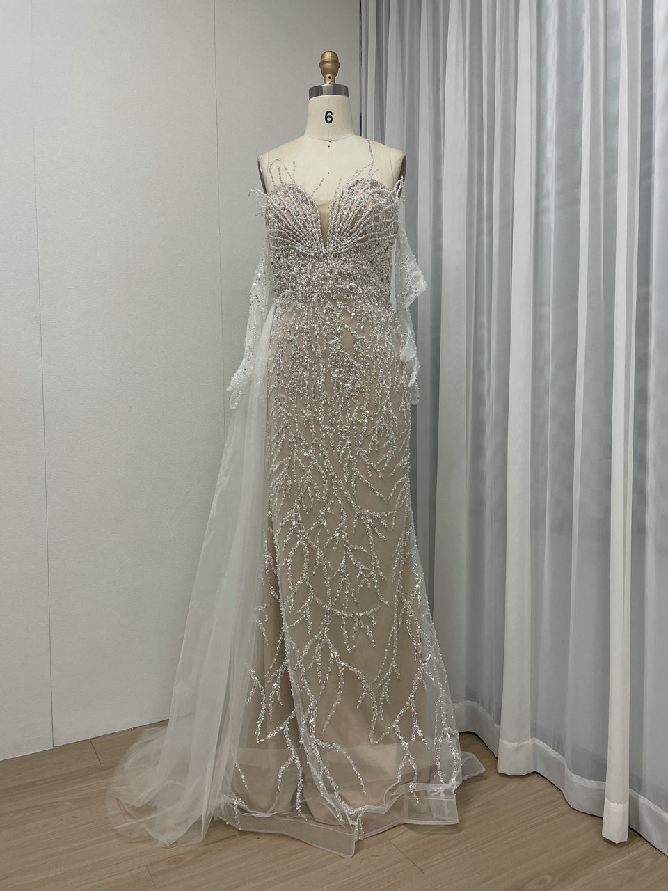 Exquisite White Beaded Mermaid Gown for Weddings MY30134