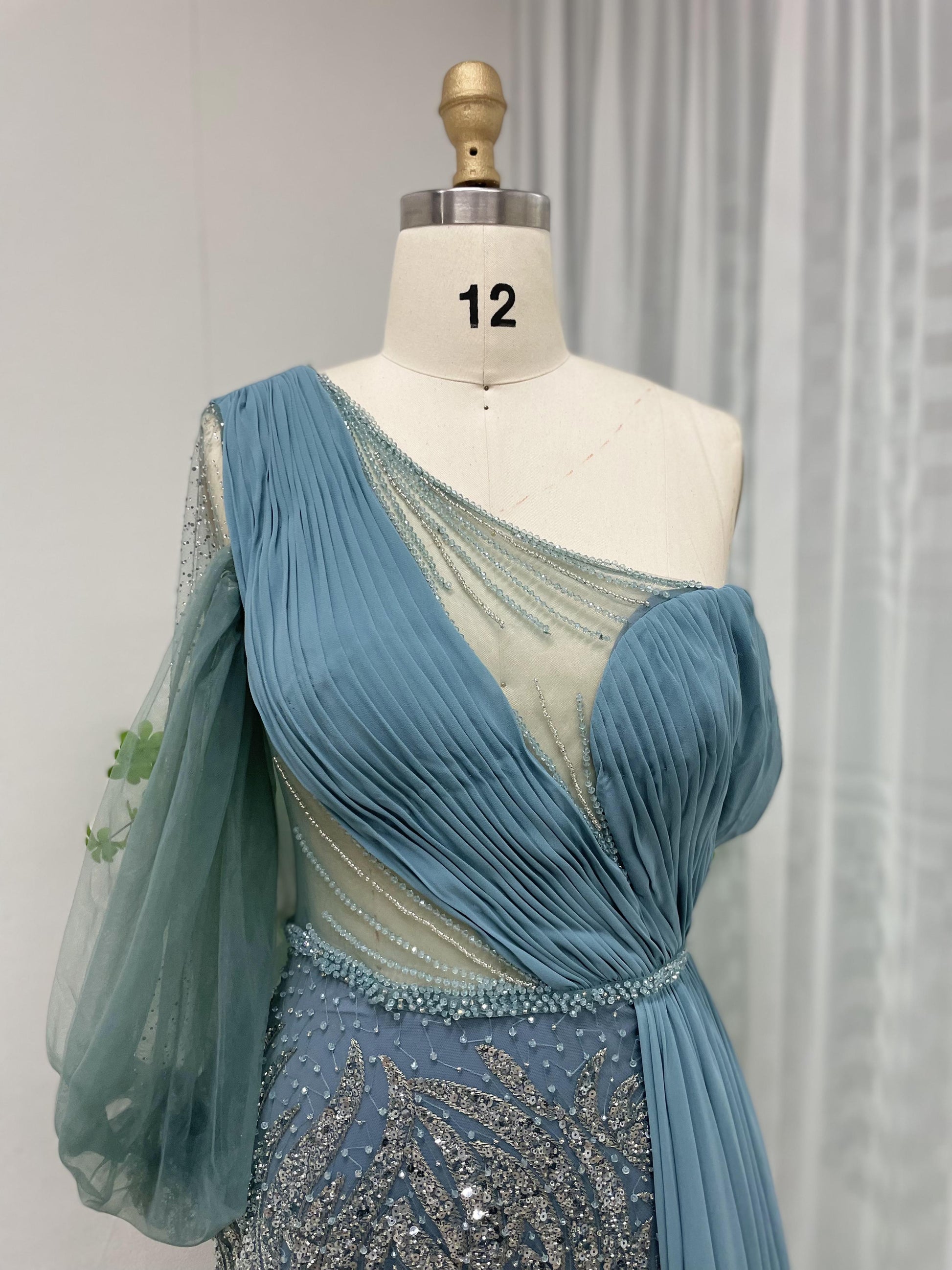 Fashionable One Shoulder Ruffle Top Long Sleeve Evening Dress MB40085