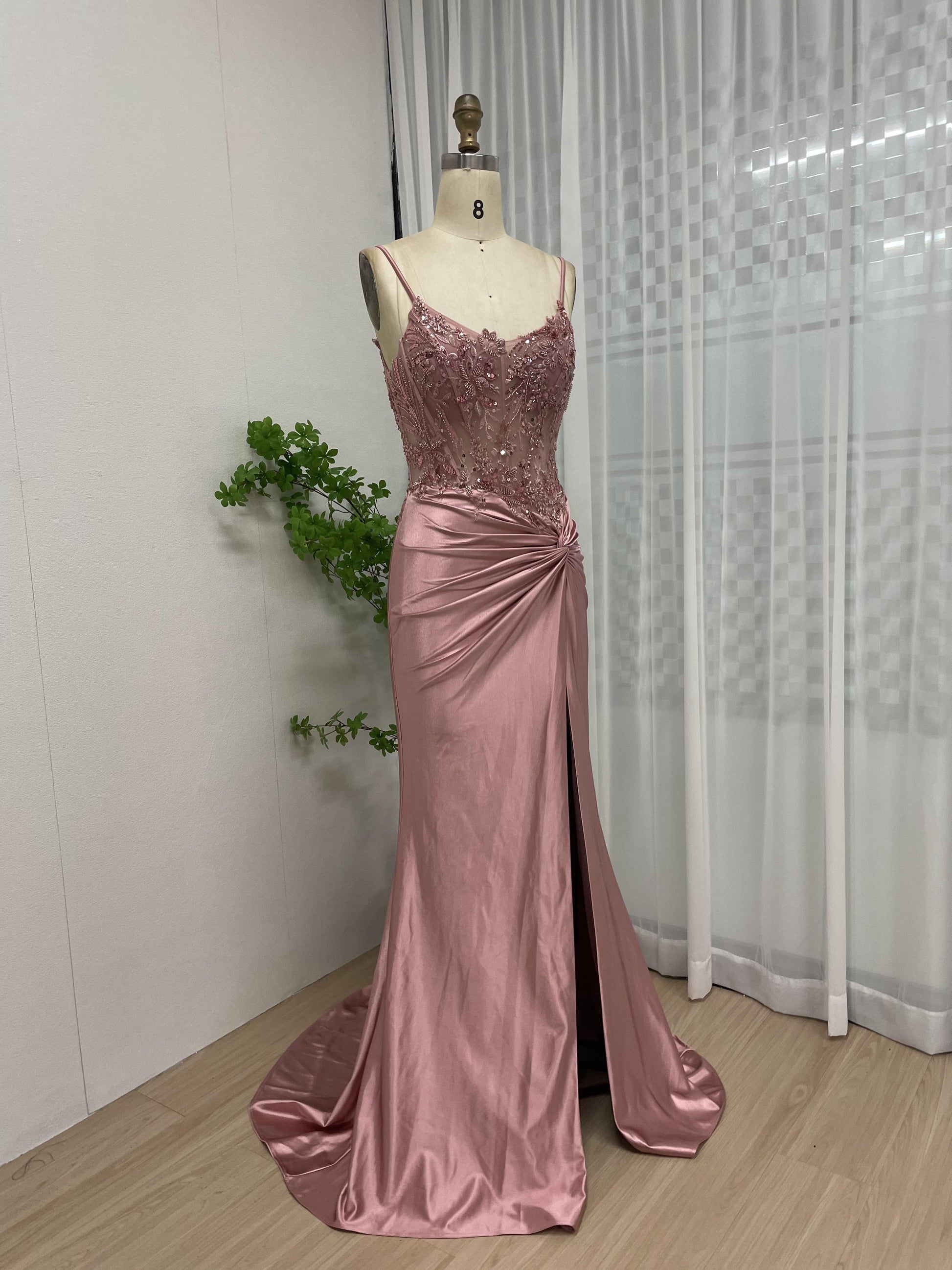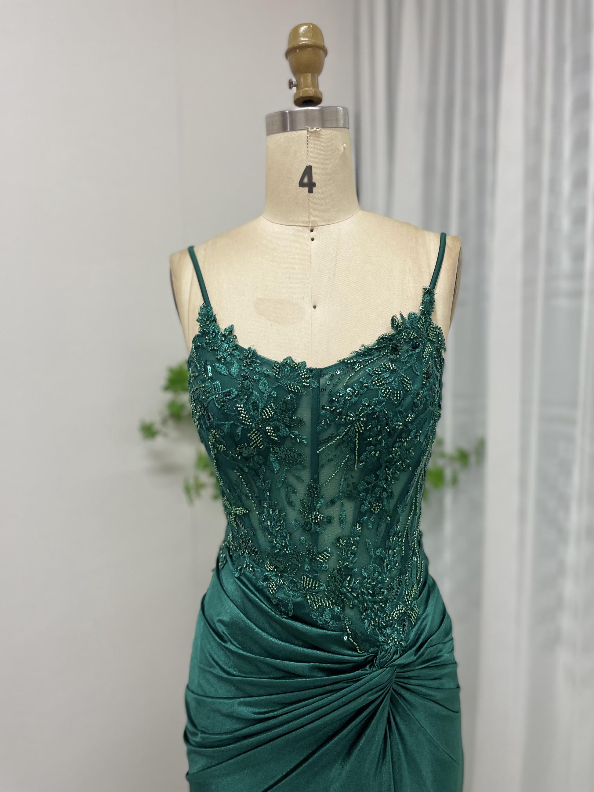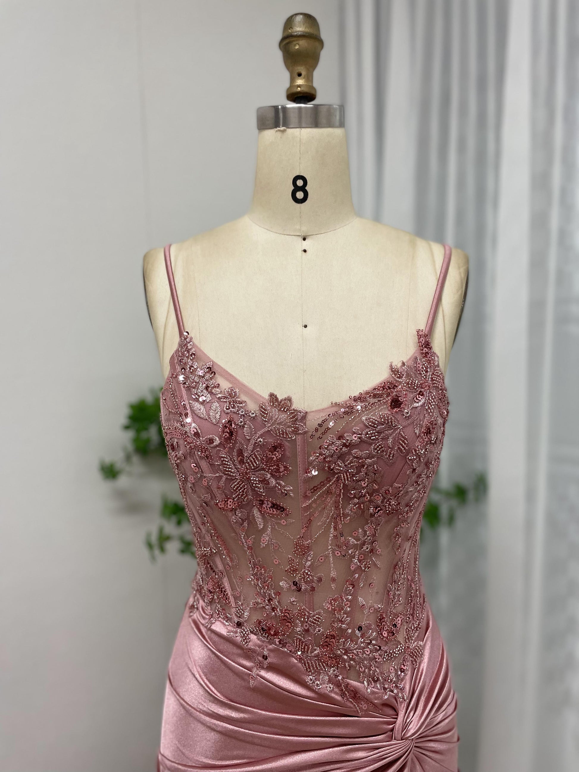 Fashionable Timeless Corset Bodice Lace Applique Satin Prom Dress MB40163