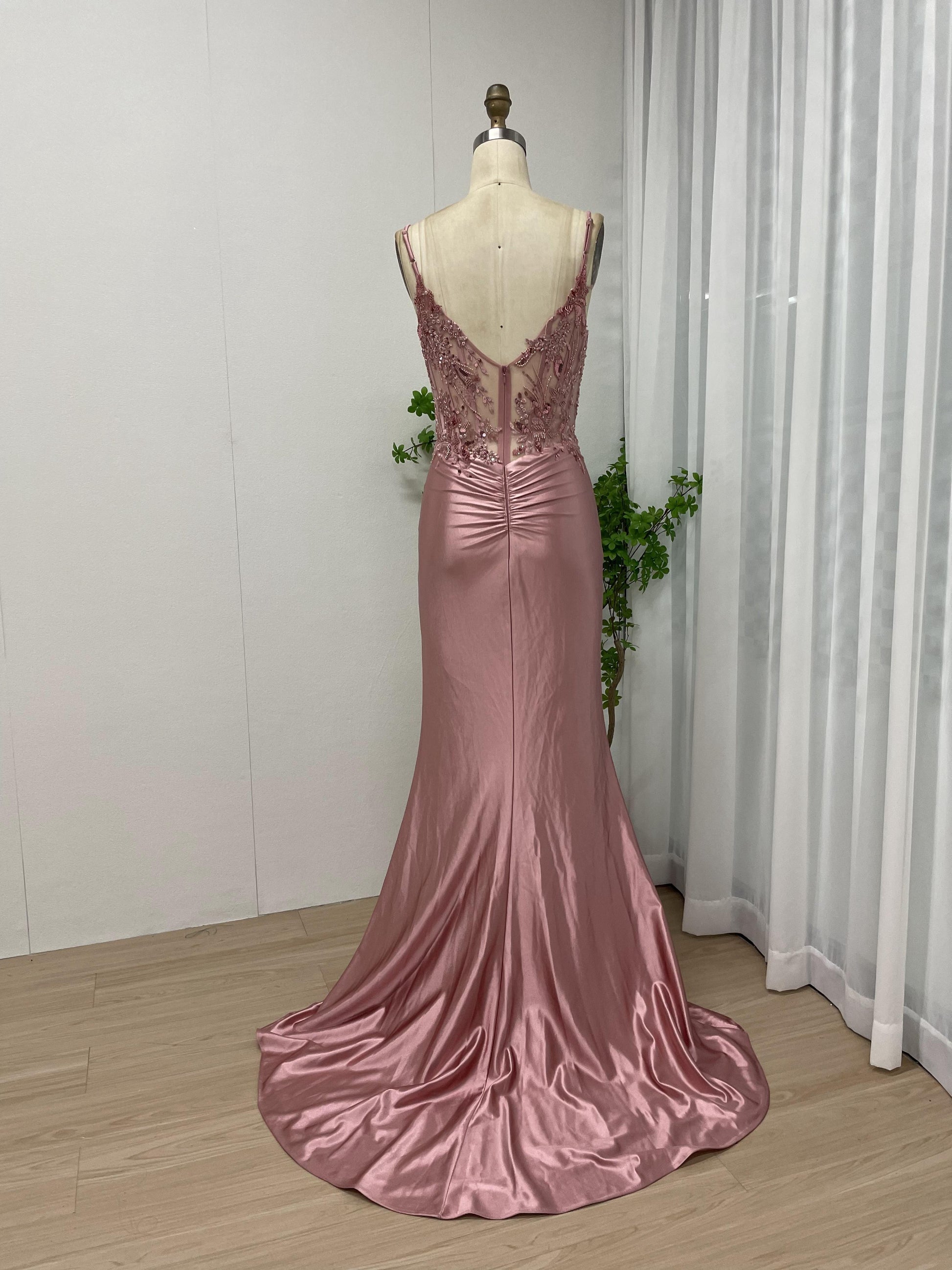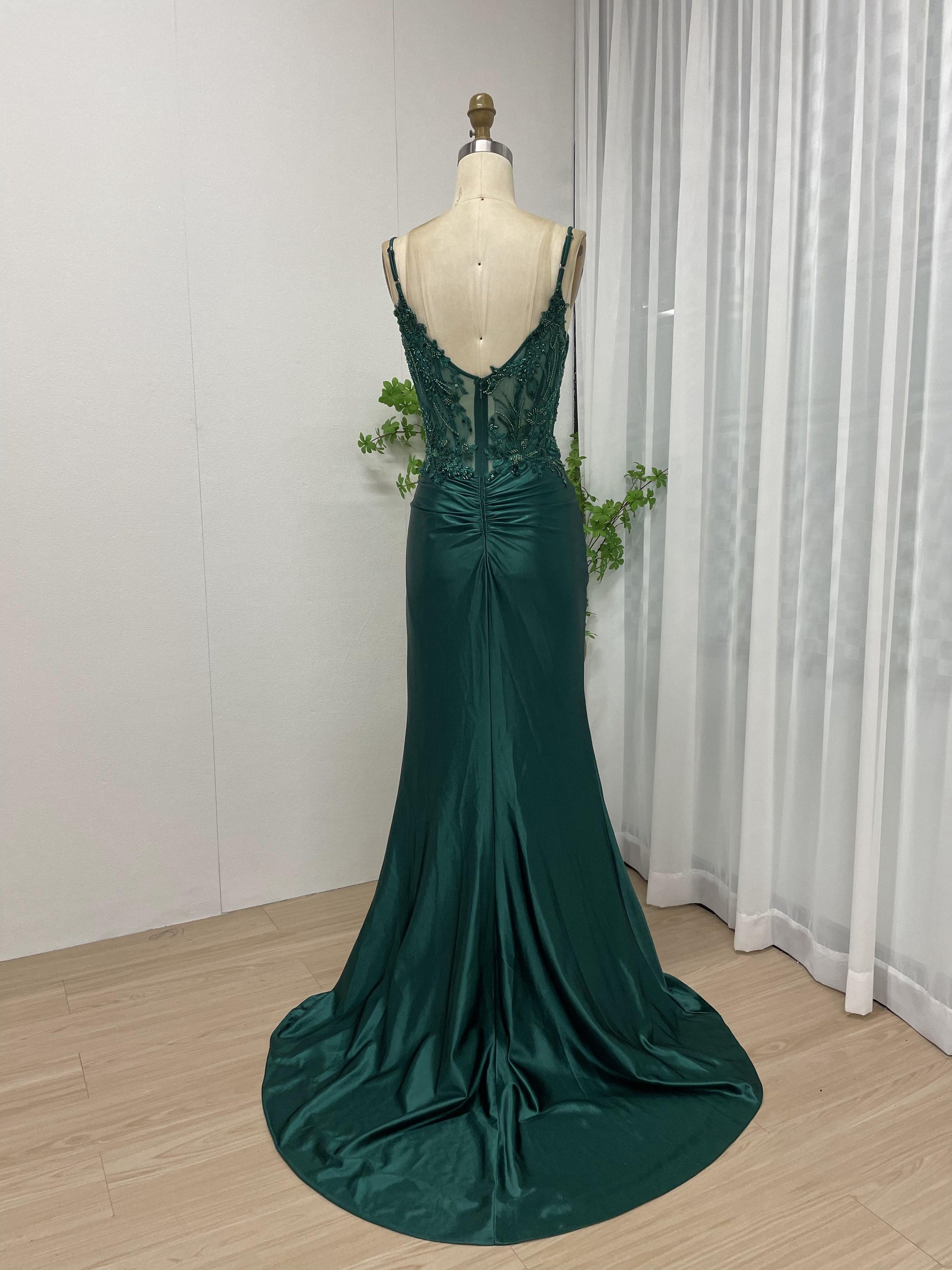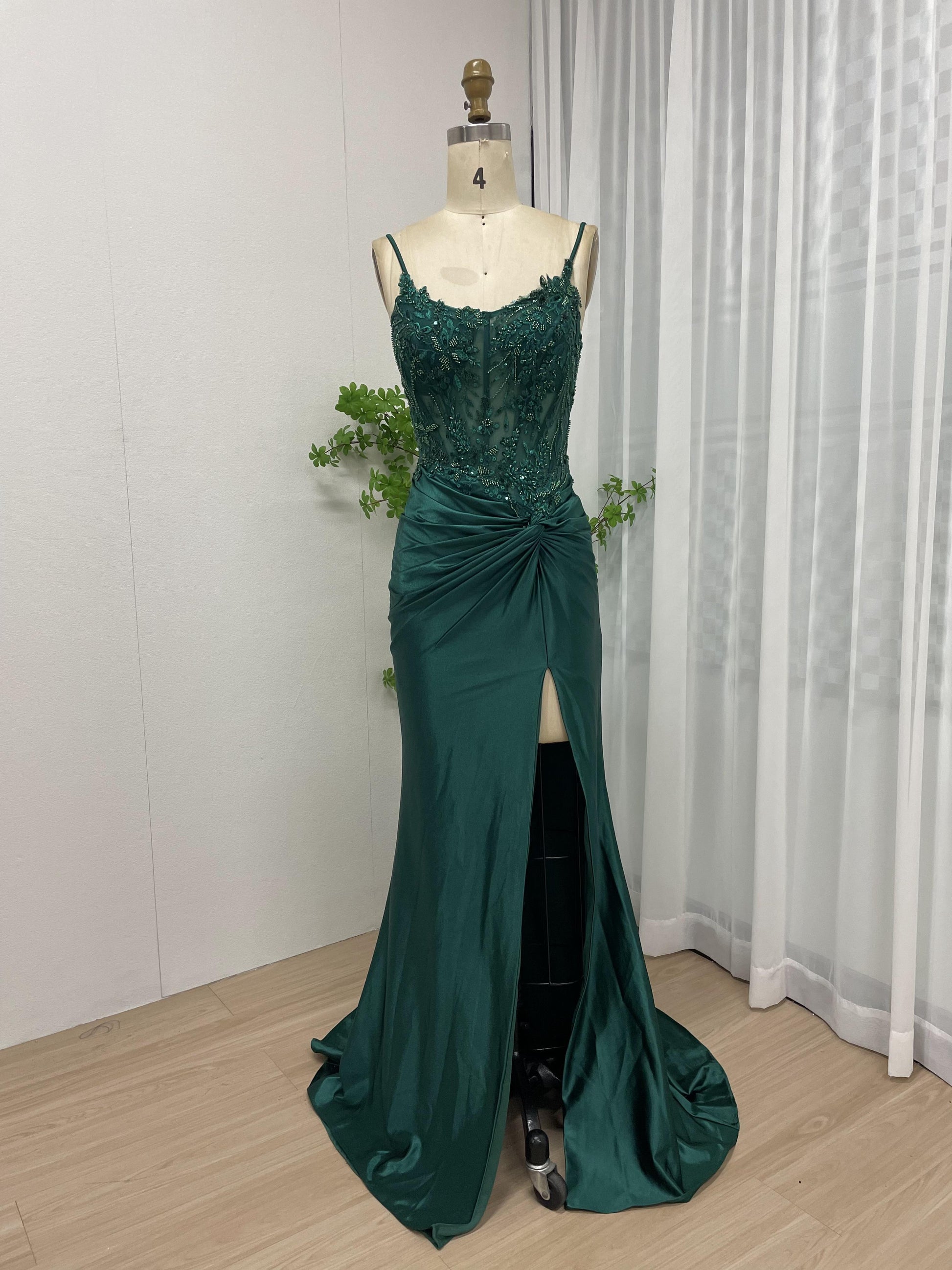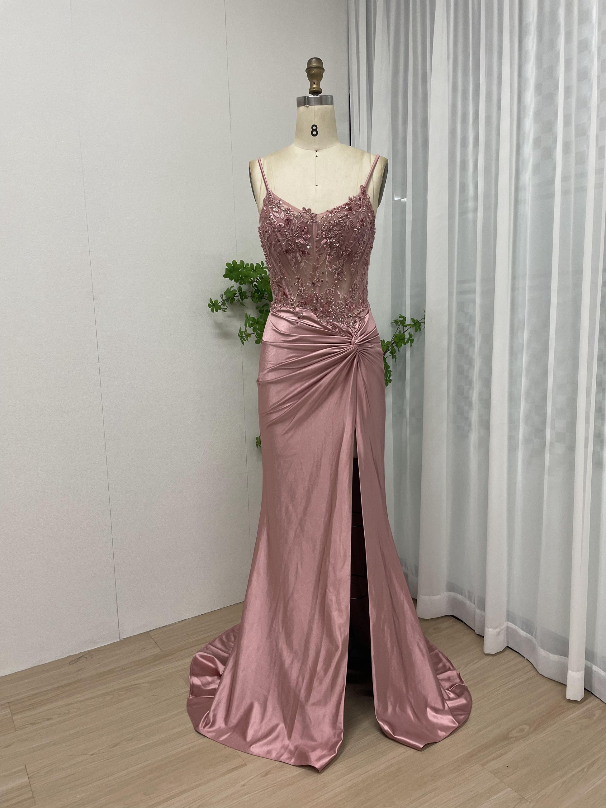 Fashionable Timeless Corset Bodice Lace Applique Satin Prom Dress MB40163