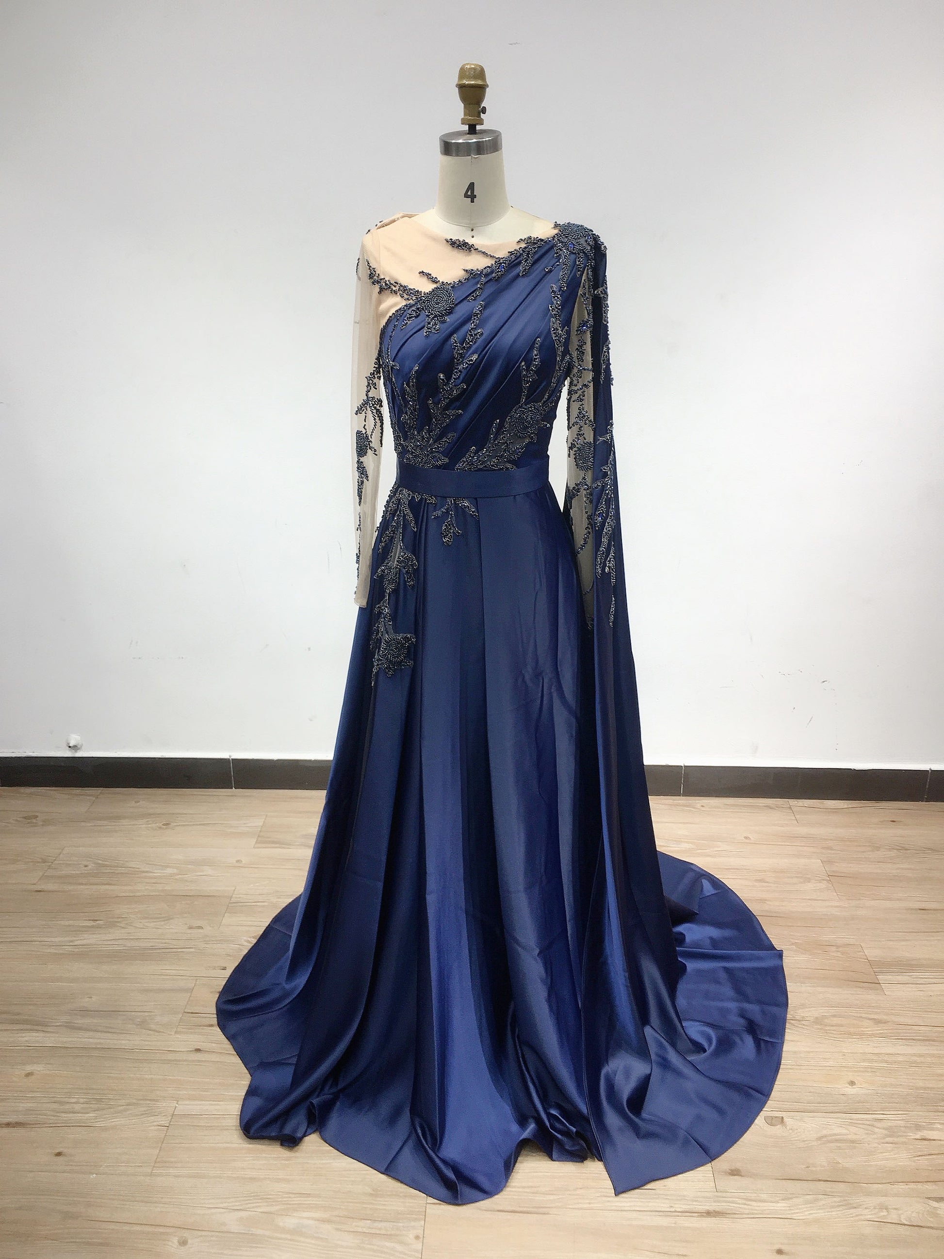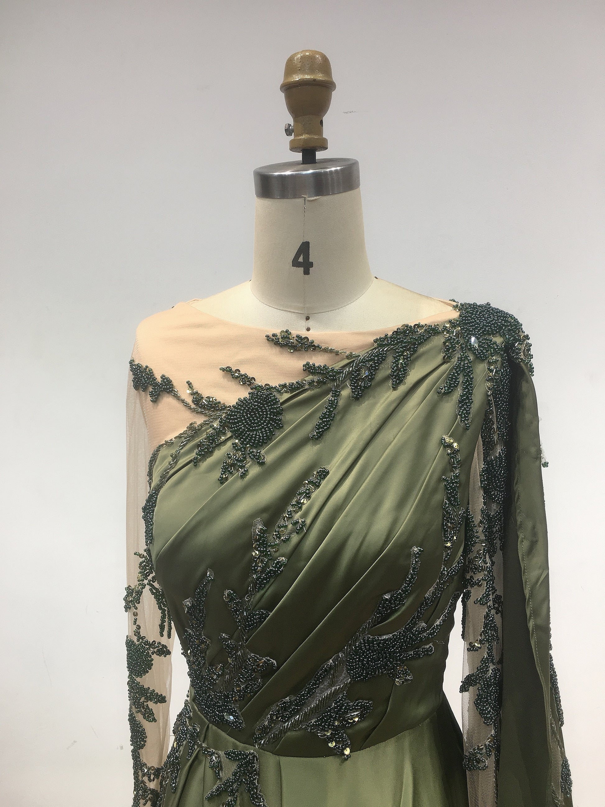 Glamorous Couture Beading A Line Satin Muslim Wedding Party Long Sleeve Dress IRA226