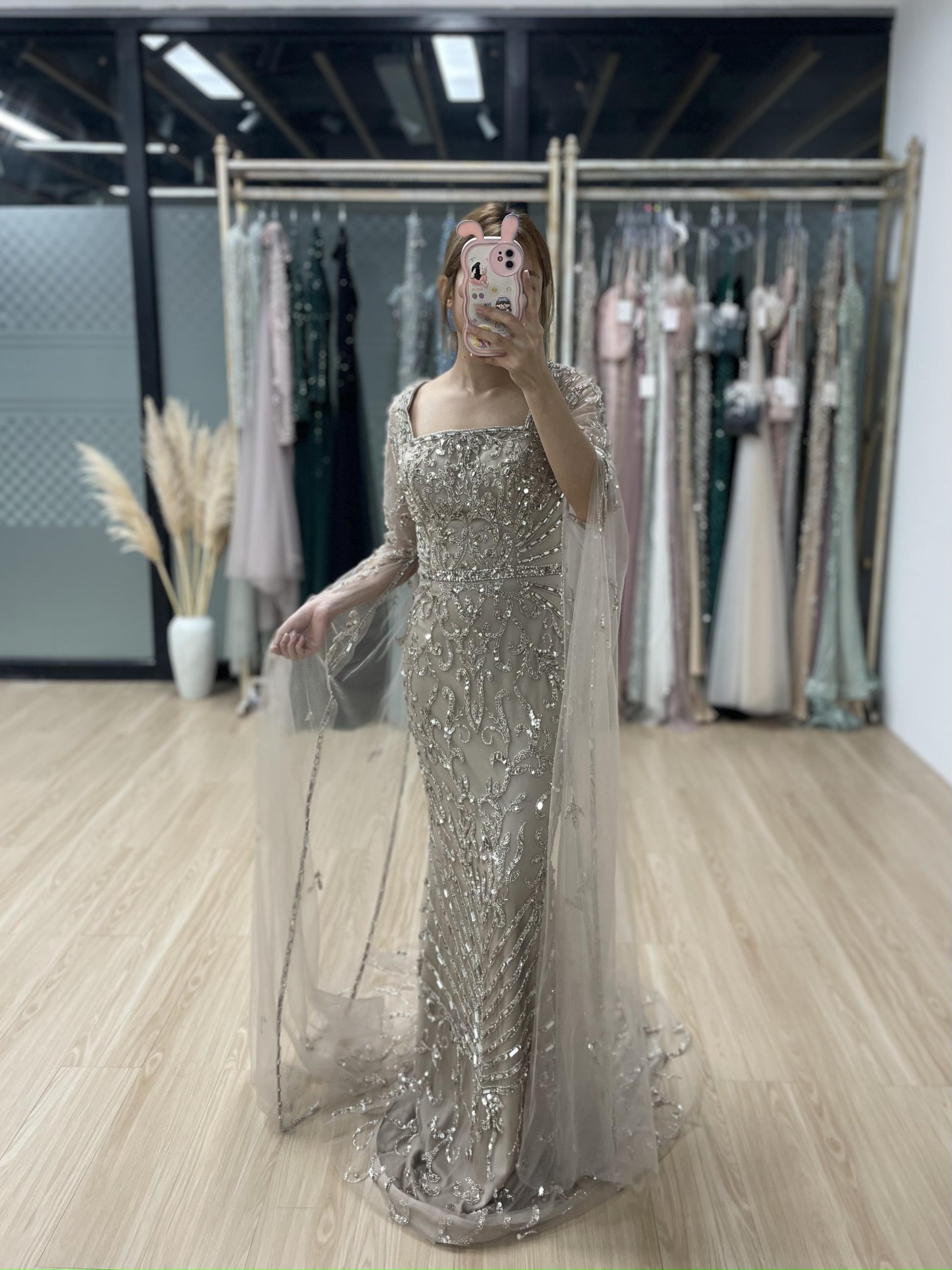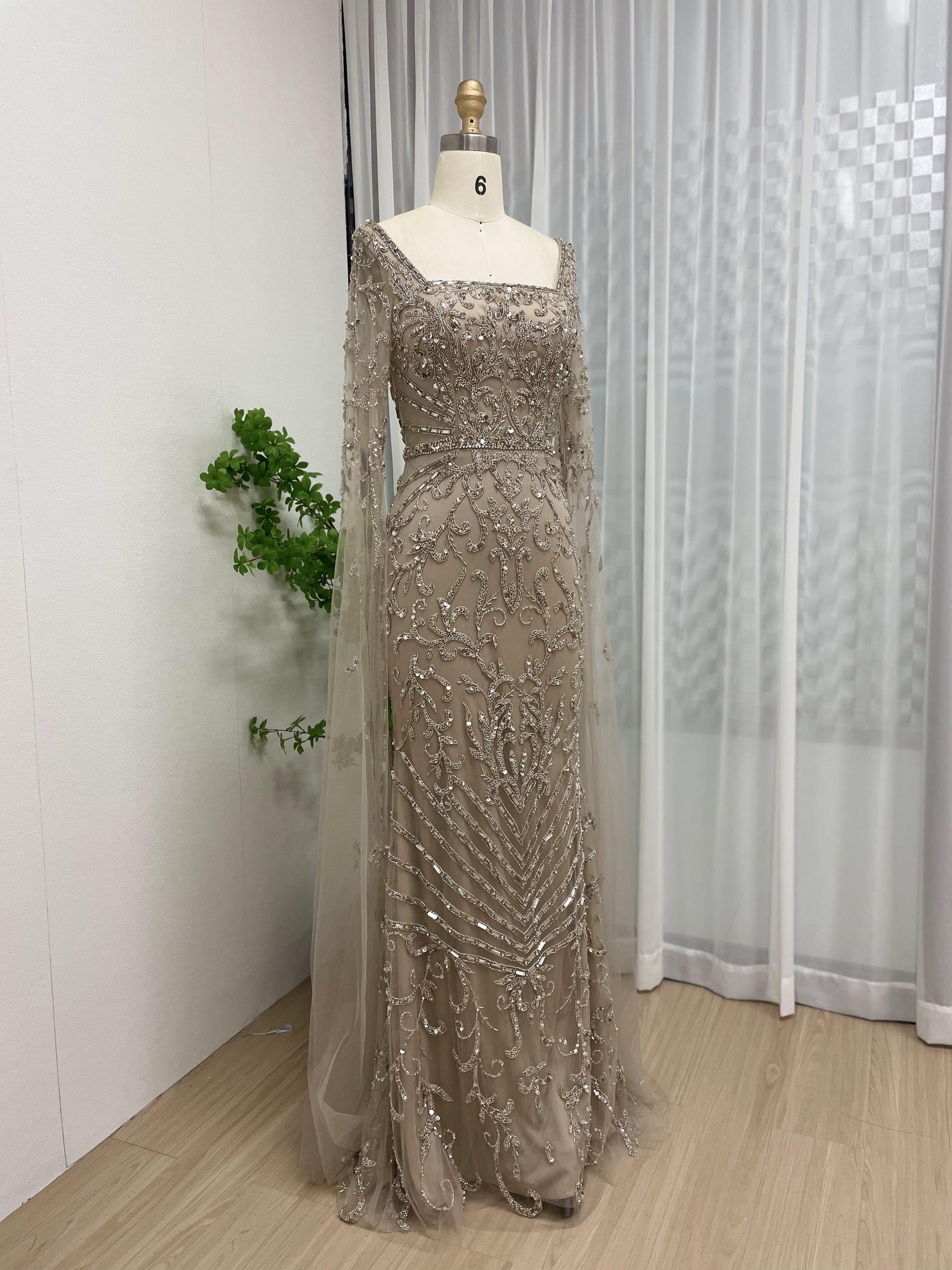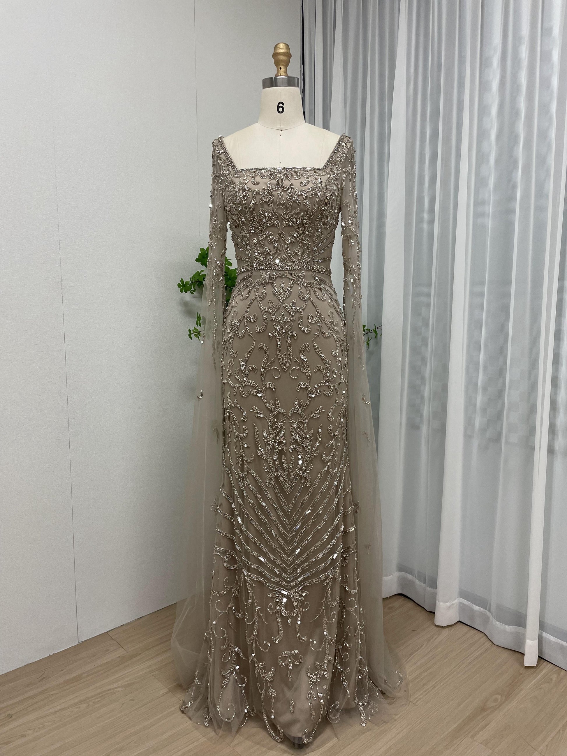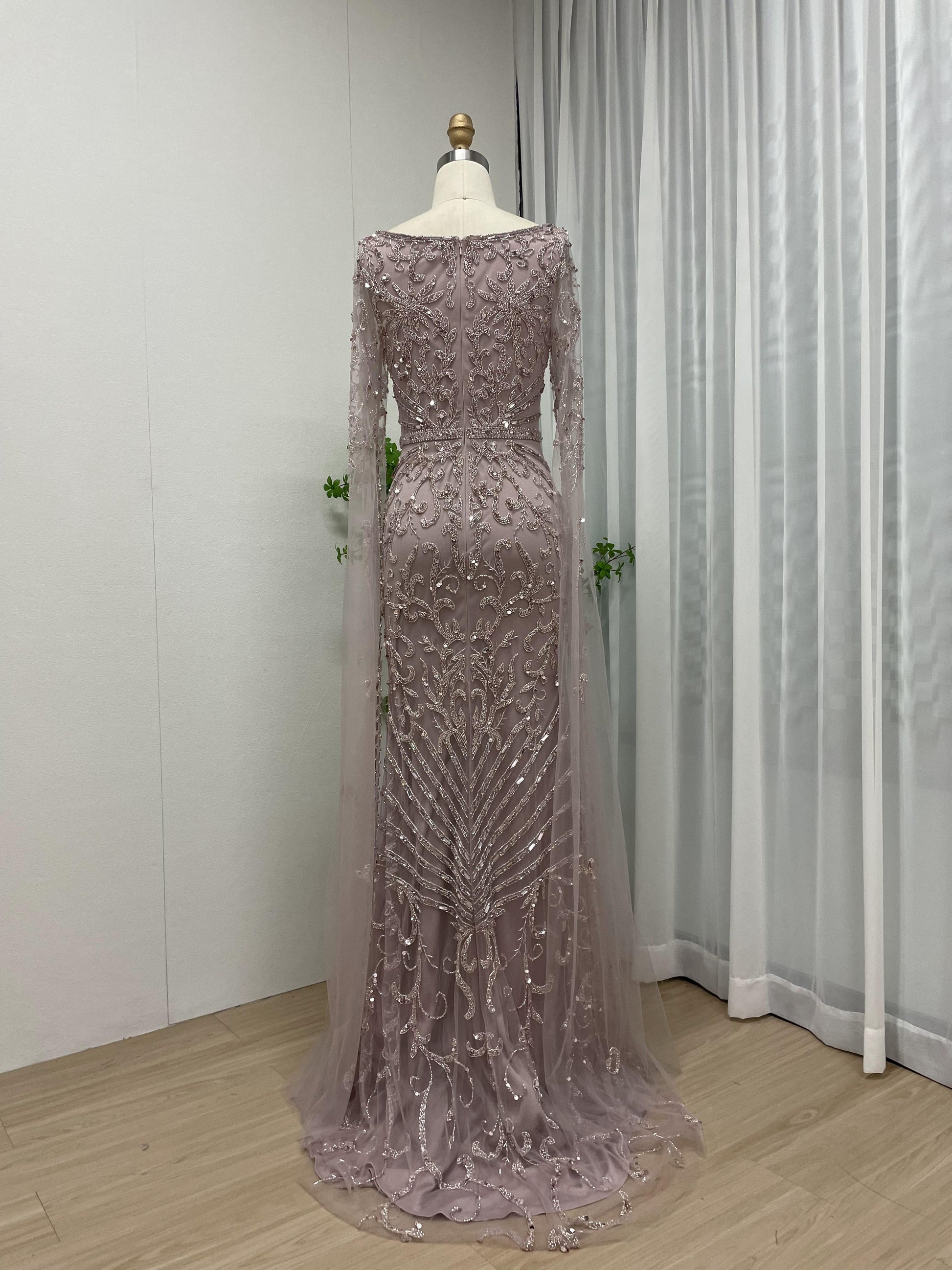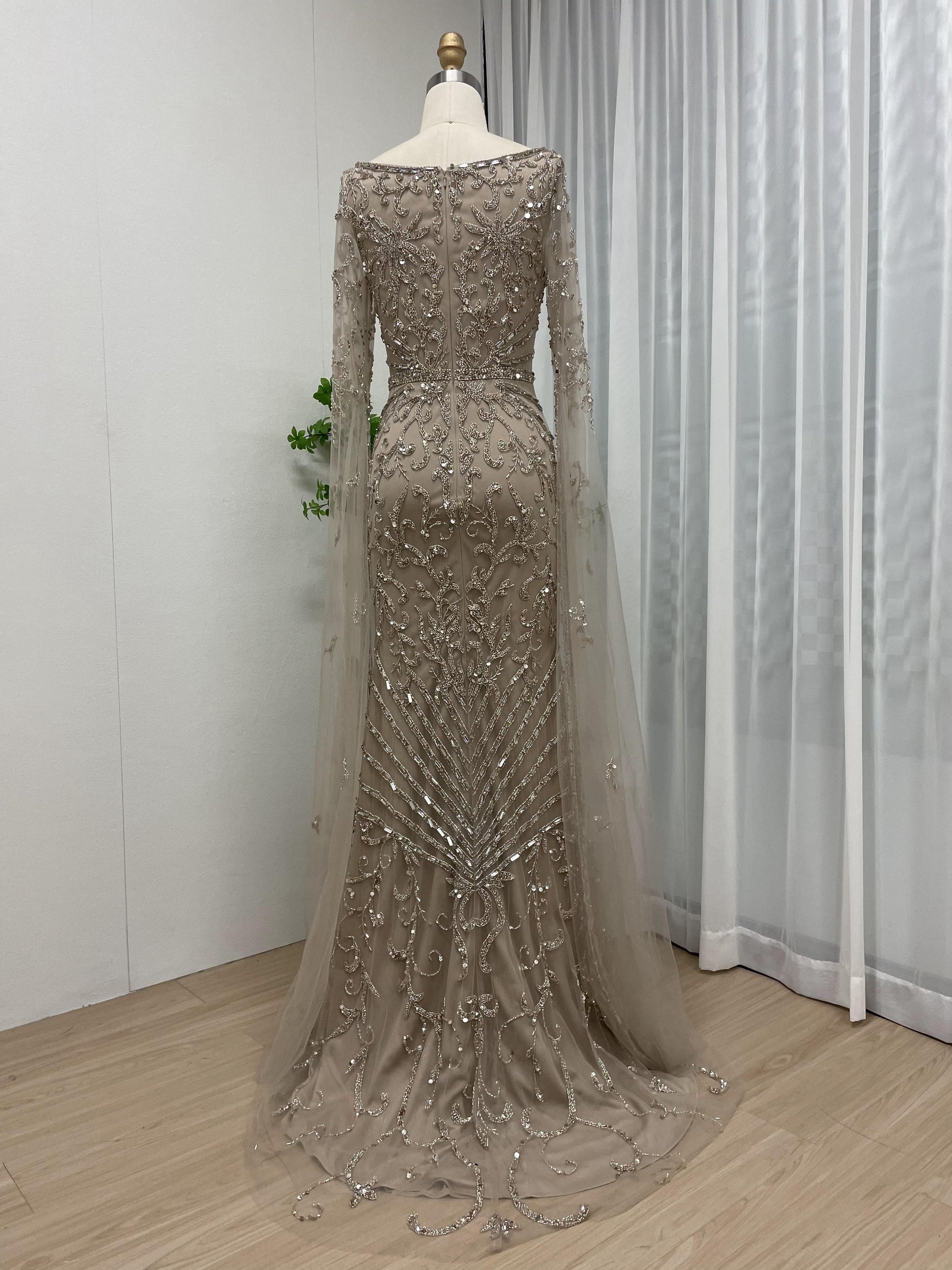 Glamorous Couture Handmade Beading Cape Long Sleeve Wedding Party Formal Gown MB40225