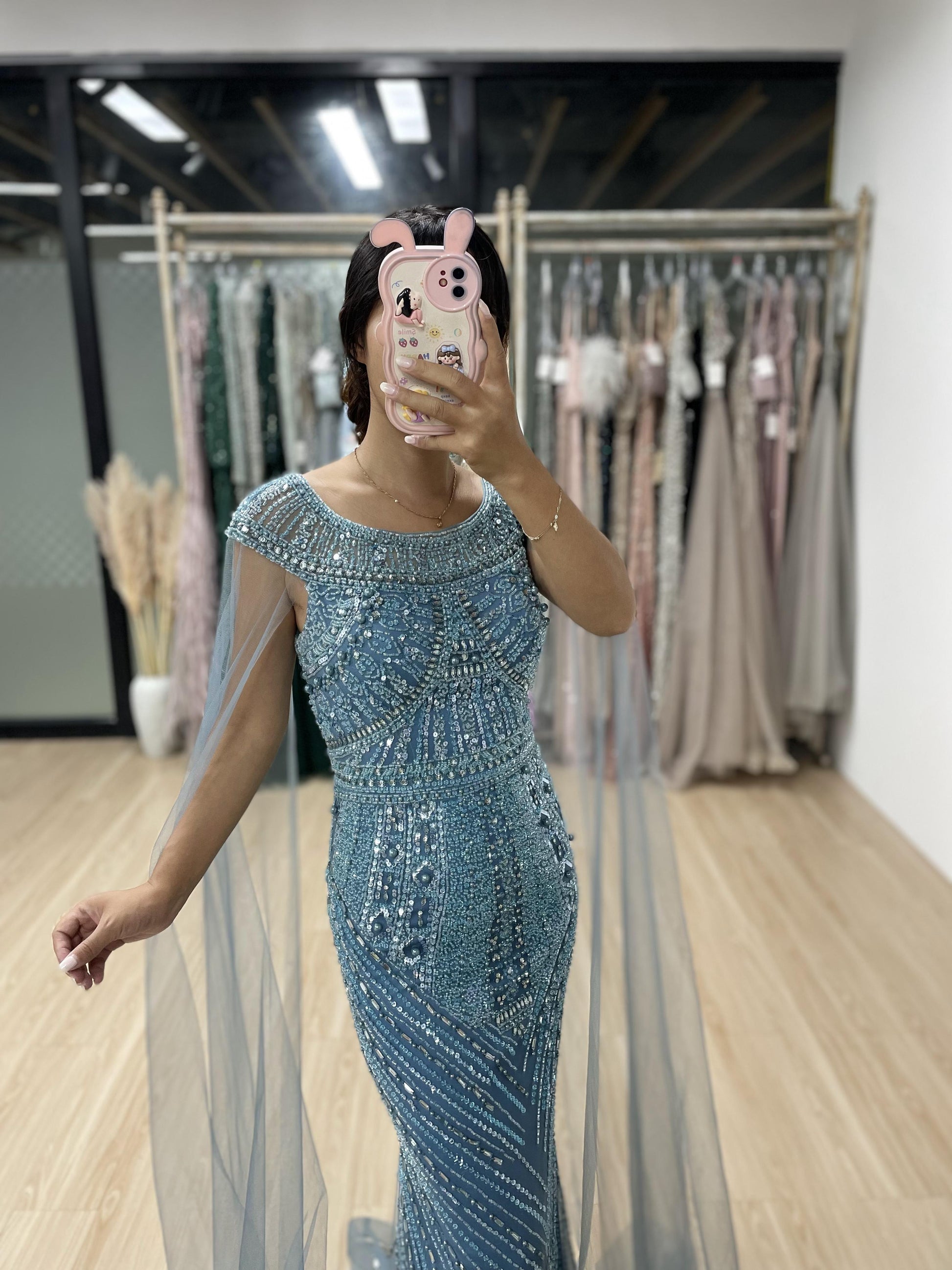 Glamorous Handmade Beading Body Fitted Plus Size Evening Dress MB40112