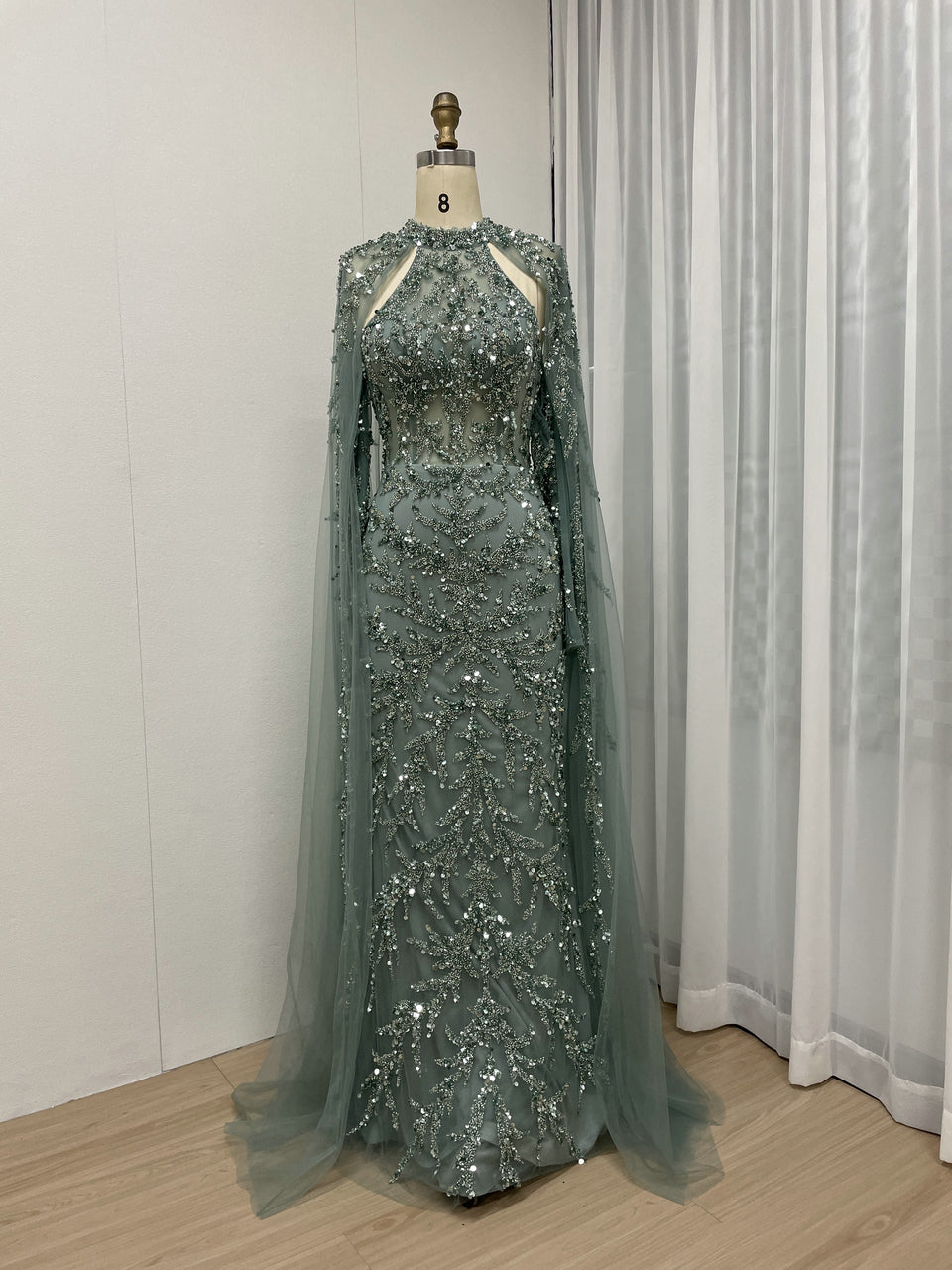 Glamorous Handmade Beading Long Sleeve Wedding Guest Evening Party Dress MB40246