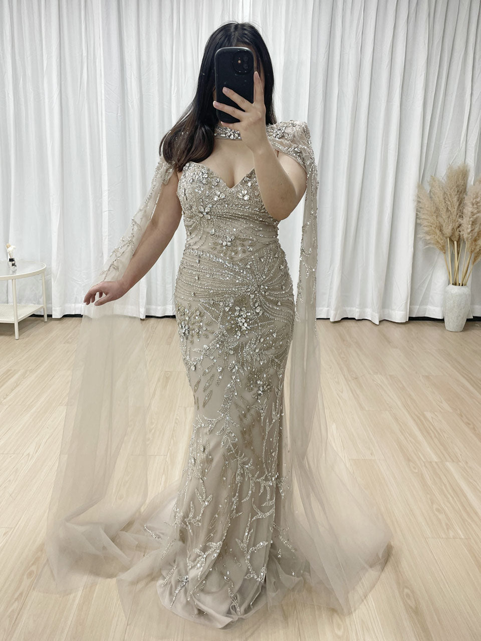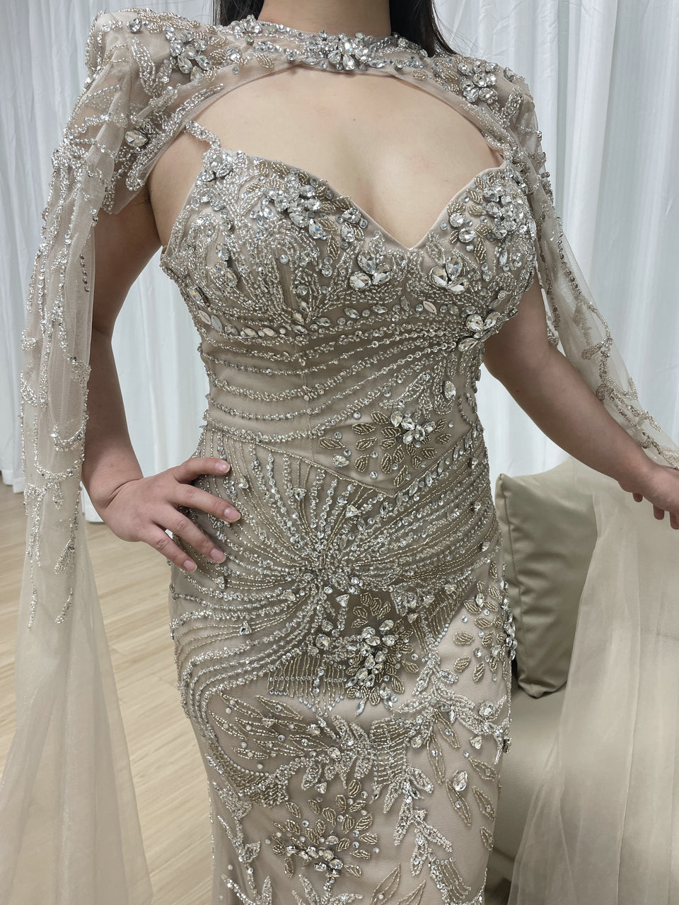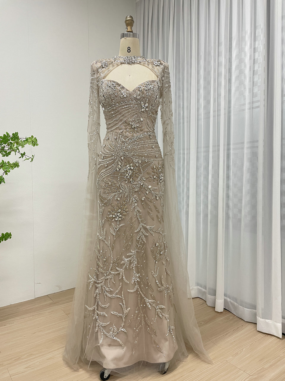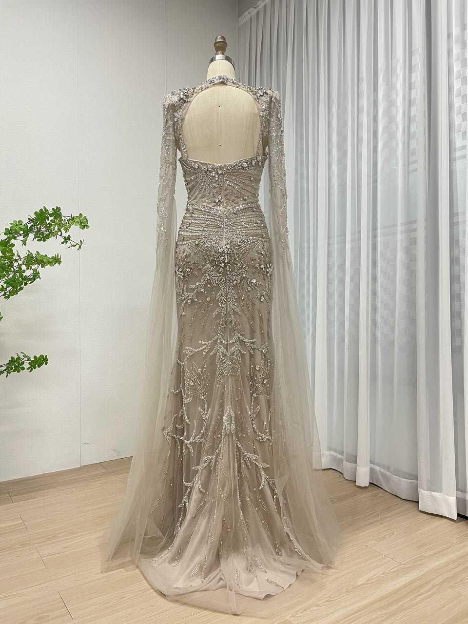 Glamorous Handmade Beading Removable Cape Sleeve Wedding Party Mother Of Bride Dress MB40236-2